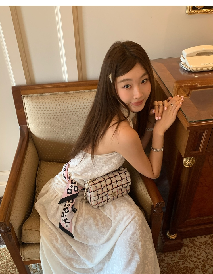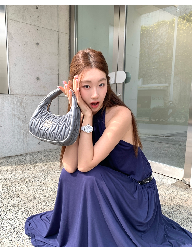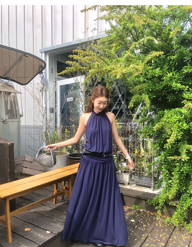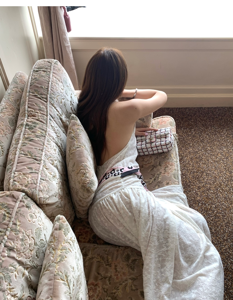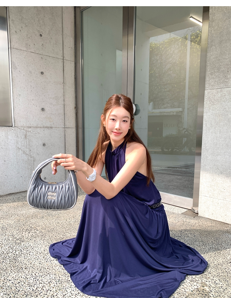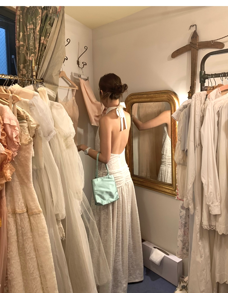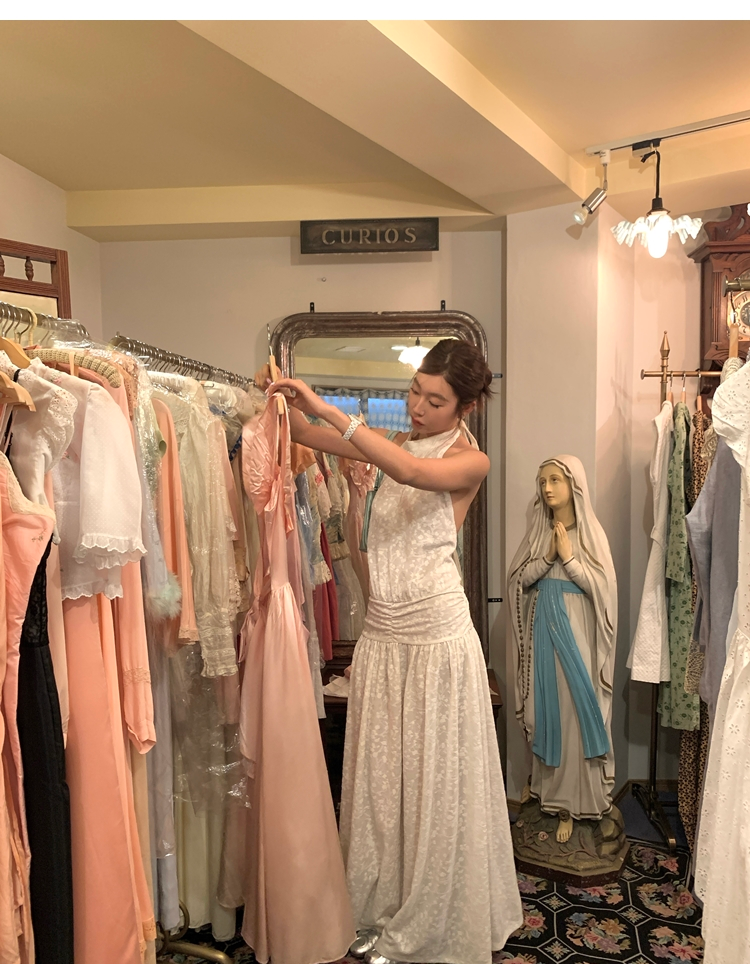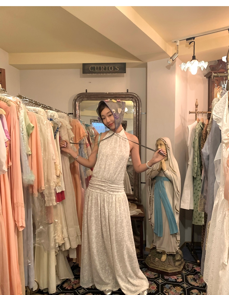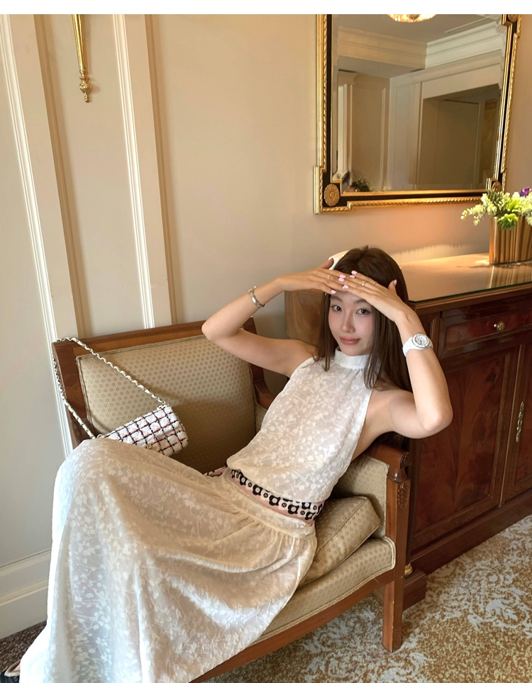 Venus Artistic Unique Lace Jacquard Halter Neck Backless Dress