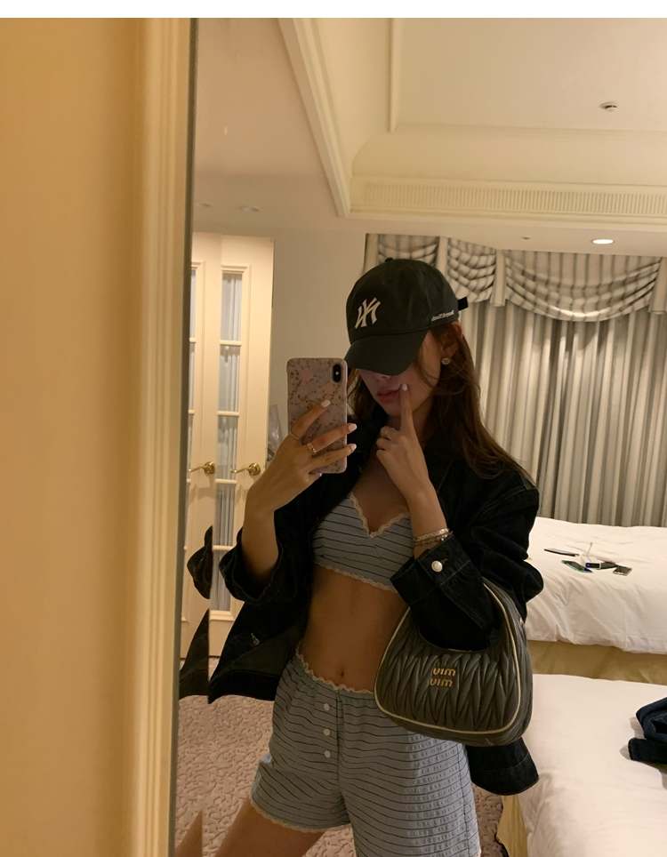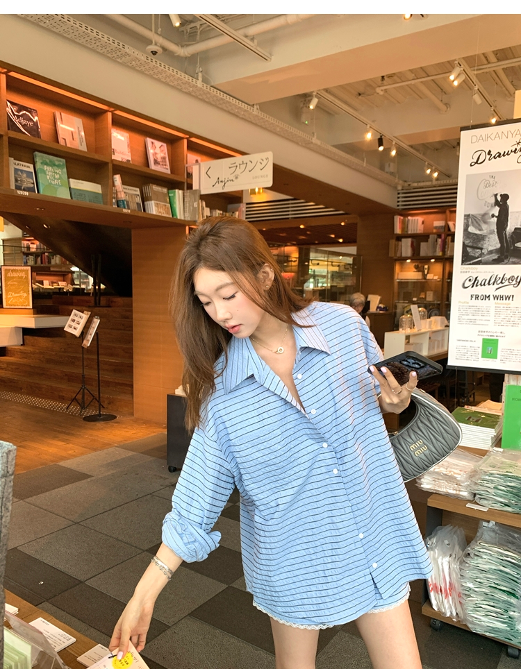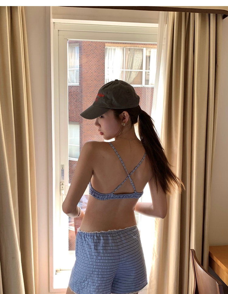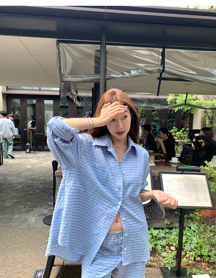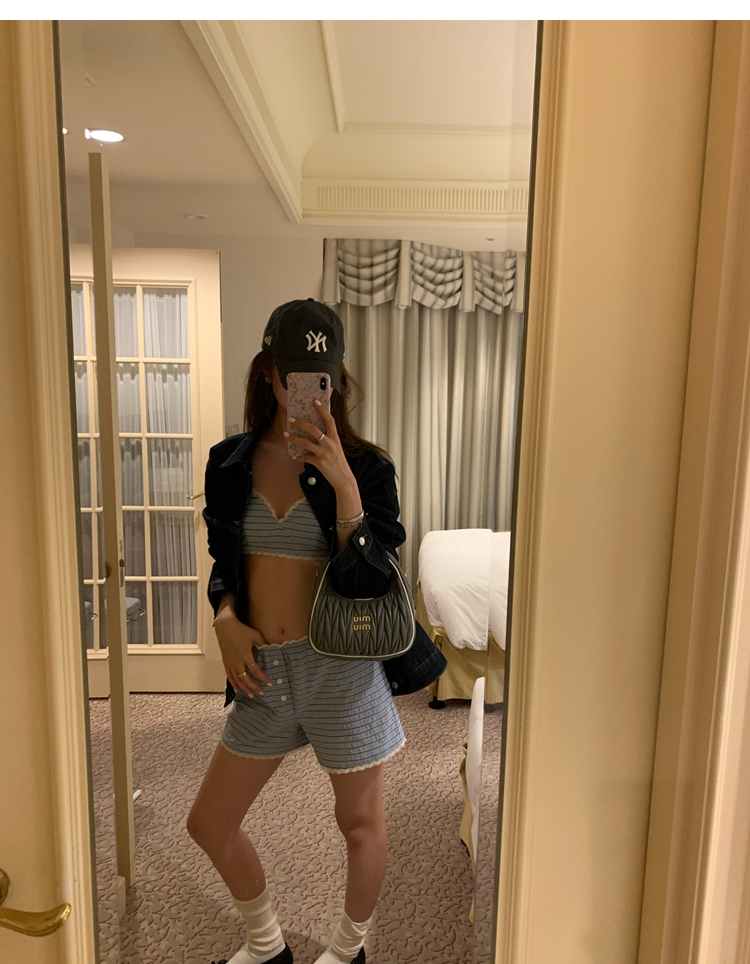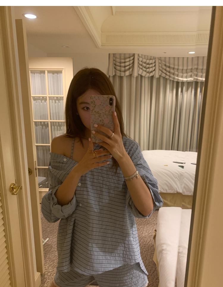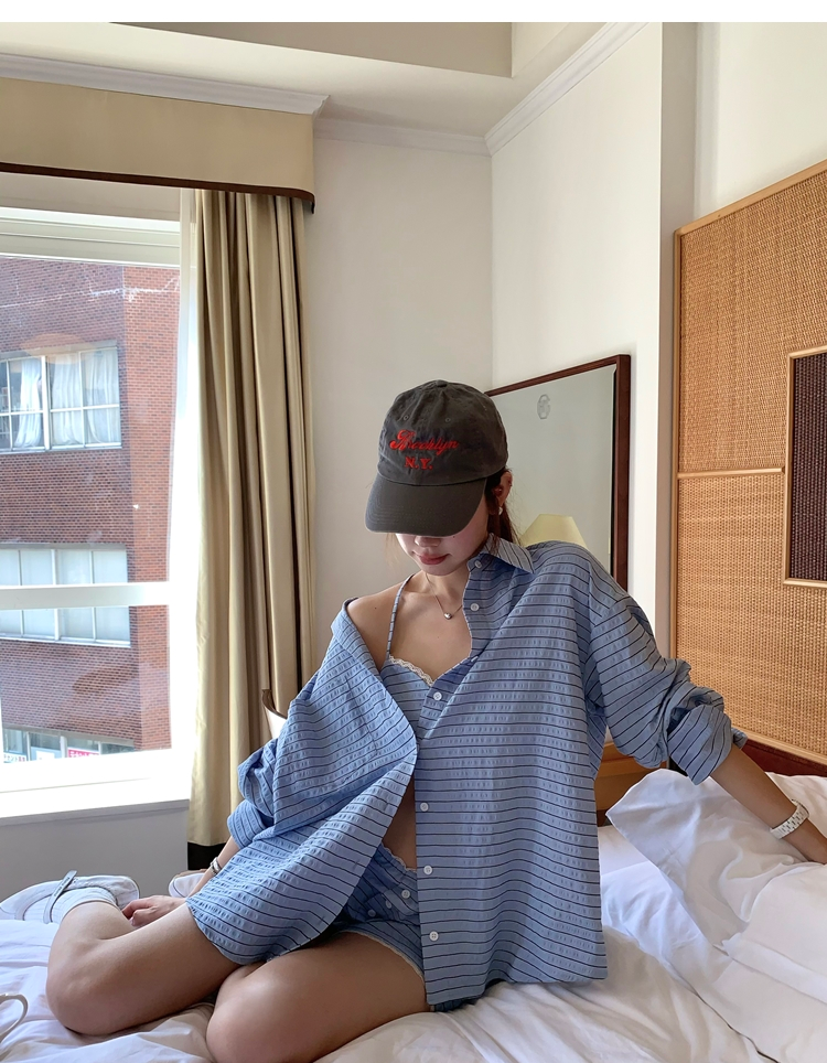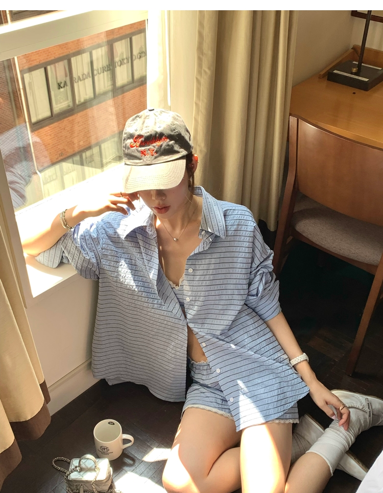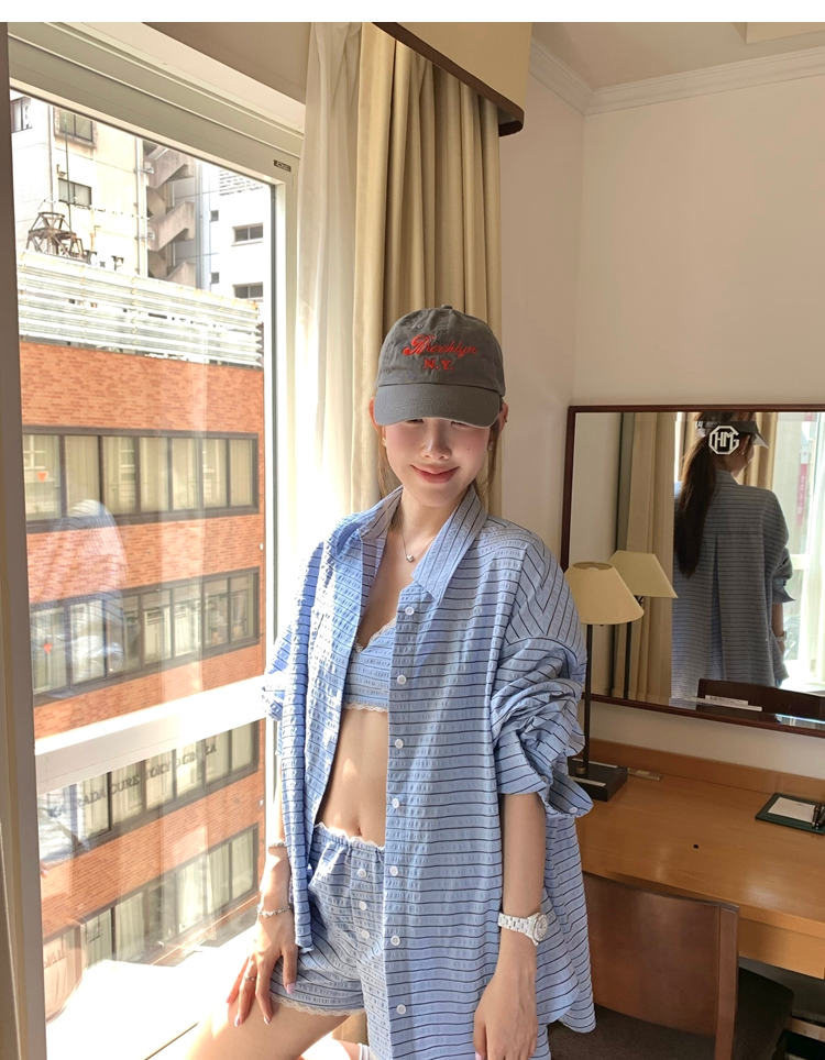 versatile Lazy yarn-dyed striped shirt lace bikini casual shorts set