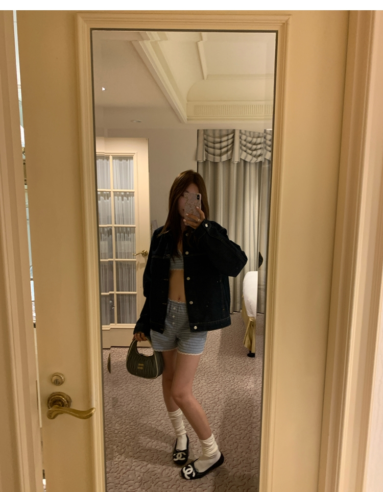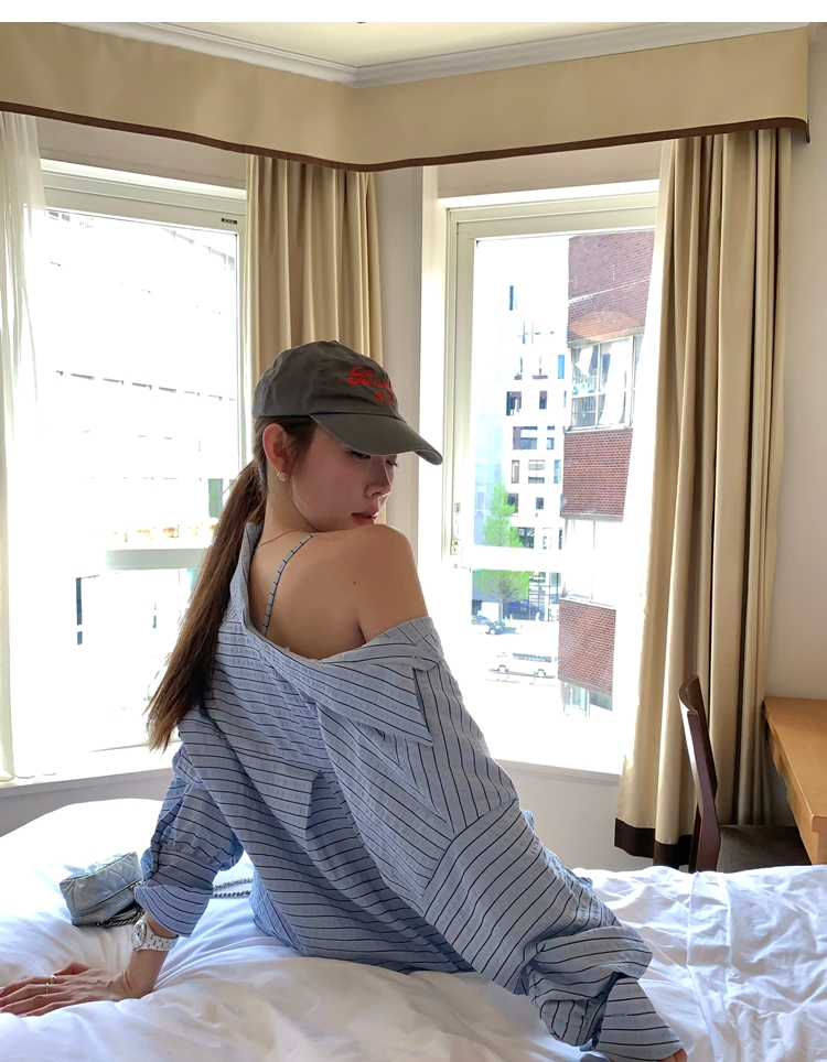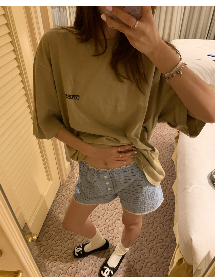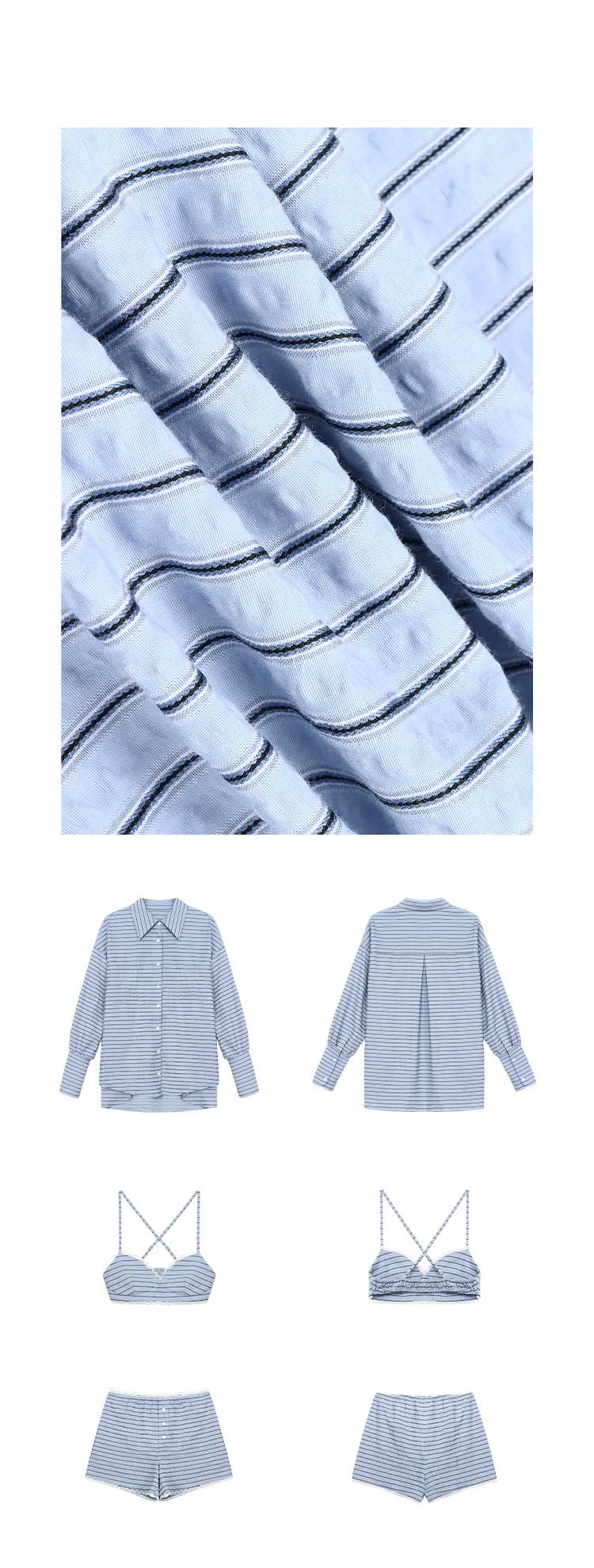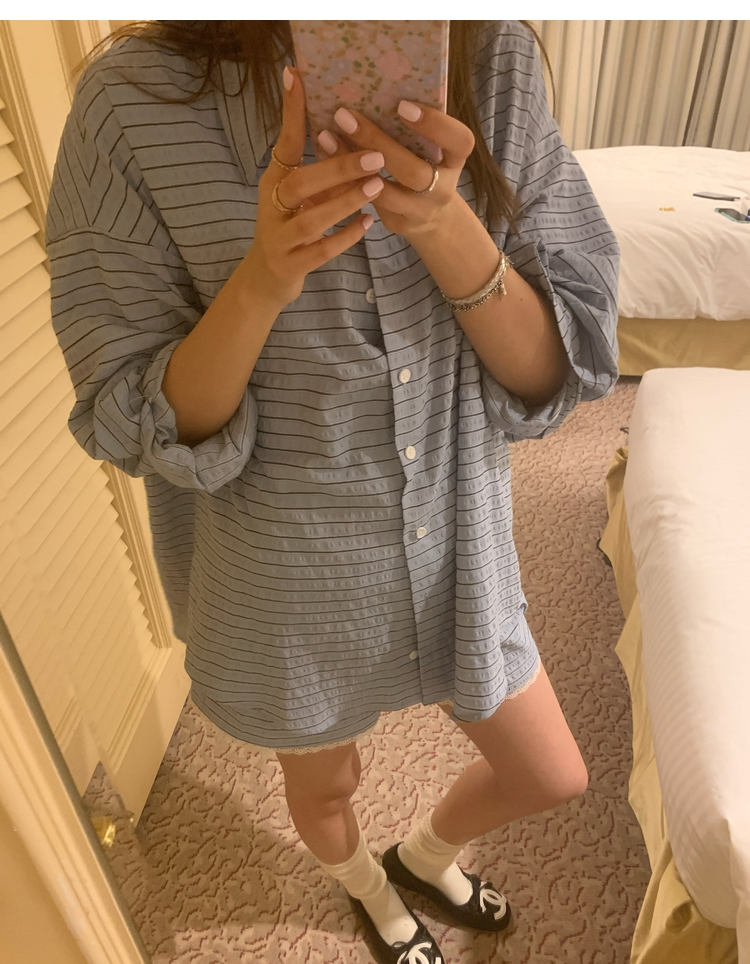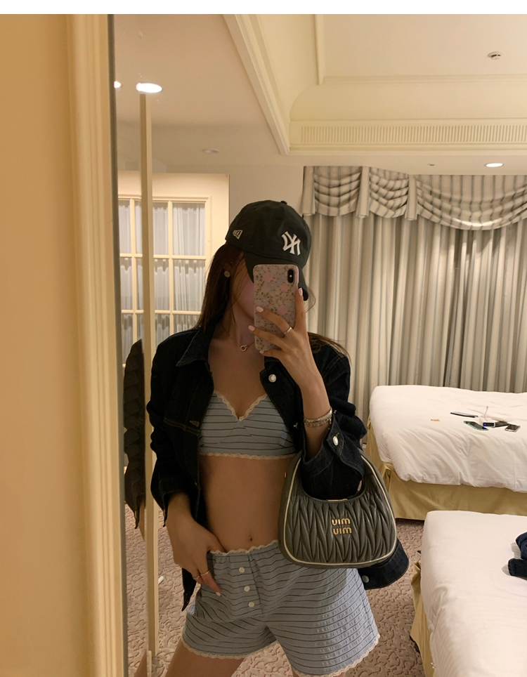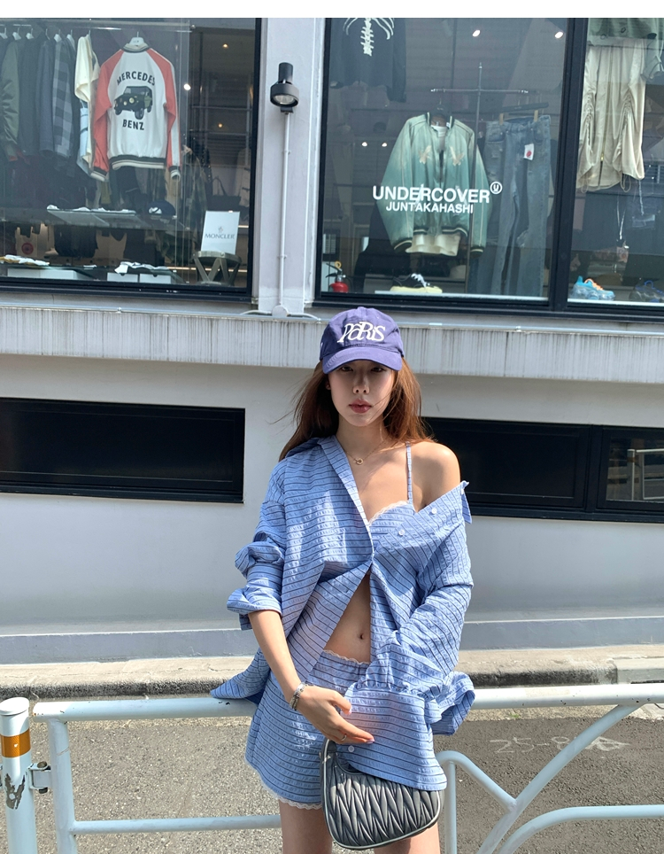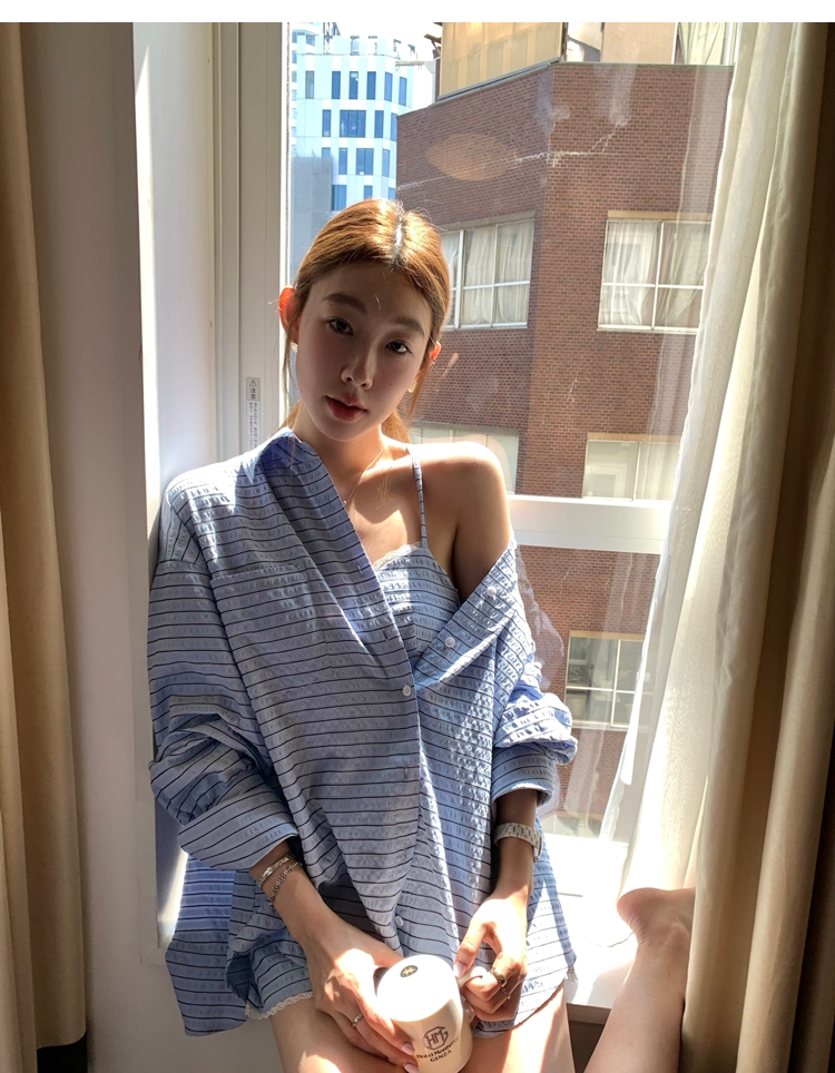 versatile Lazy yarn-dyed striped shirt lace bikini casual shorts set