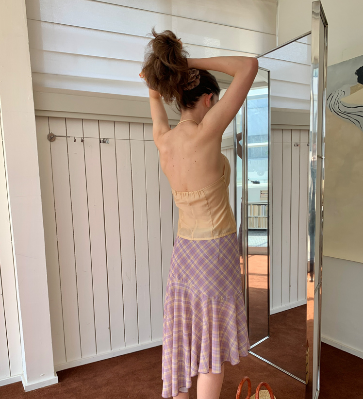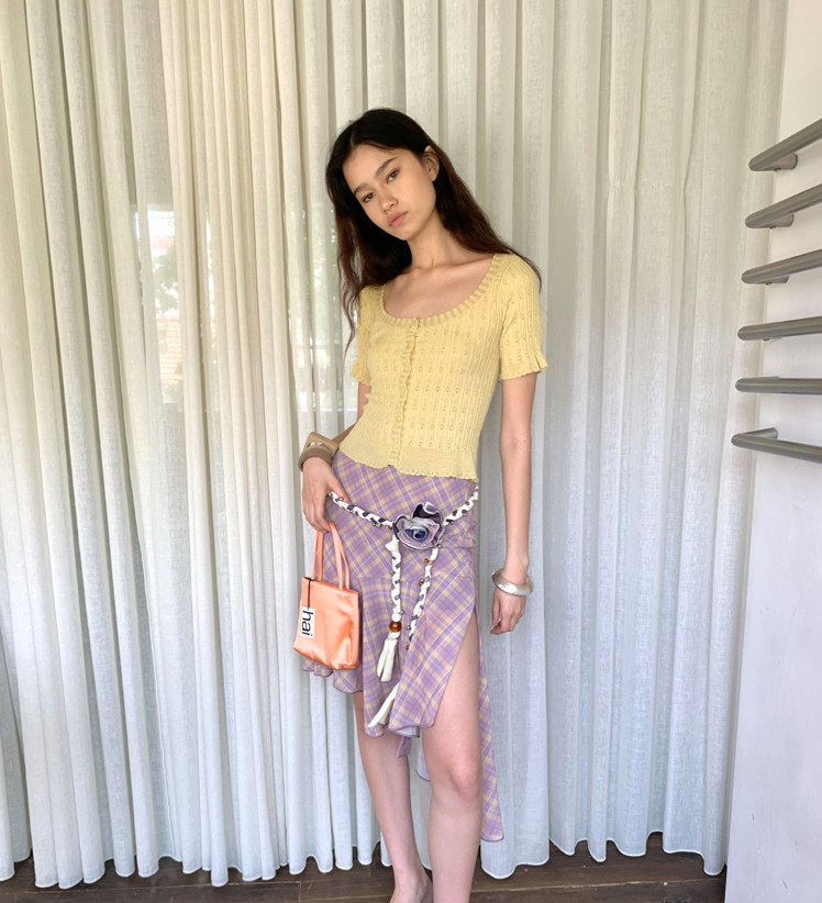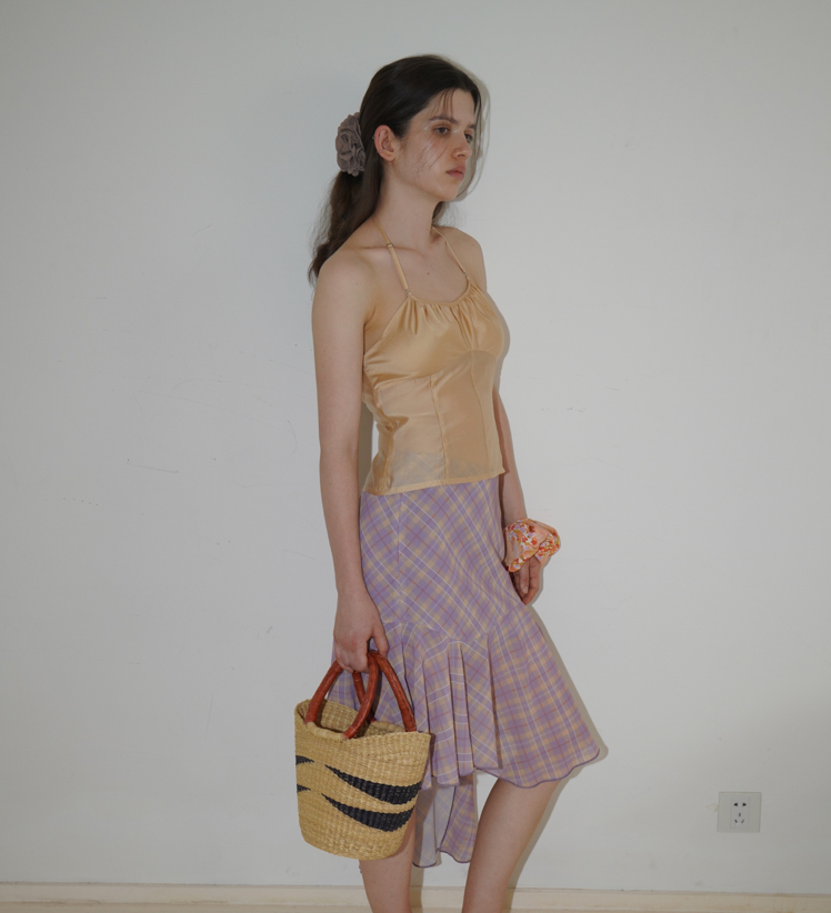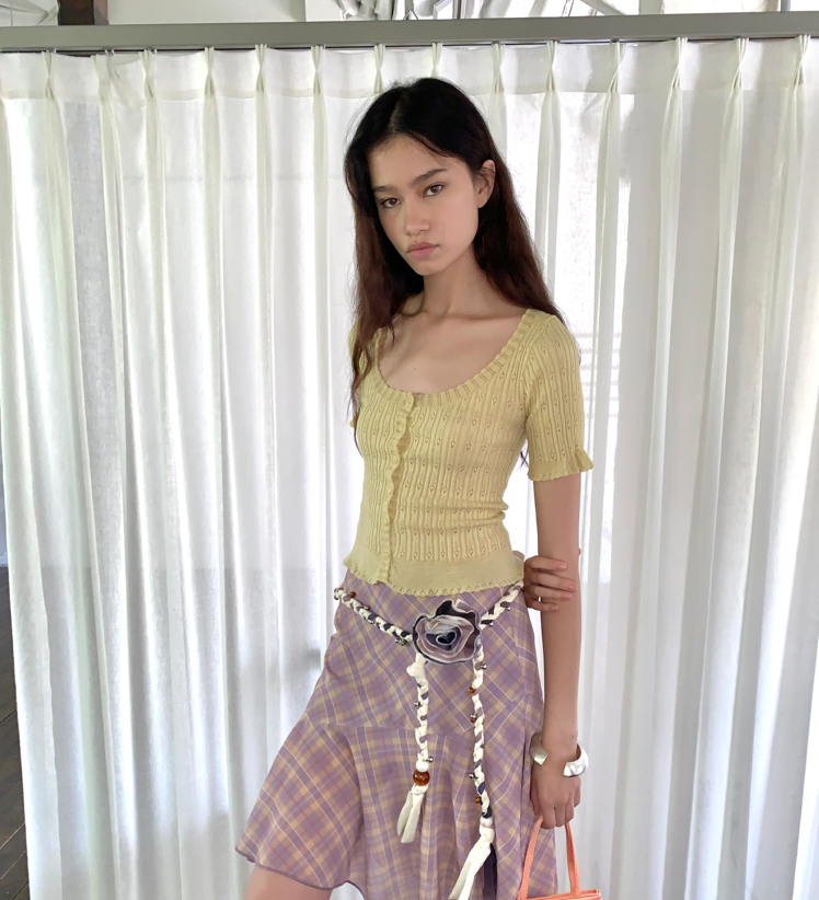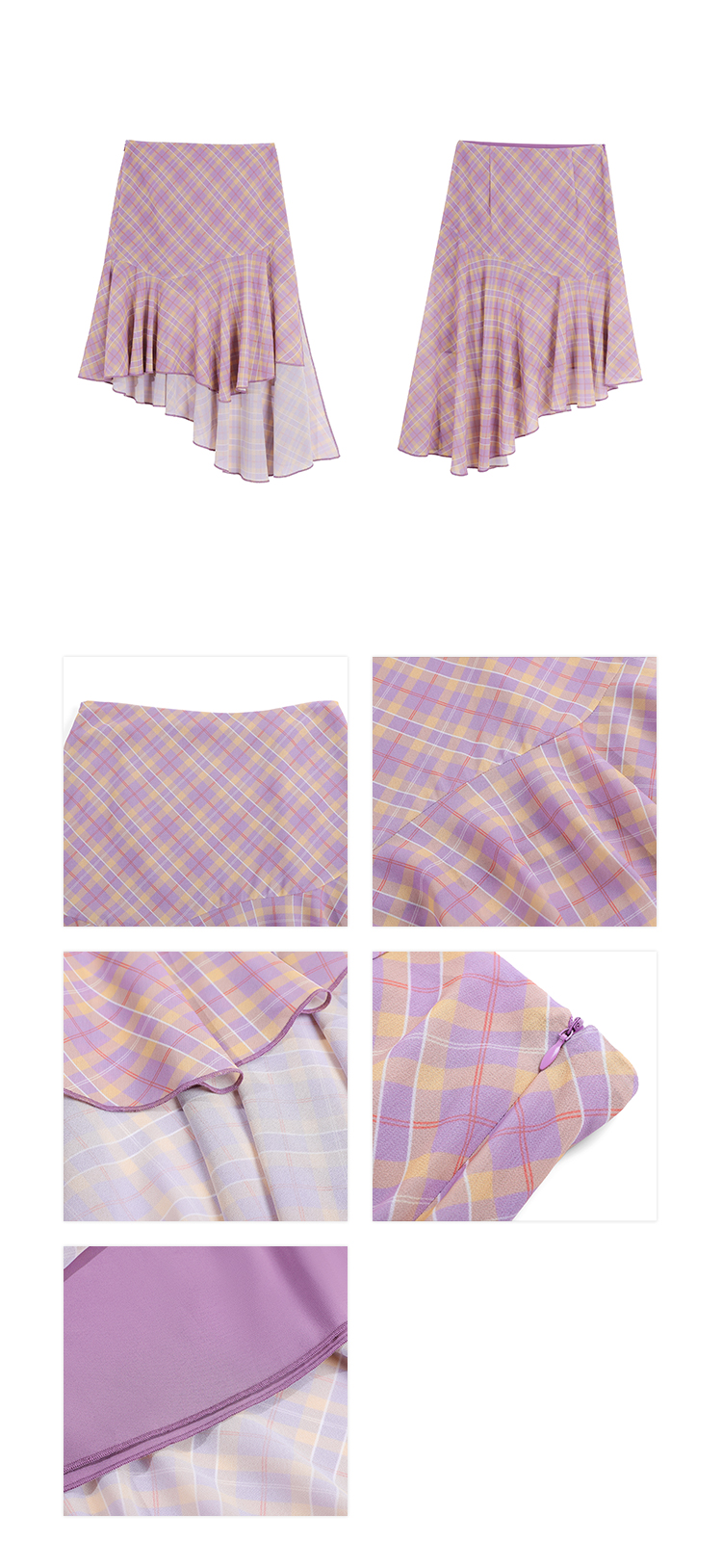 Lotus Leaf Edge Lightweight Retro Checkerboard Half Skirt