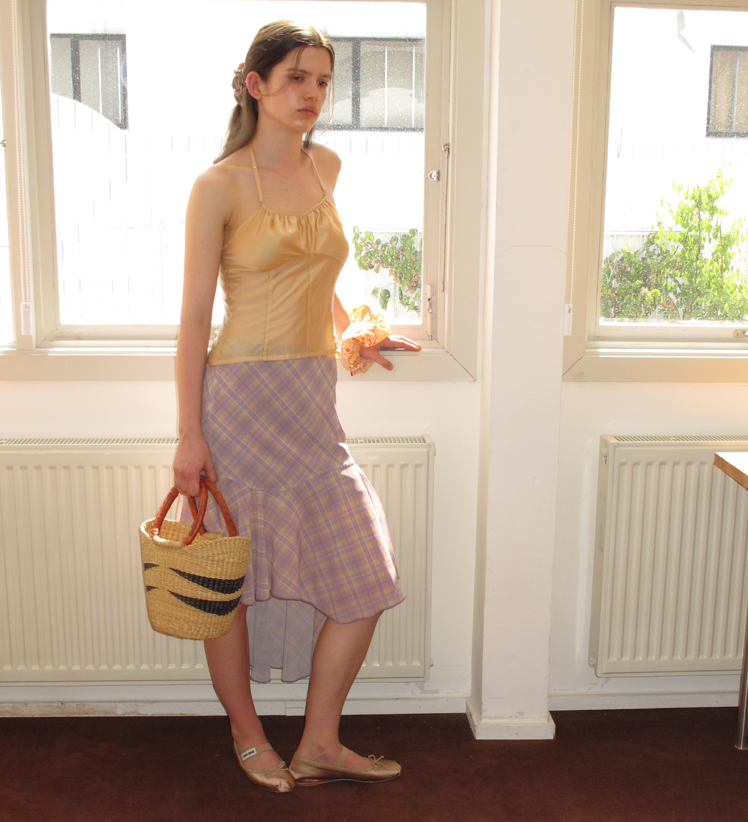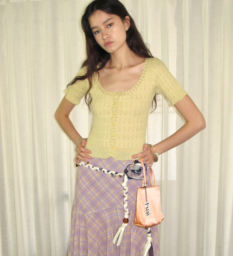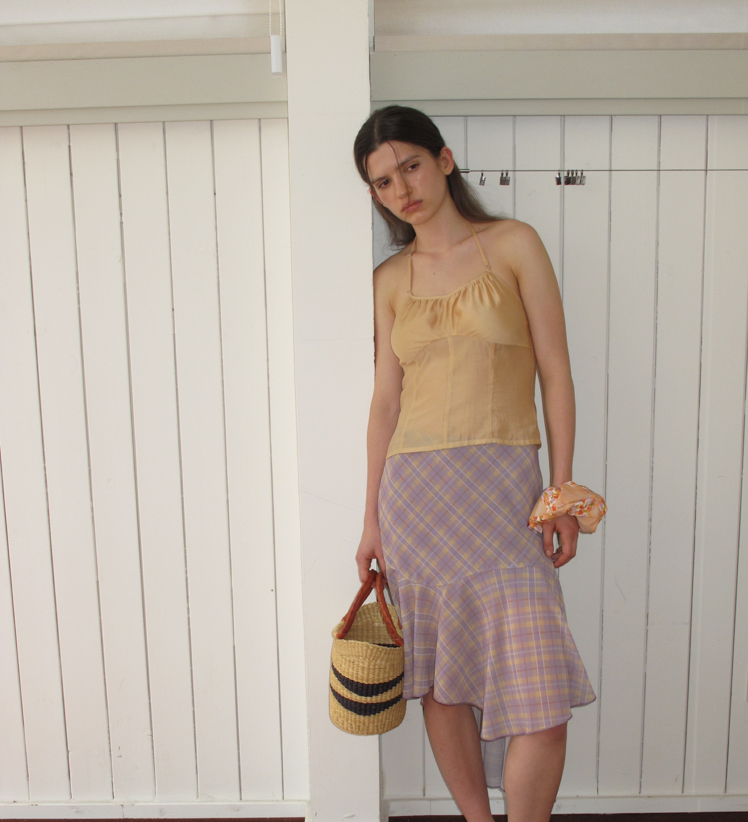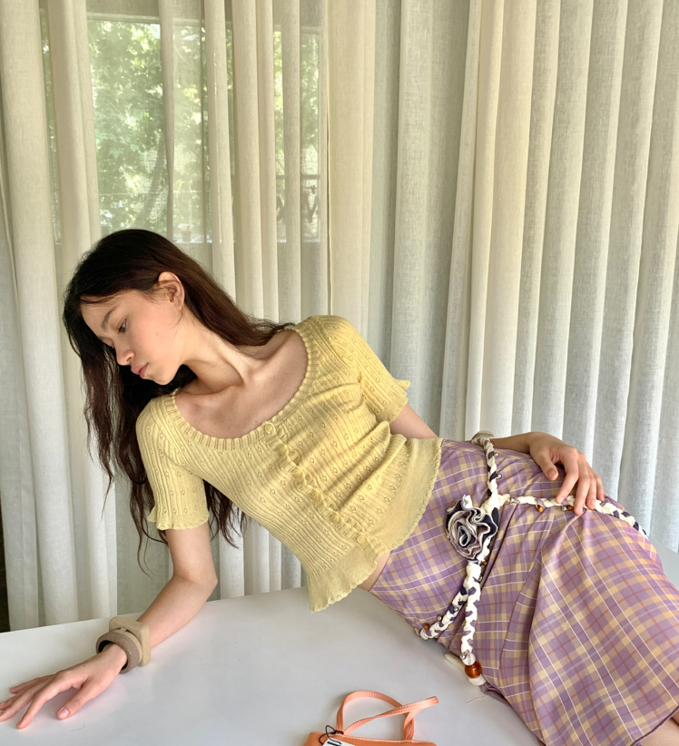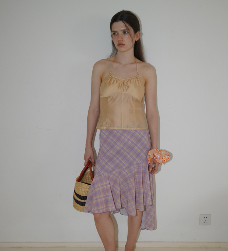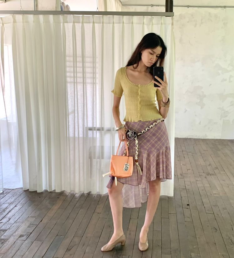 Lotus Leaf Edge Lightweight Retro Checkerboard Half Skirt