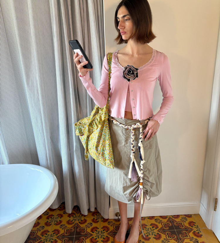 French Knit Lace Bow Strap Cardigan Top Two-Piece
