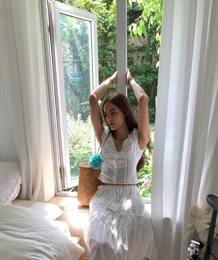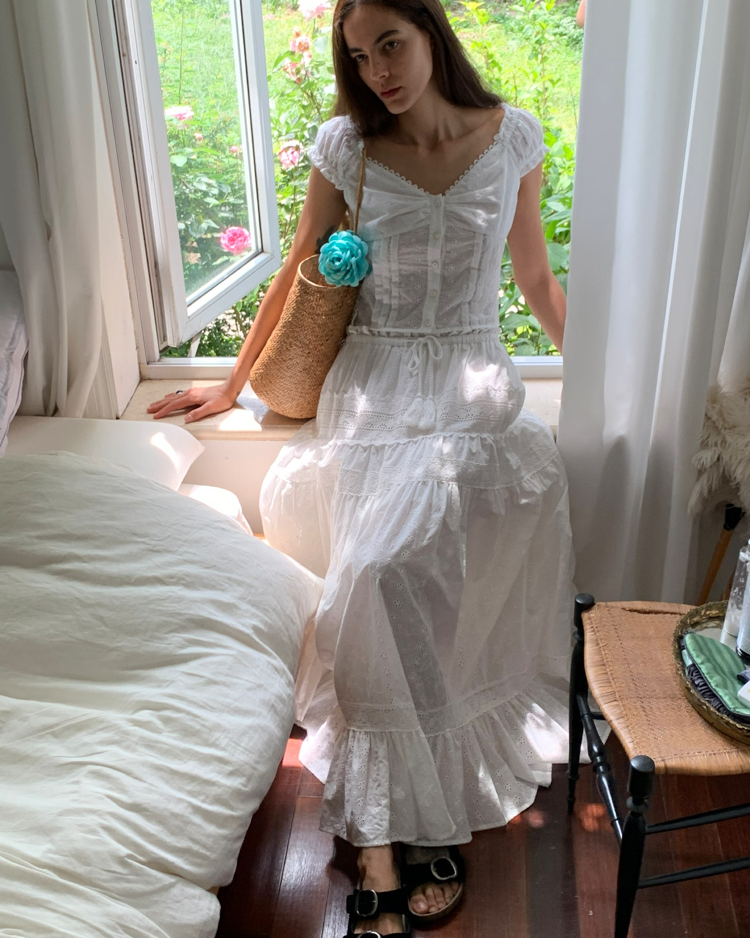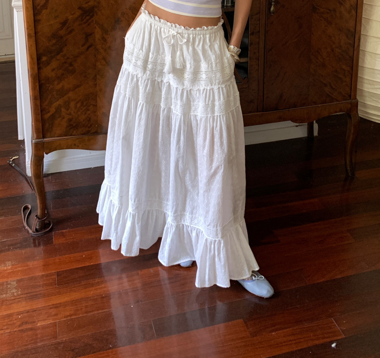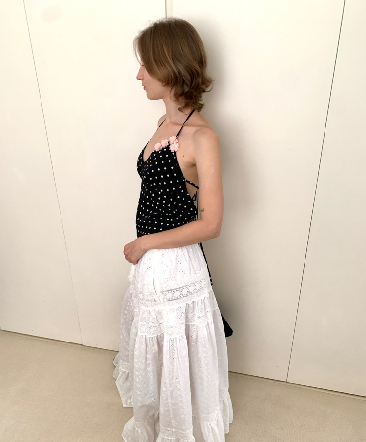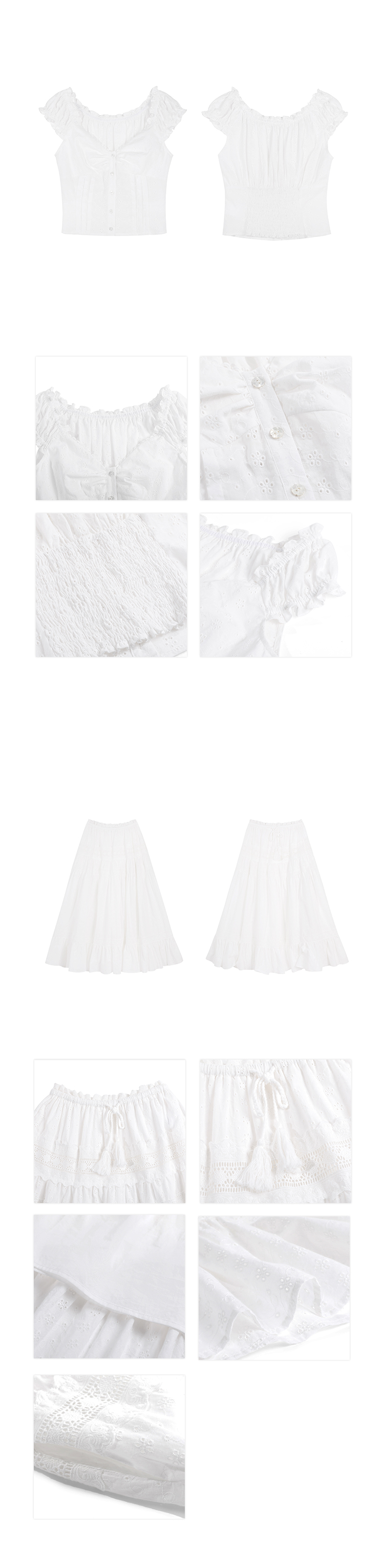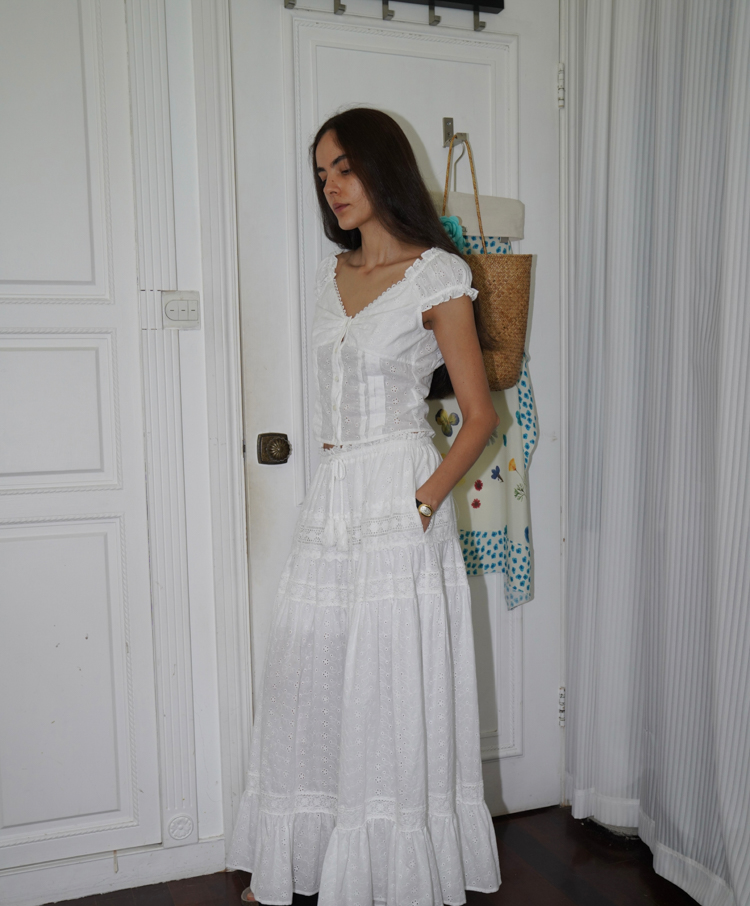 Embroidered French Retro Top with Floral Trim A-Section Half Skirt