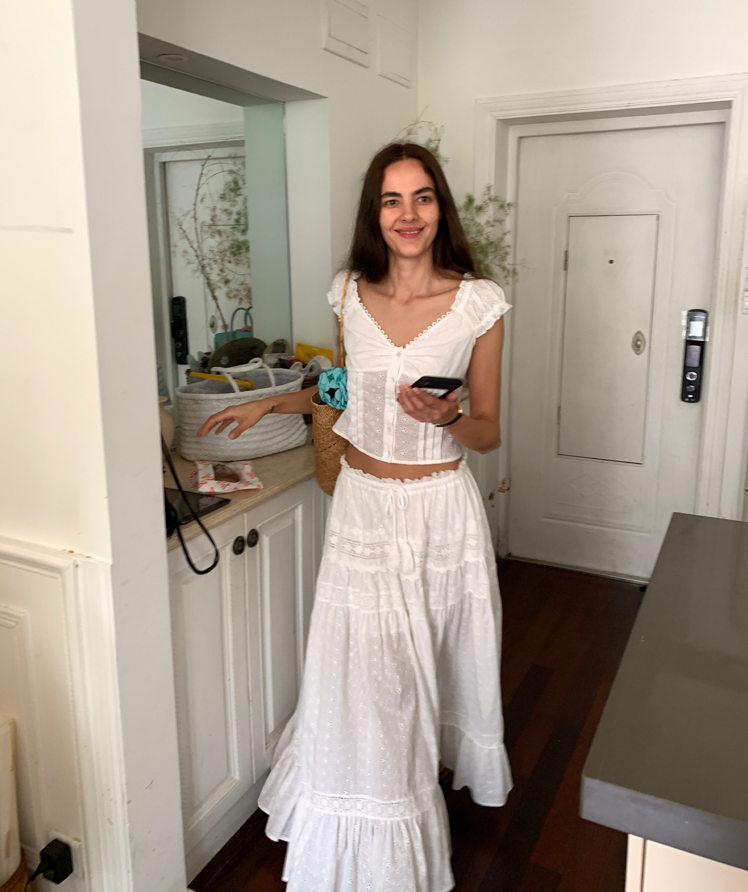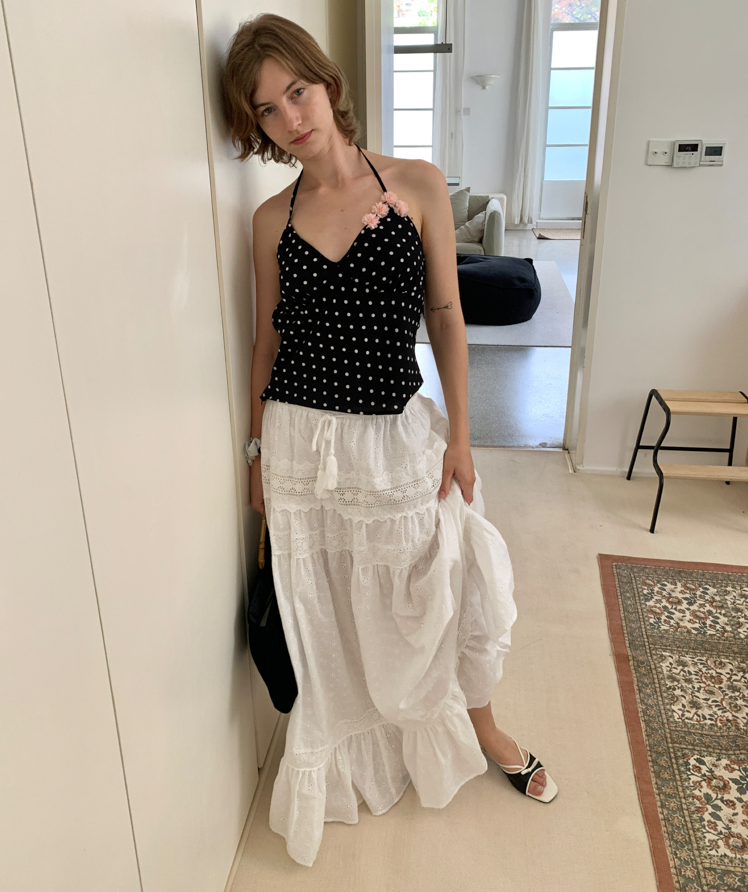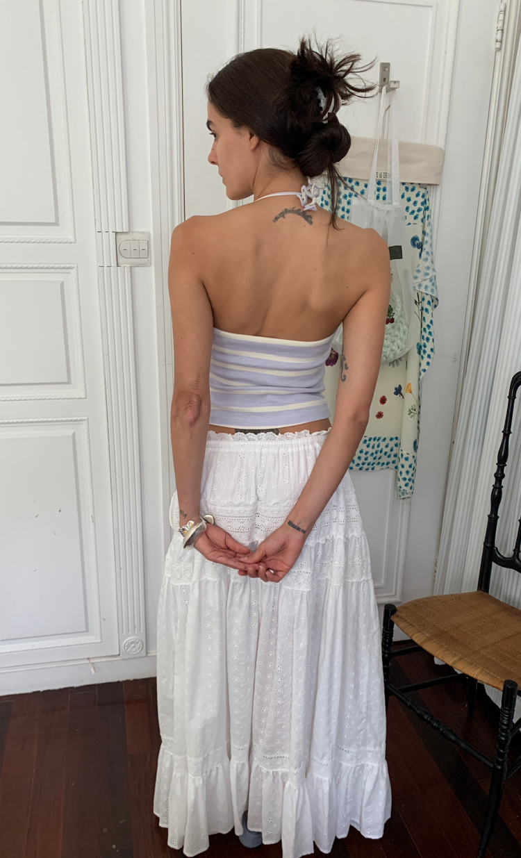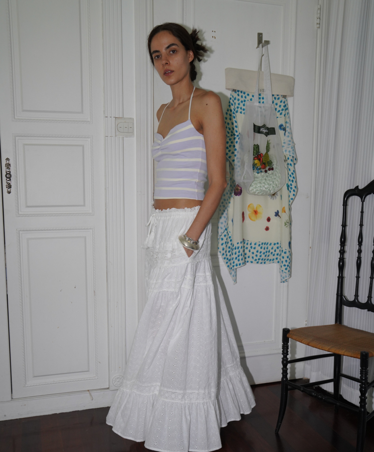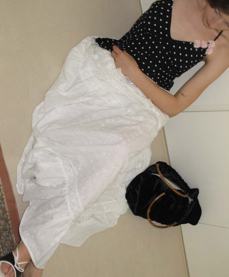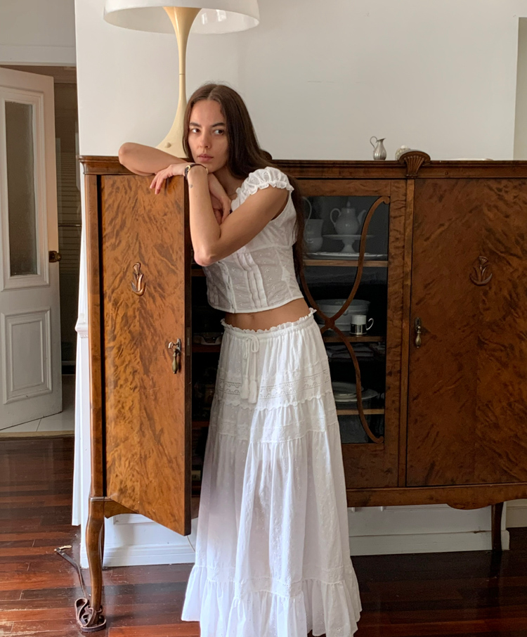 Embroidered French Retro Top with Floral Trim A-Section Half Skirt