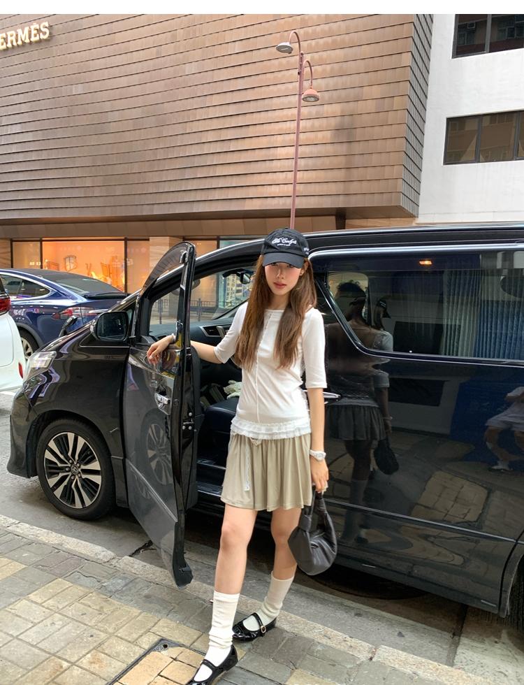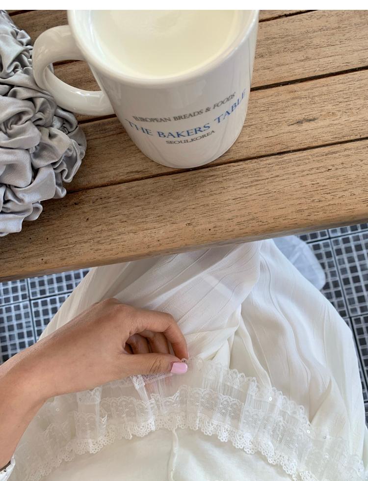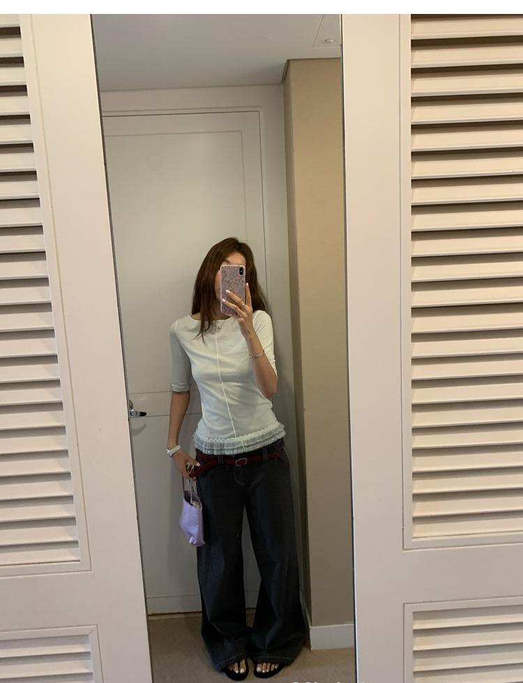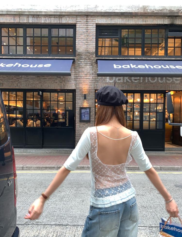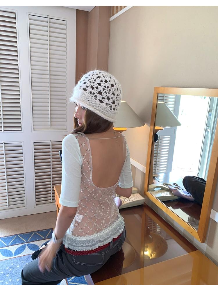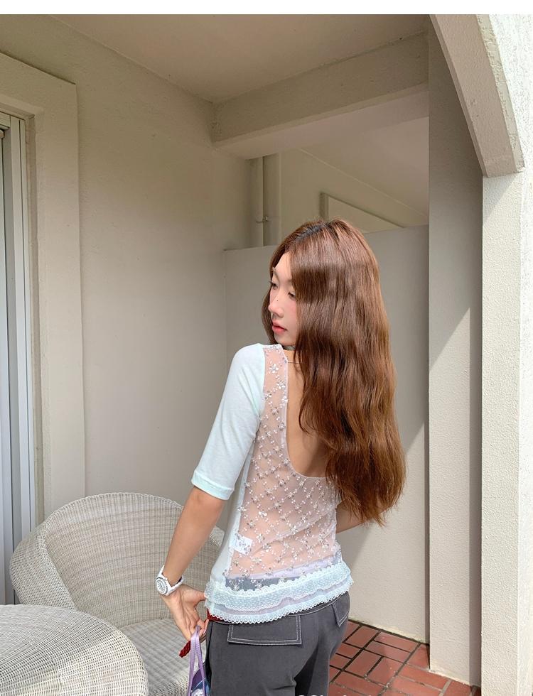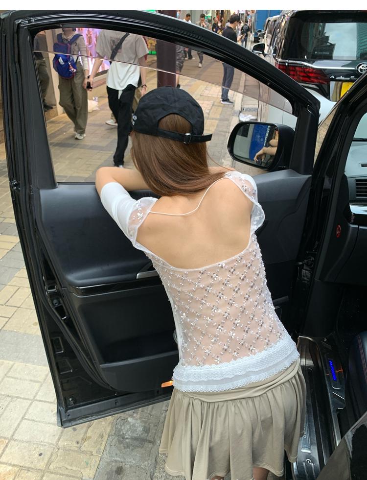 Little Ballet pure desire layered ruffled hem backless lace sequin T-shirt