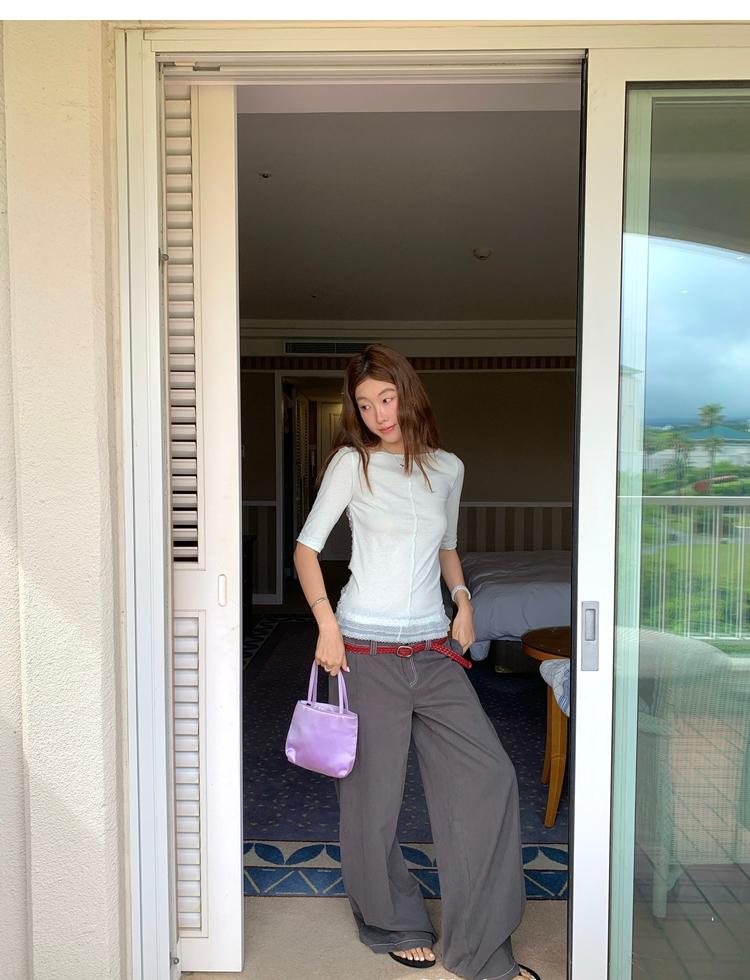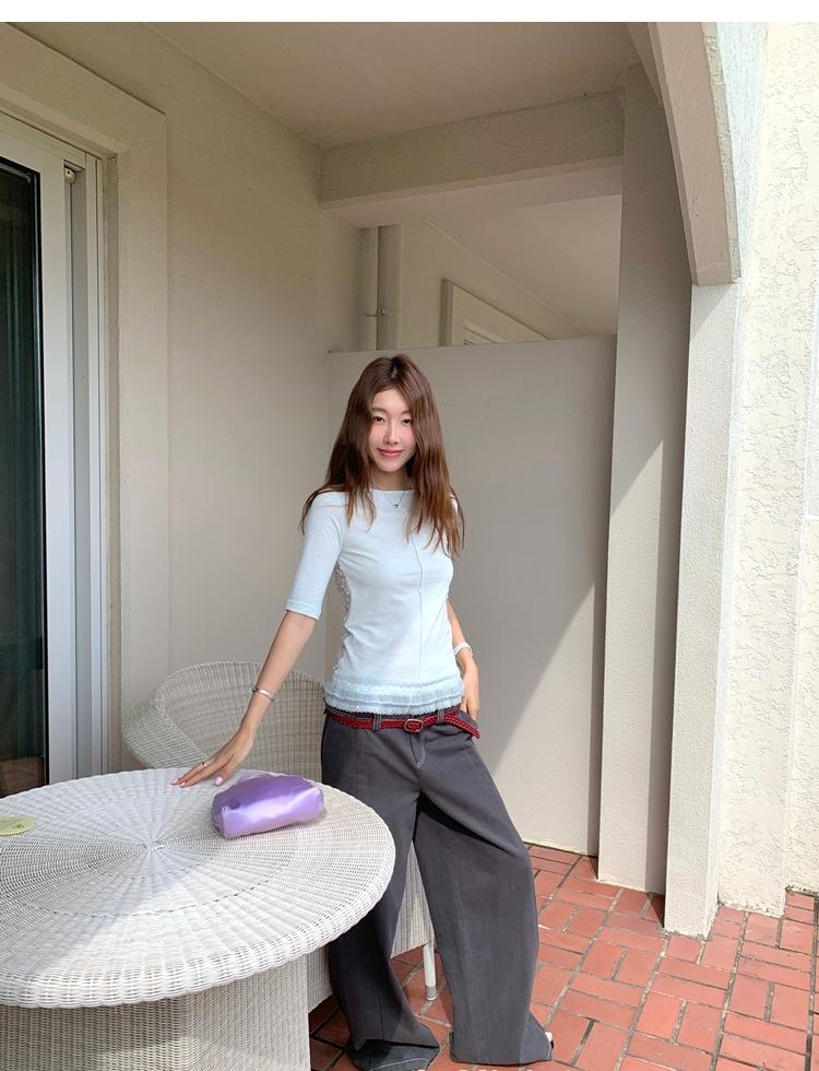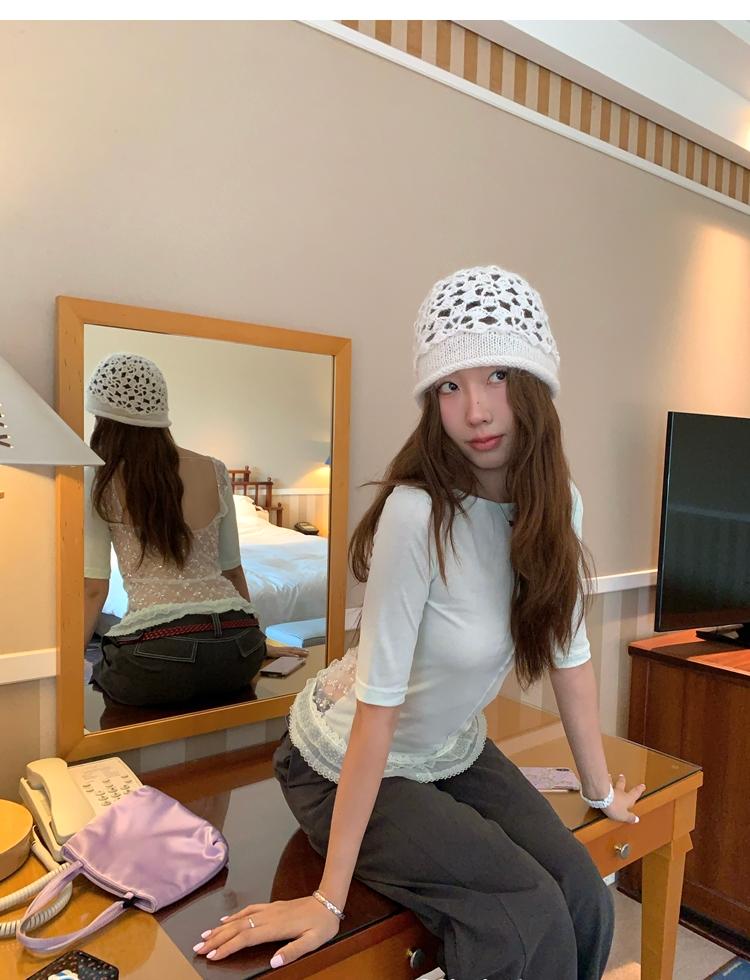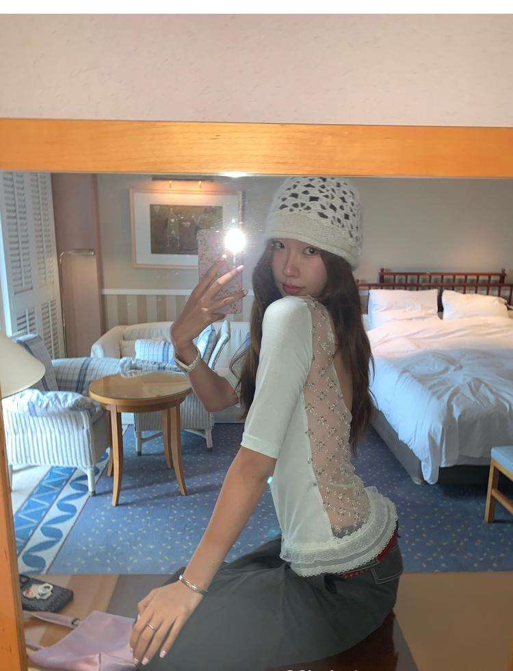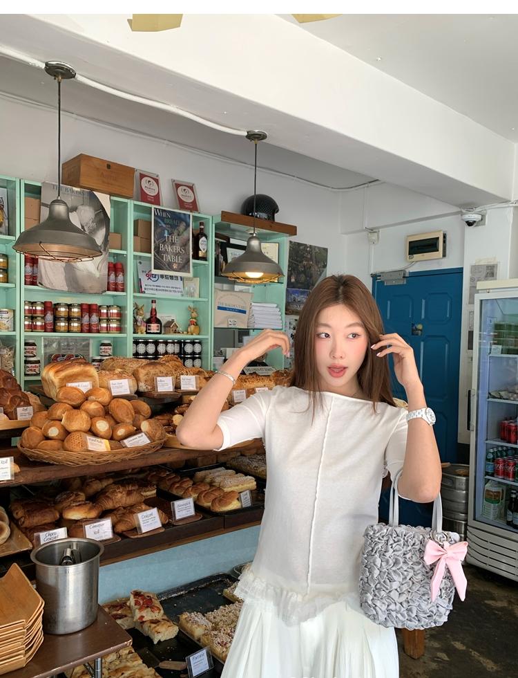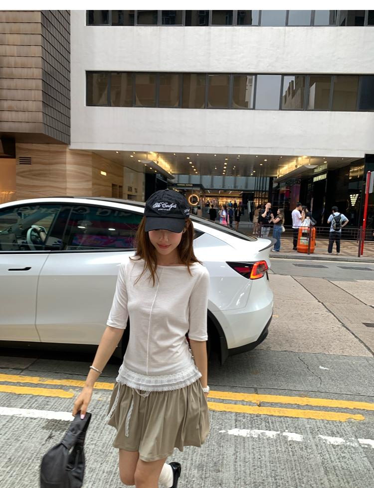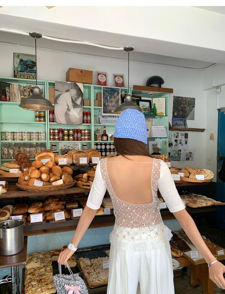 Little Ballet pure desire layered ruffled hem backless lace sequin T-shirt