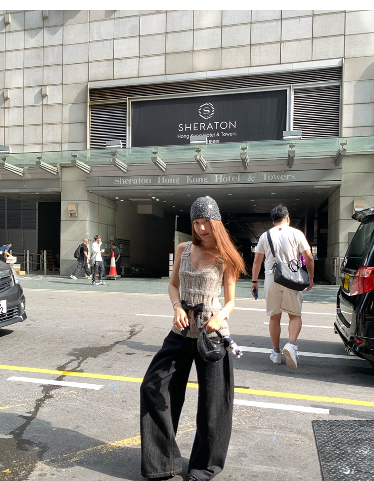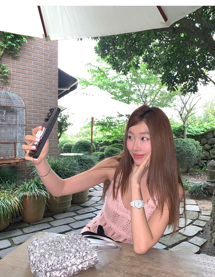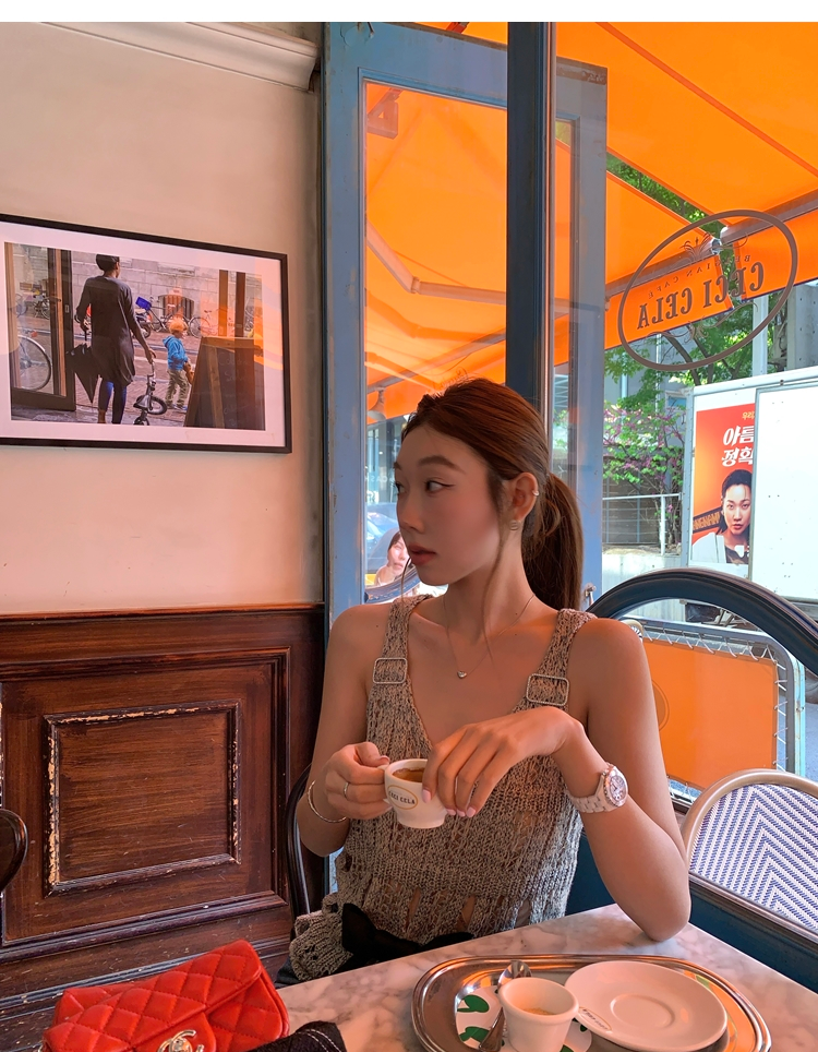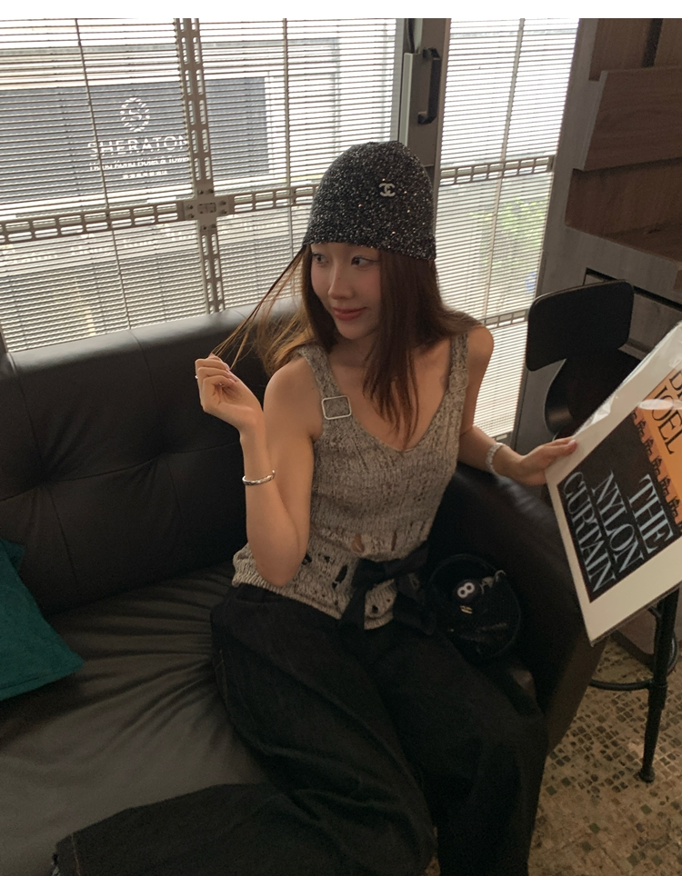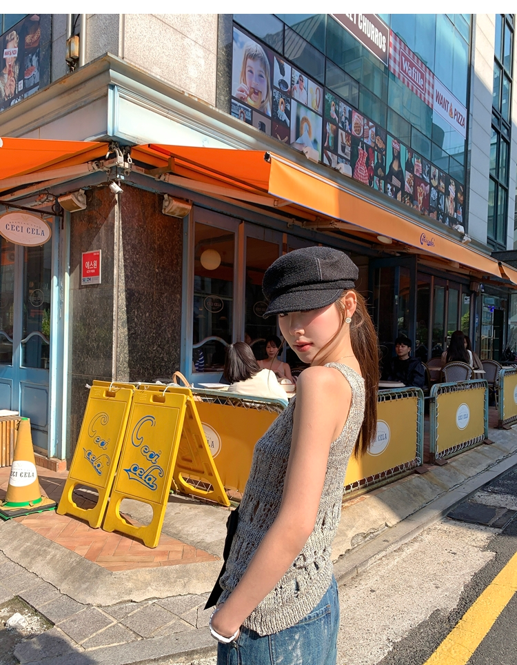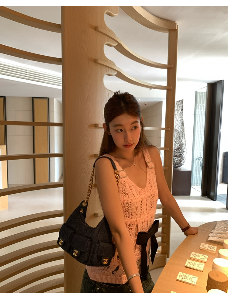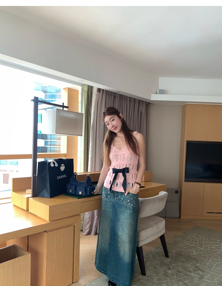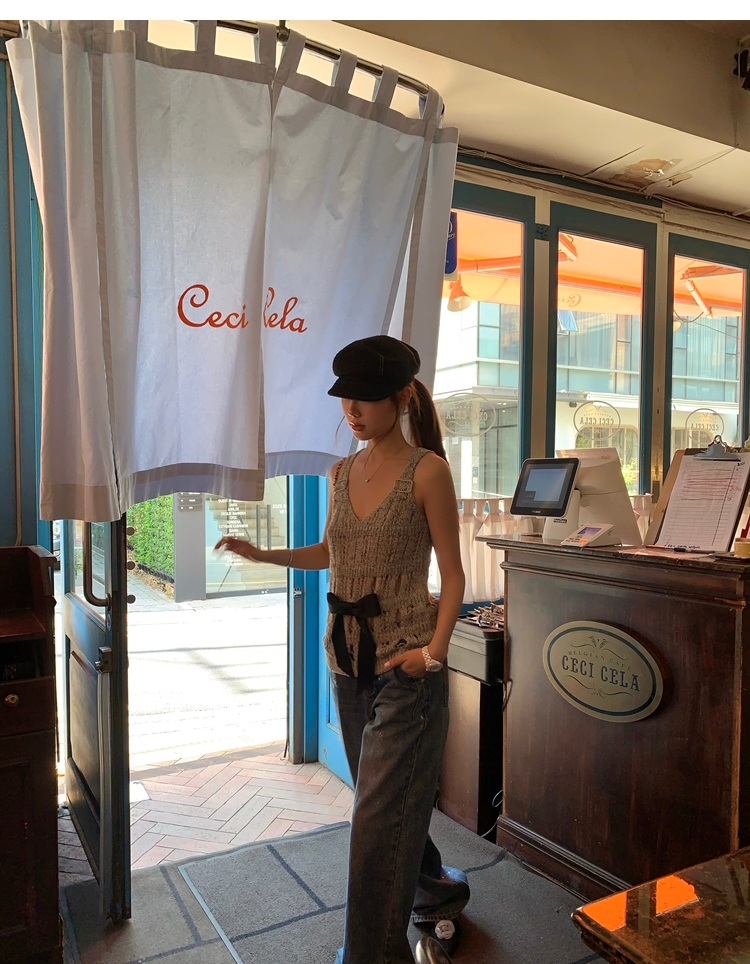 Hollow Crochet Knitted Diamond Button Bow Waist Vest