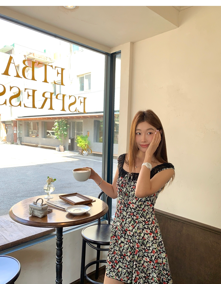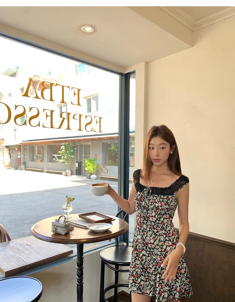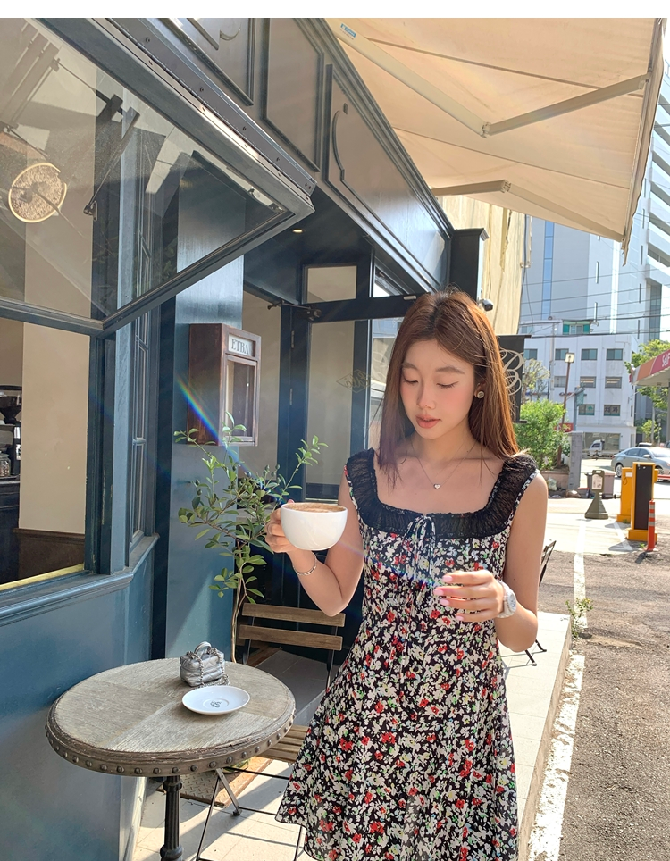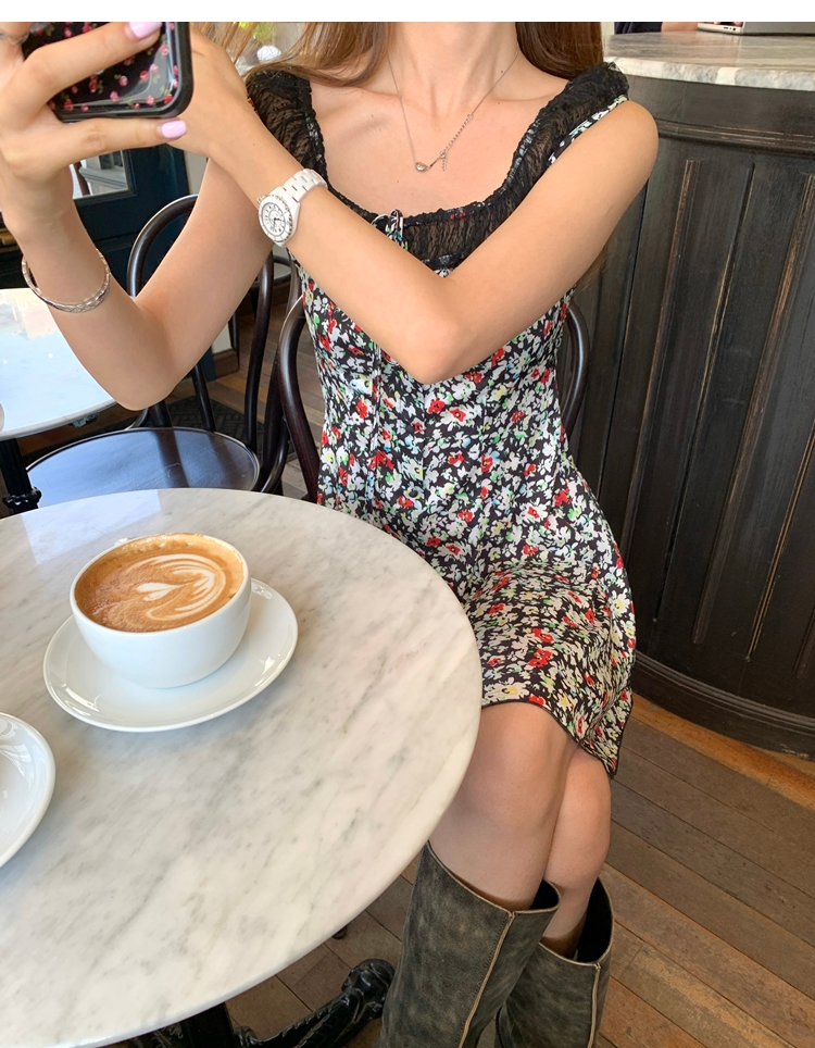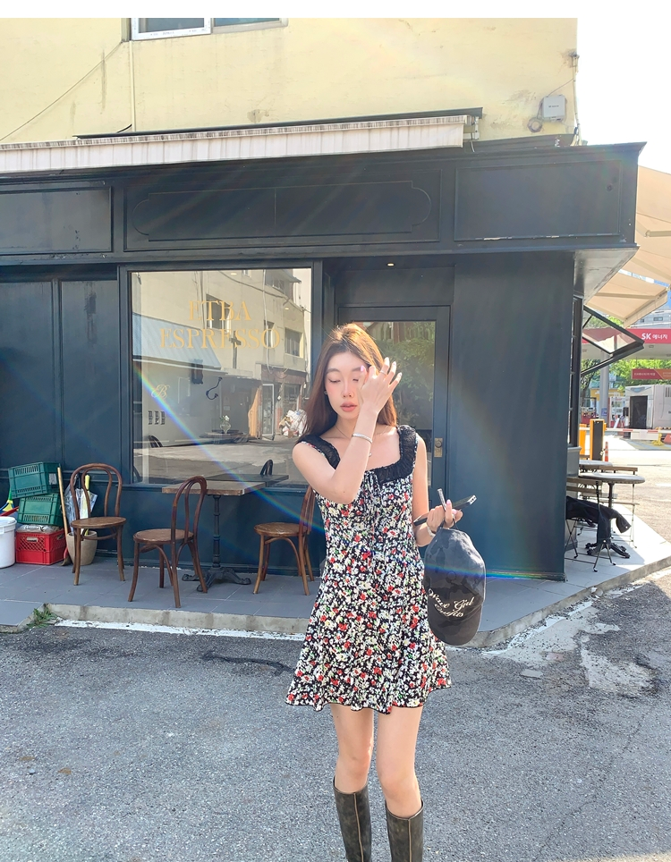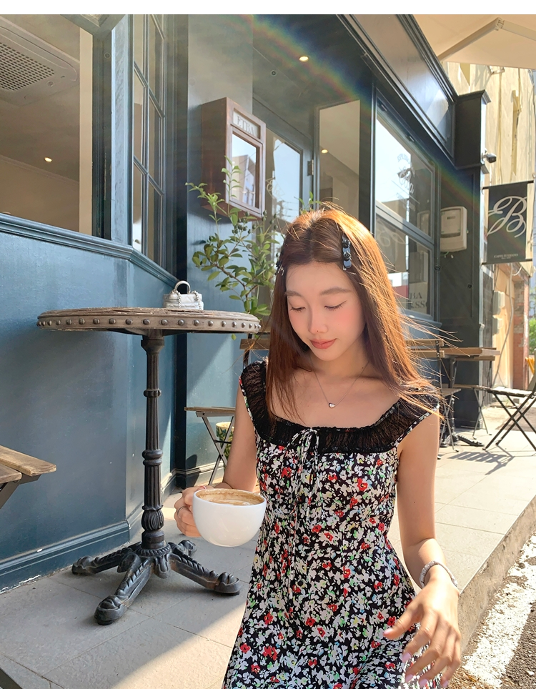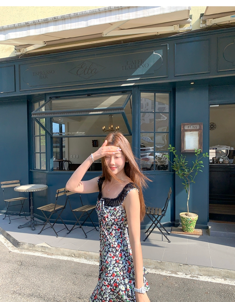 Secret Garden Romantic Retro Square Neck Lace Floral Dress