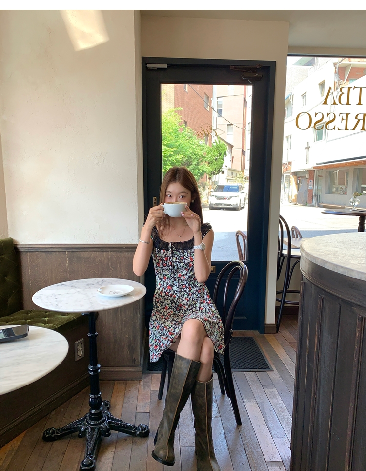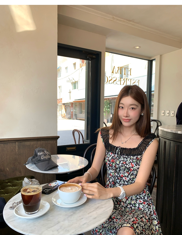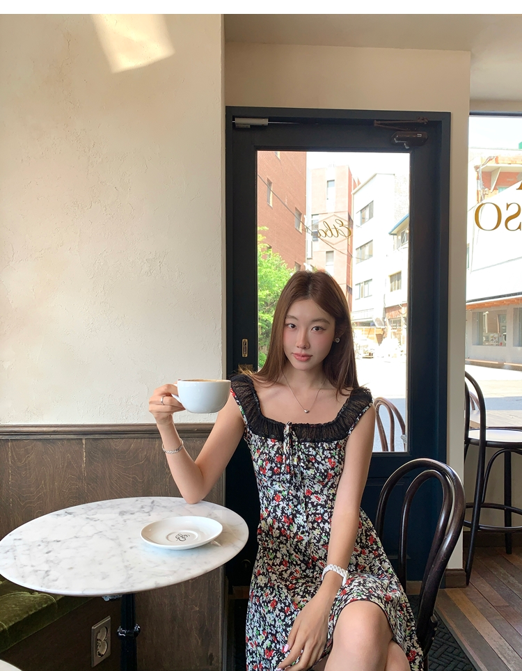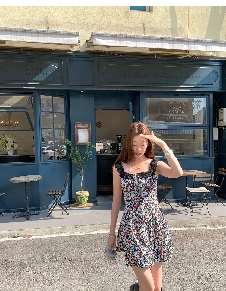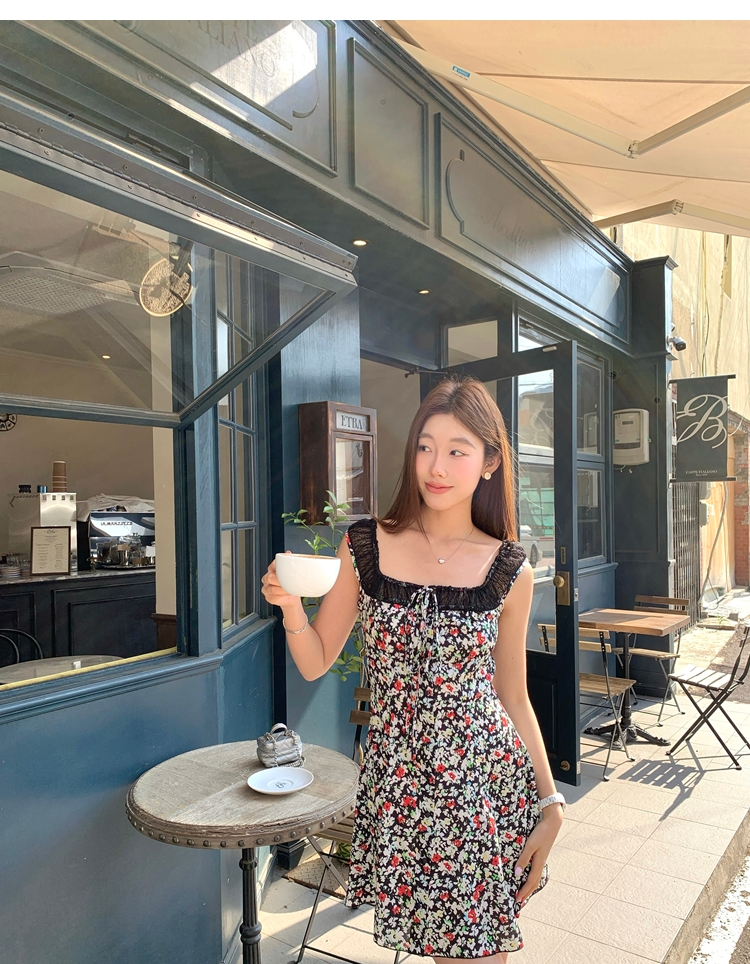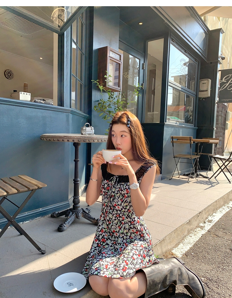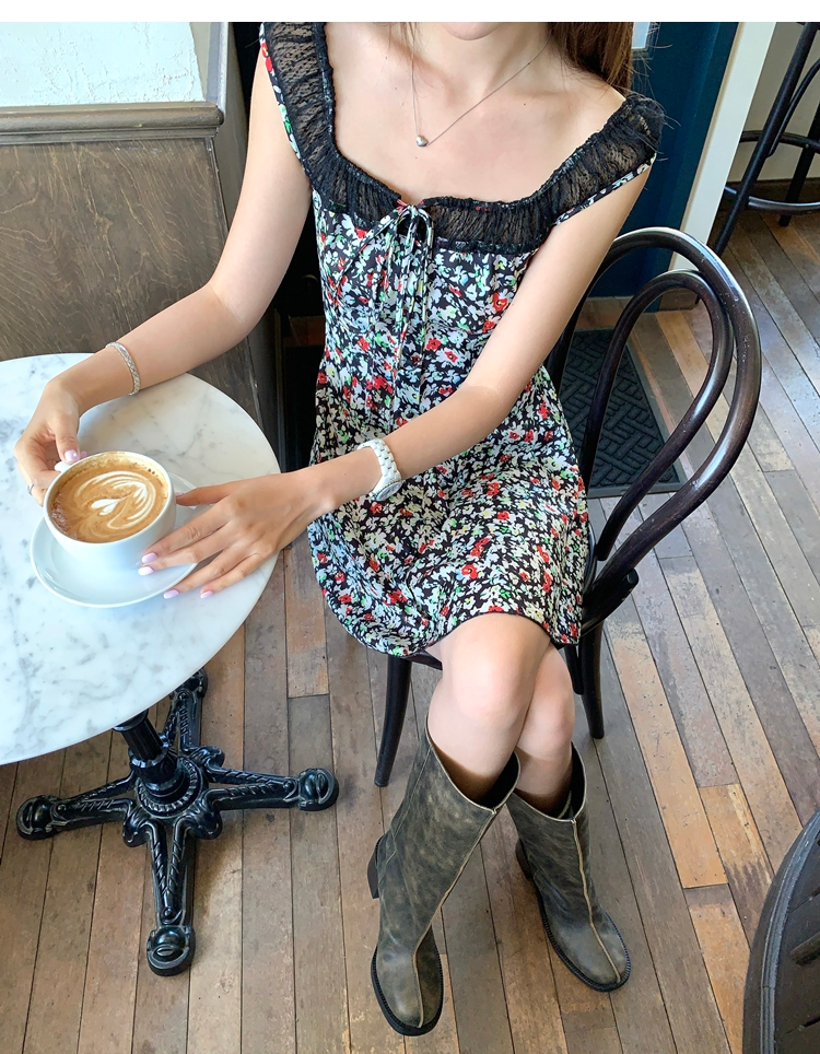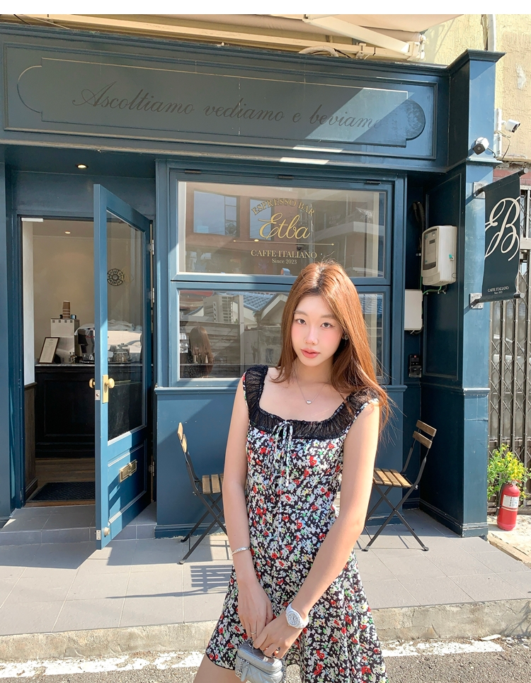 Secret Garden Romantic Retro Square Neck Lace Floral Dress