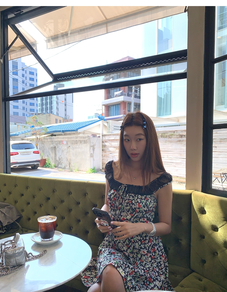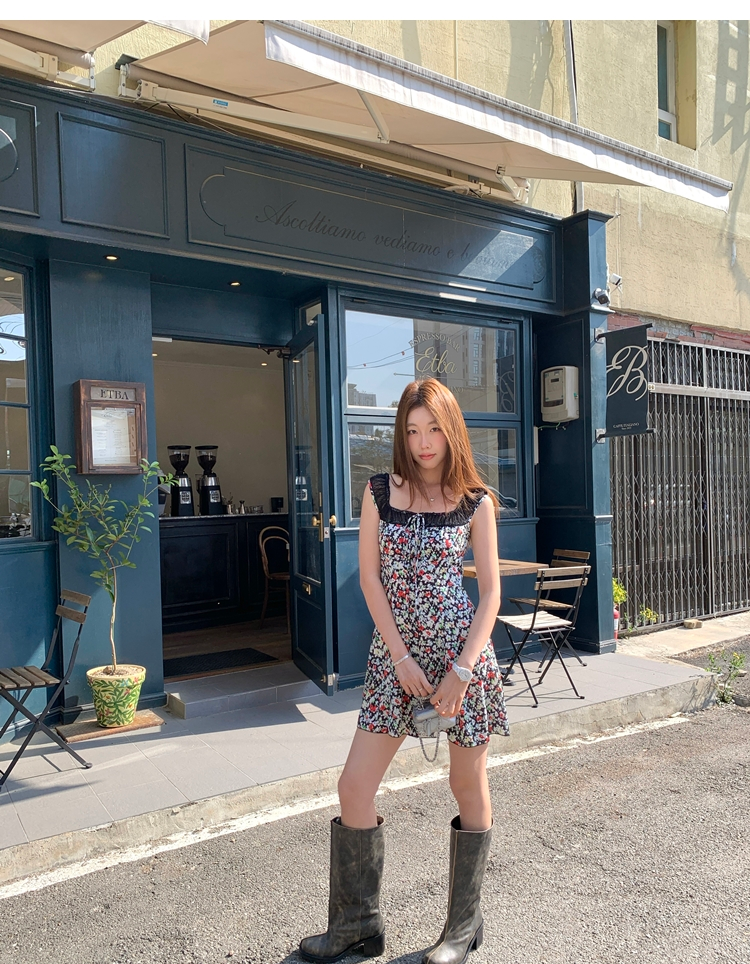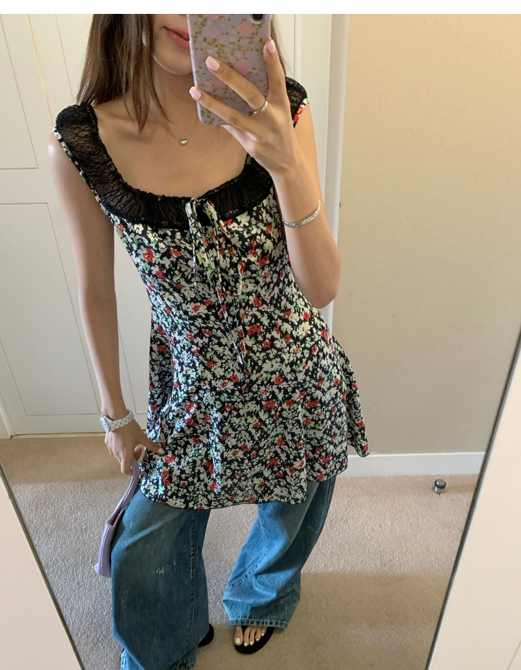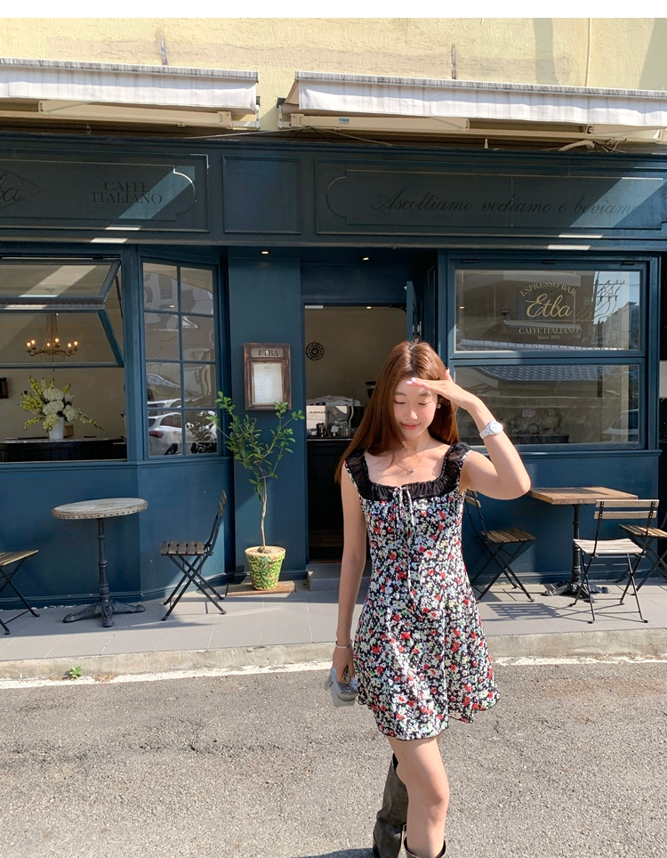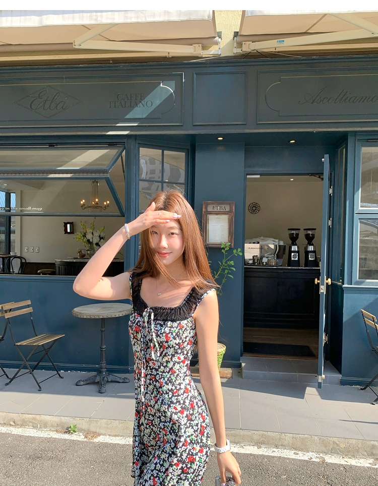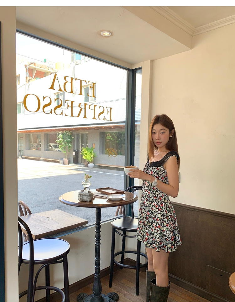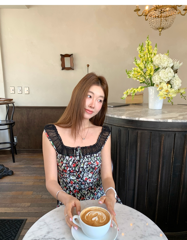 Secret Garden Romantic Retro Square Neck Lace Floral Dress