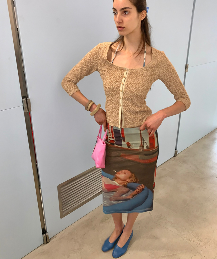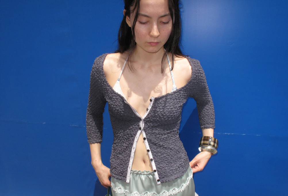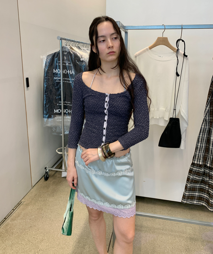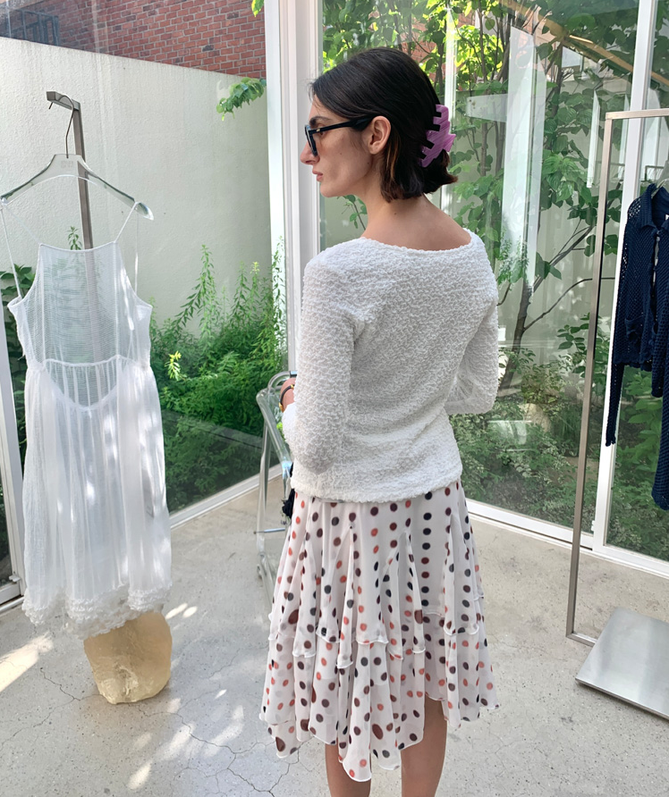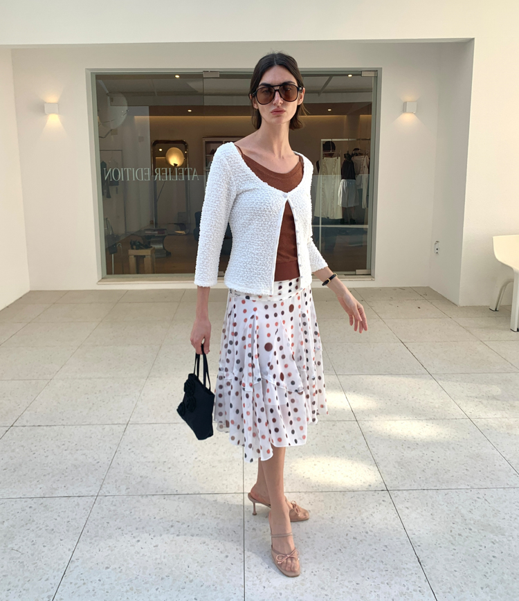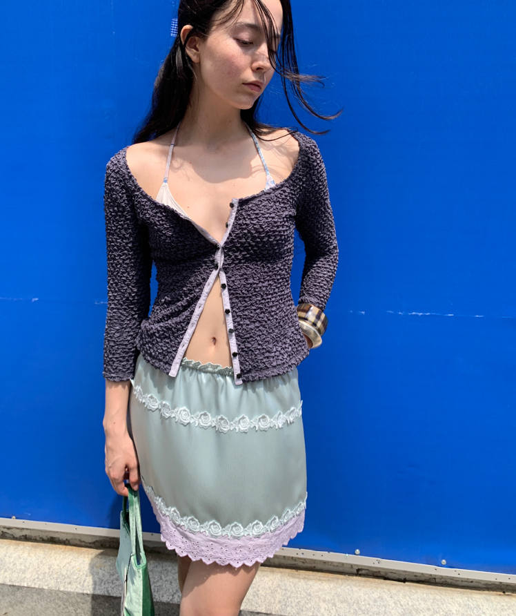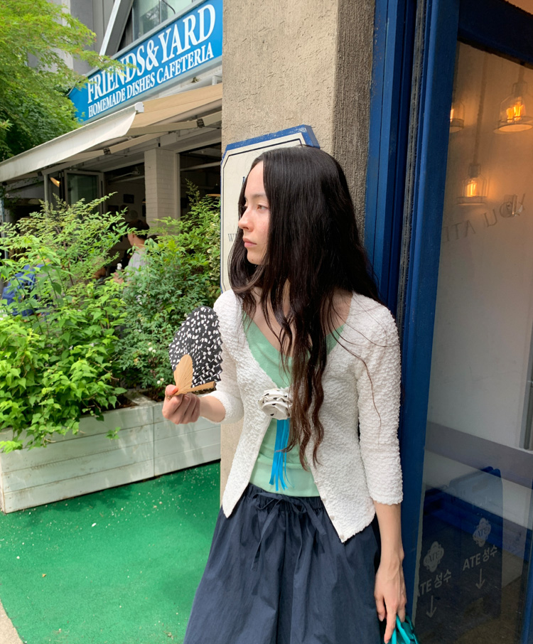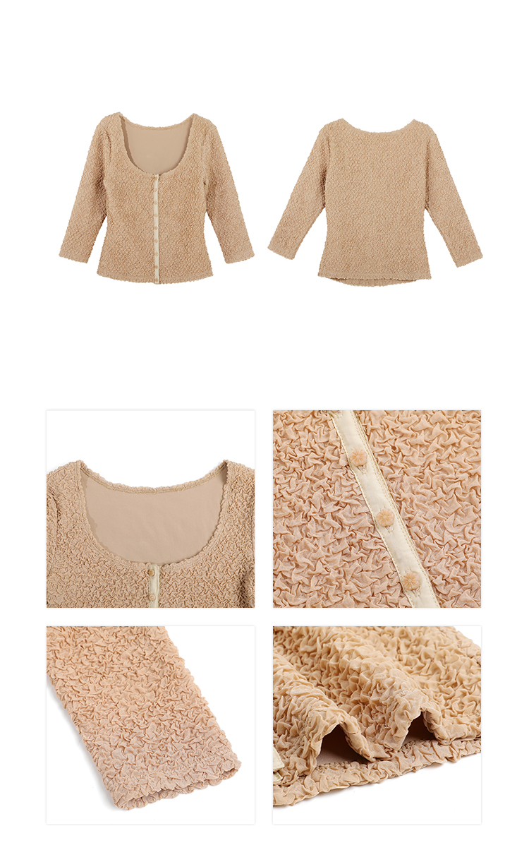 Customized U-Neck Collar Skin Tone Bubble Pleated Slim Cardigan
