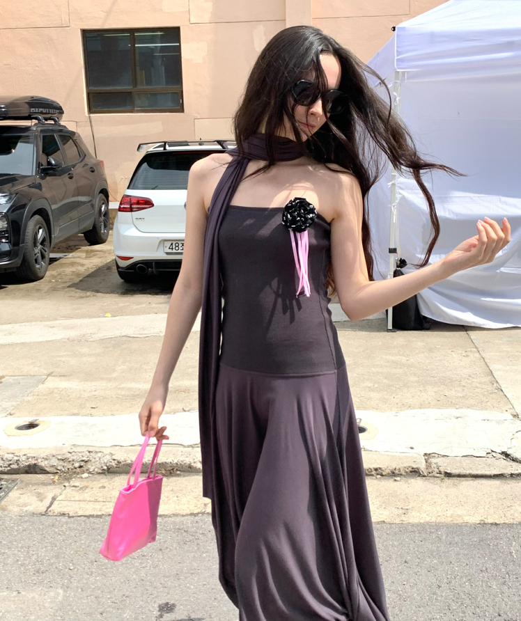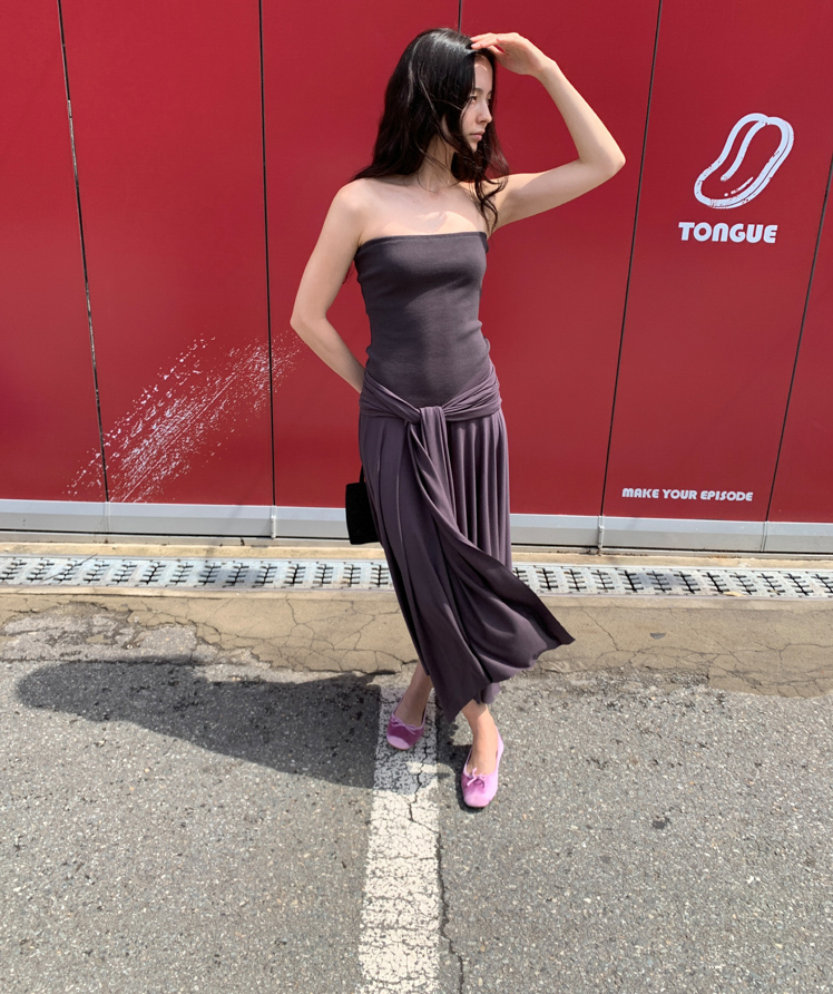 Elastic Threaded Modal Irregular Strap Bra Dress