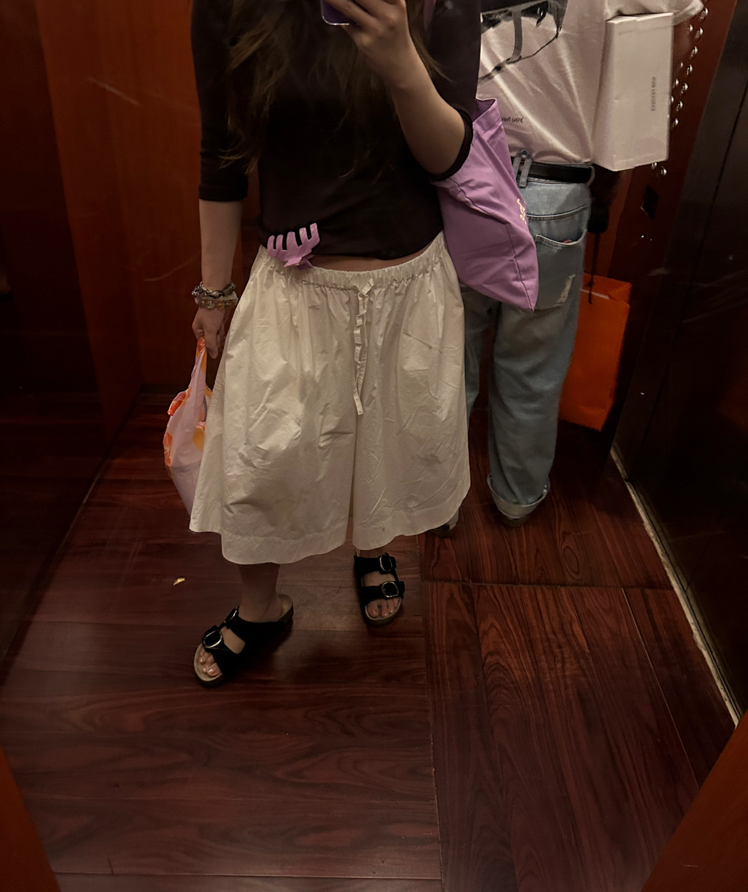 Daily Comfort Elastic Drawstring Wide Leg Five-Part Skirt Pants
