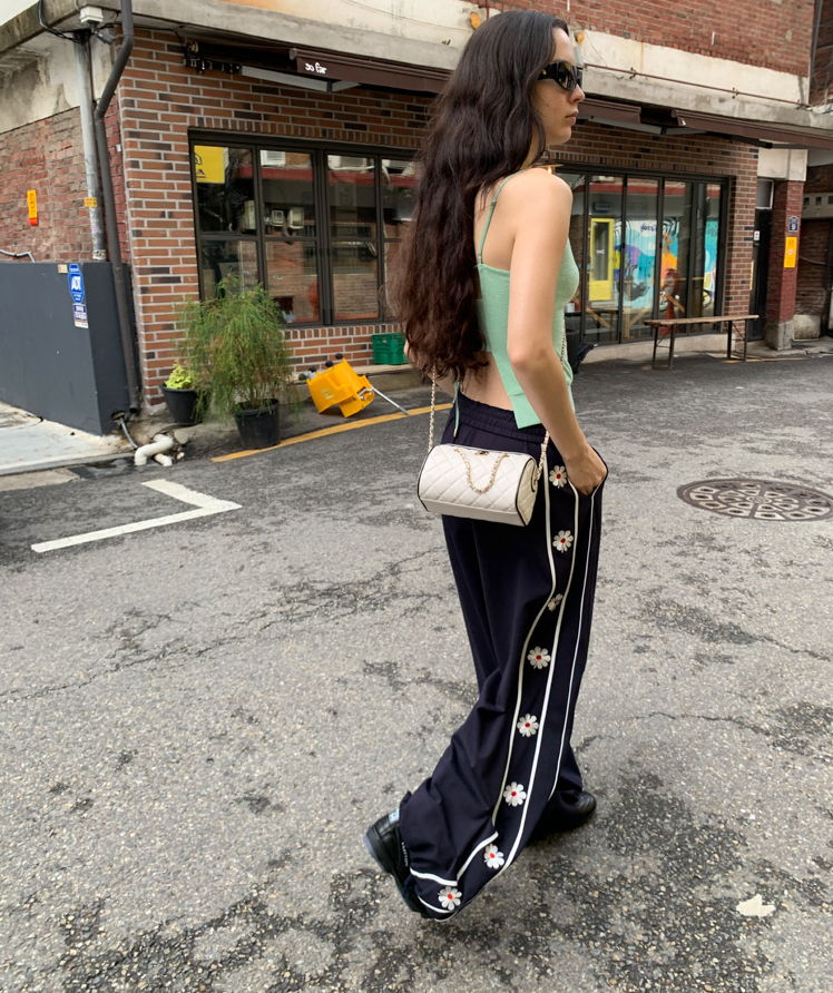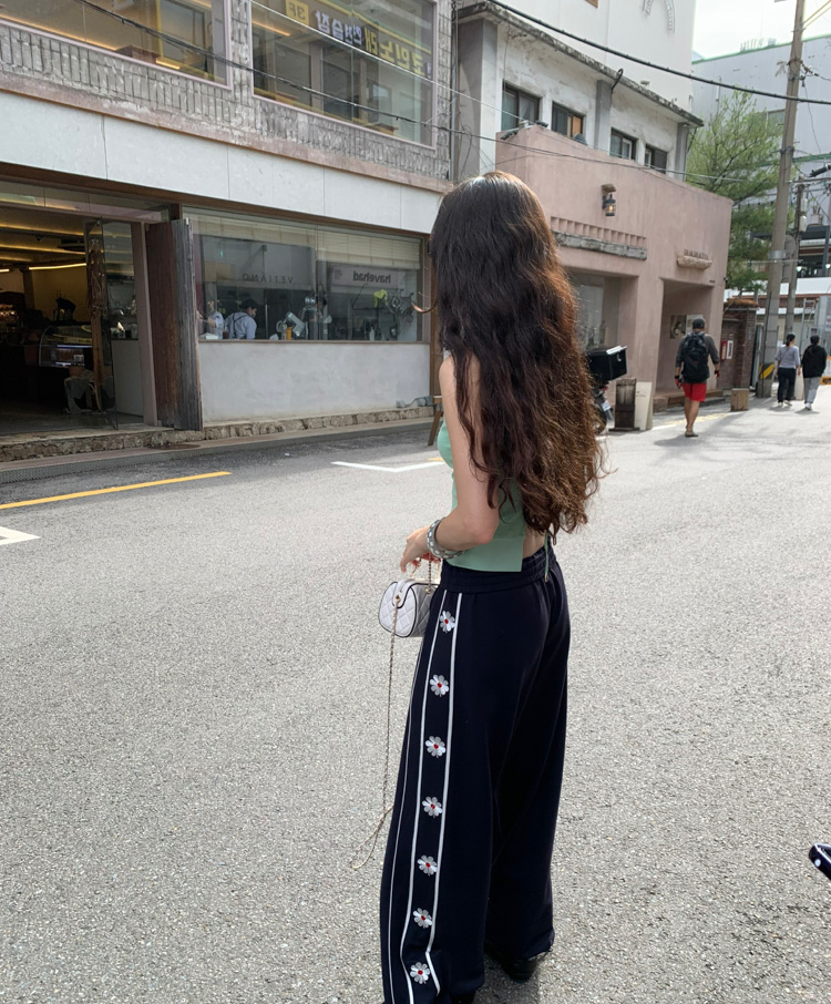 Flower Embroidered Bright Thread High Weight Long Pants