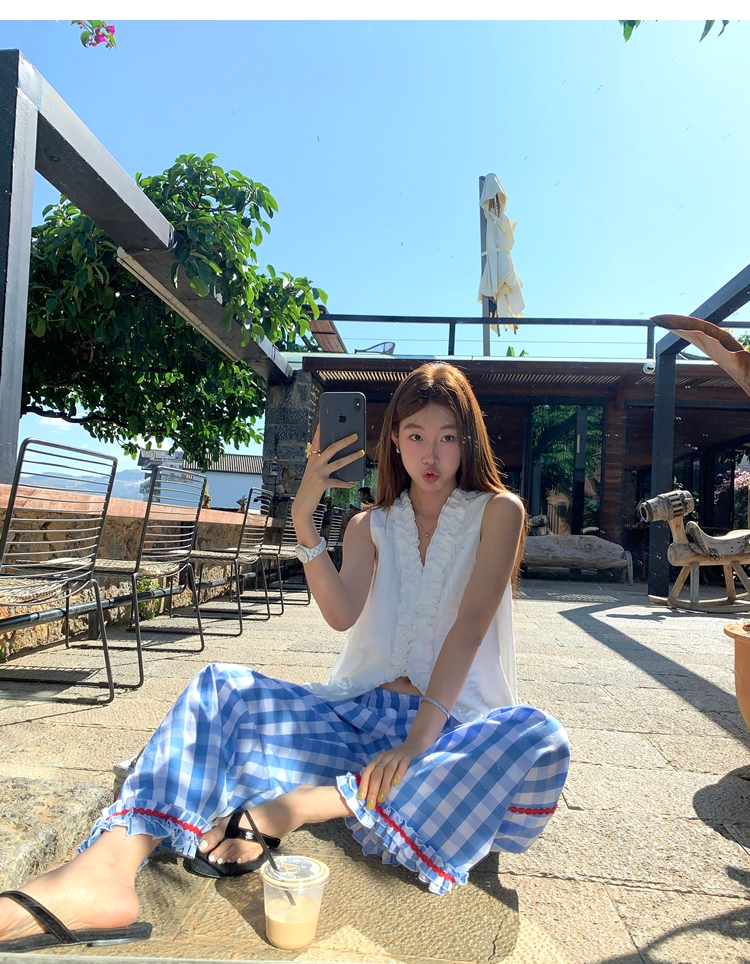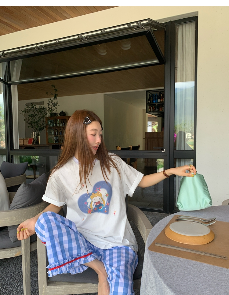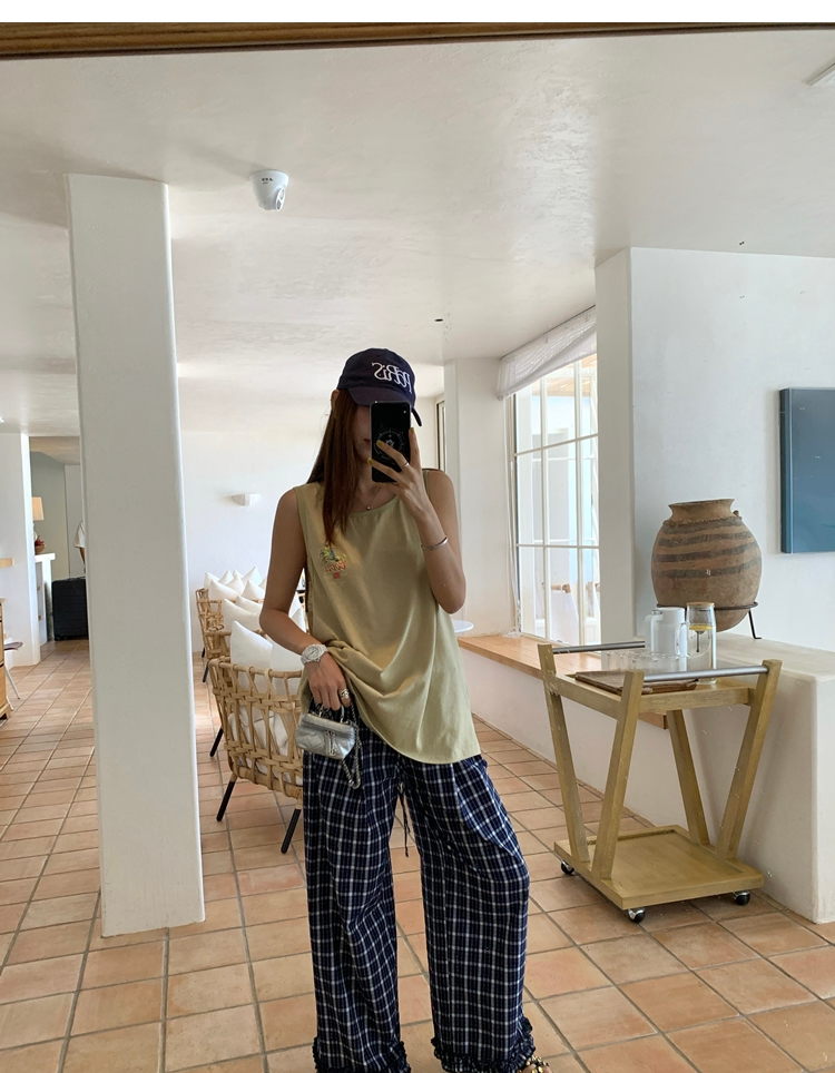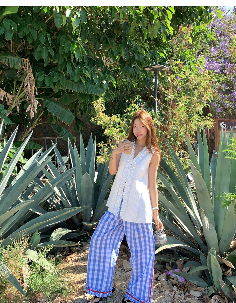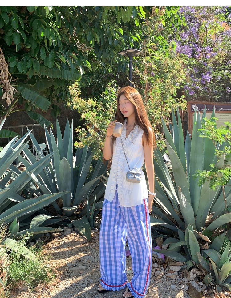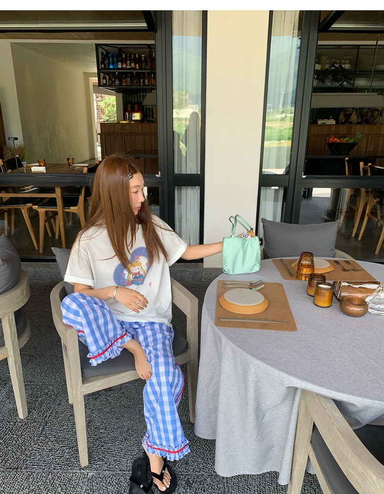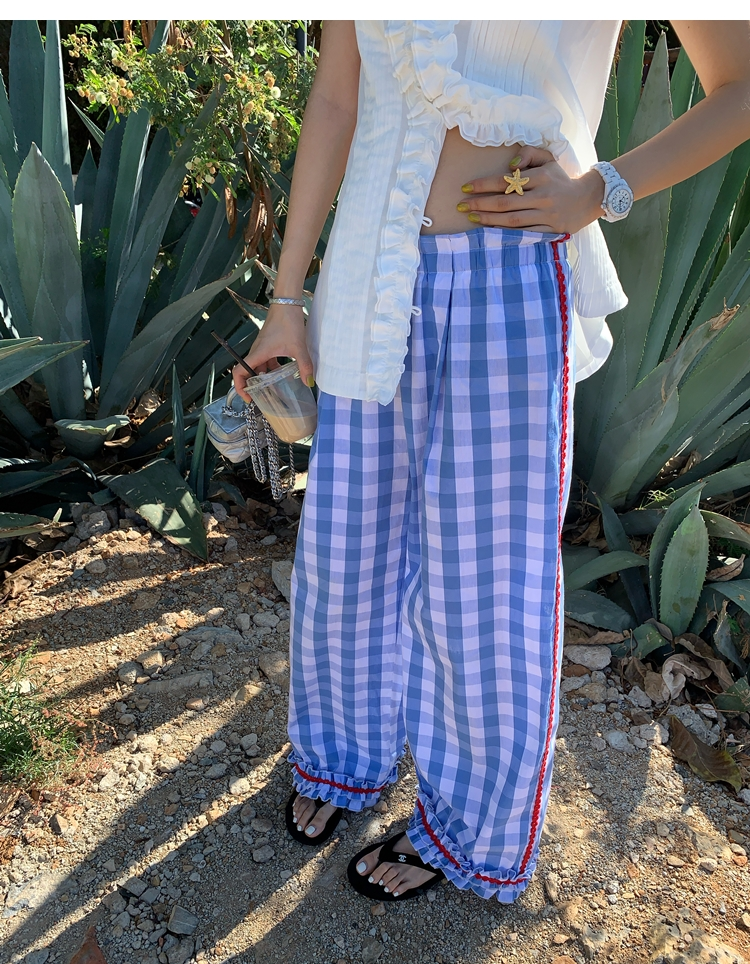 Soda Japanese Sweet Checked Floral Relaxed Wide Leg Pants