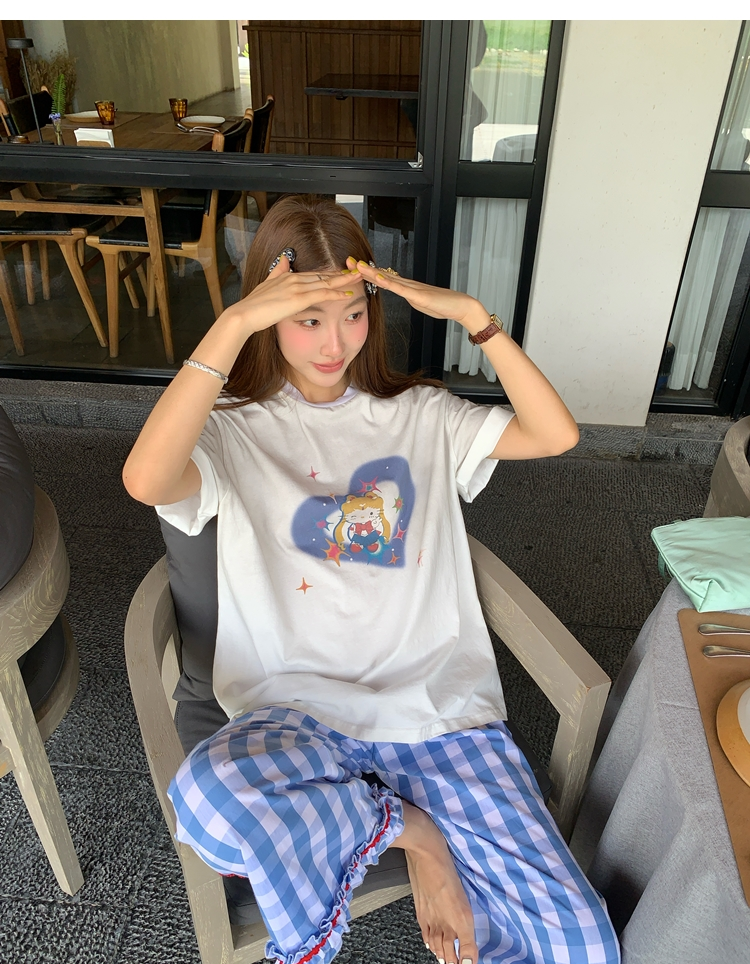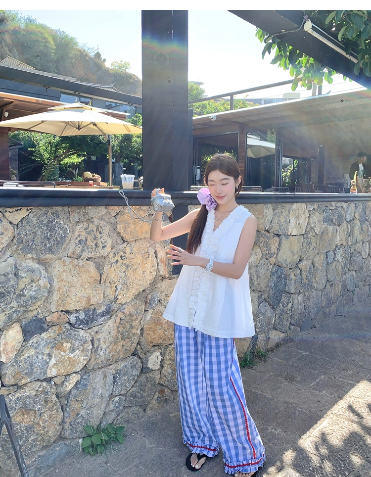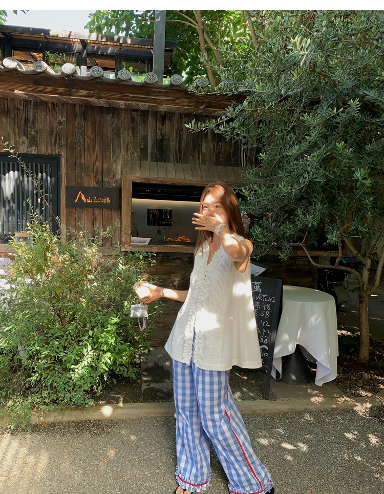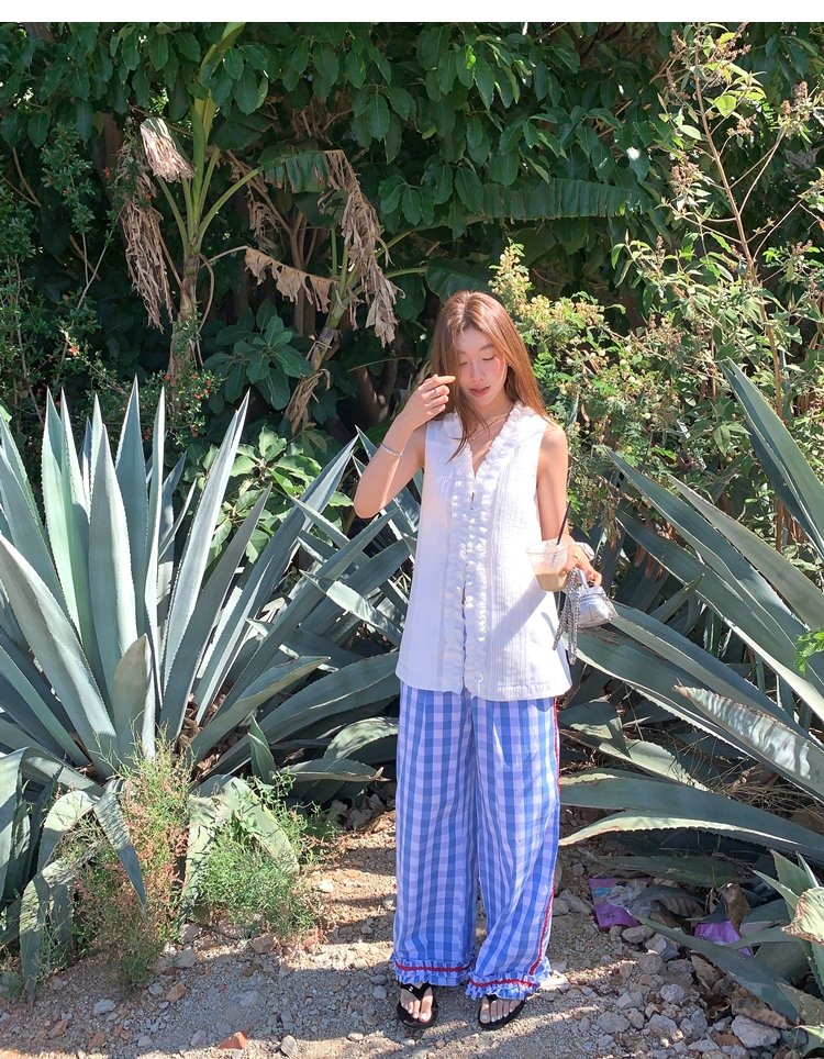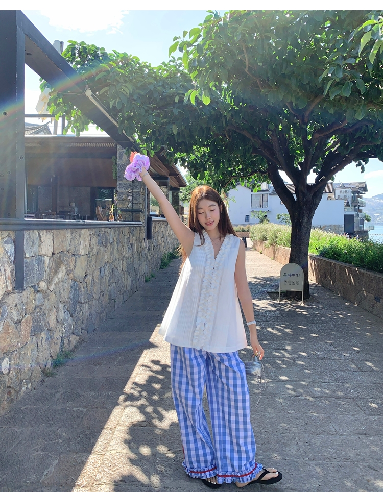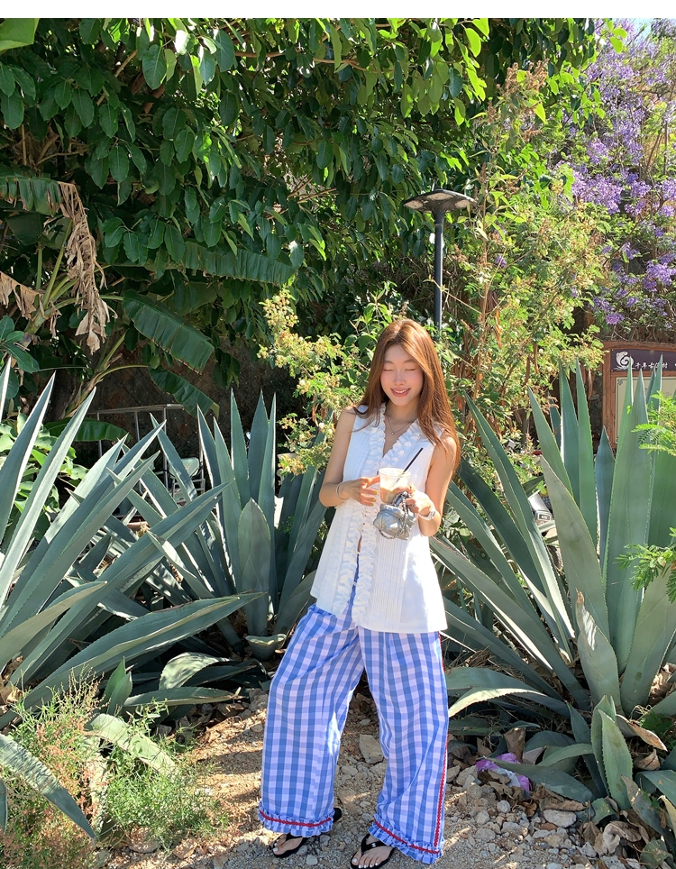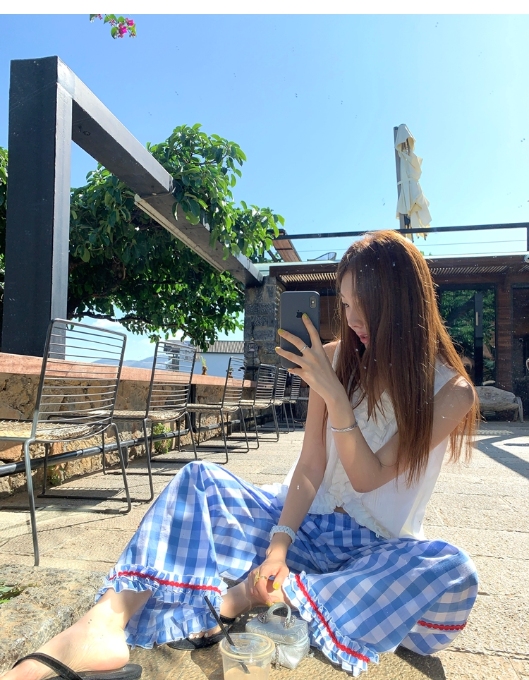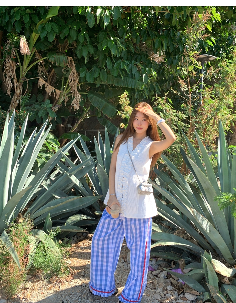 Soda Japanese Sweet Checked Floral Relaxed Wide Leg Pants