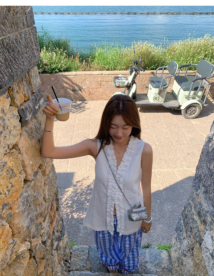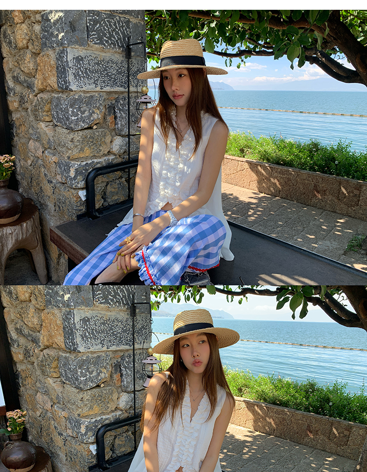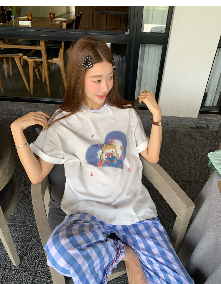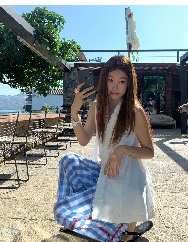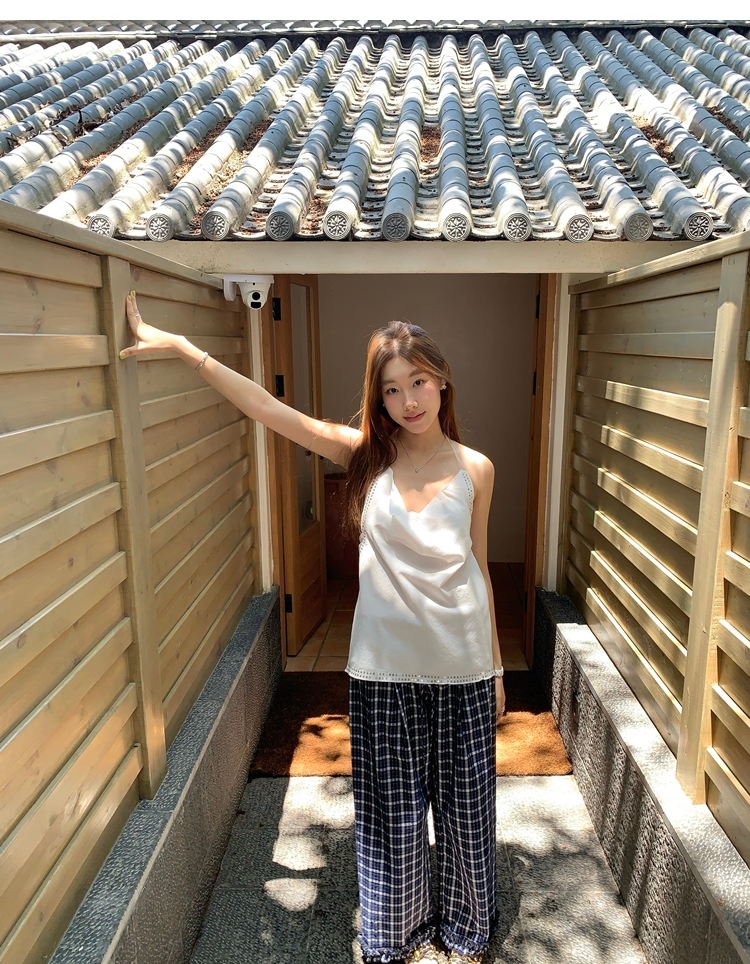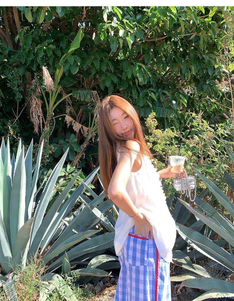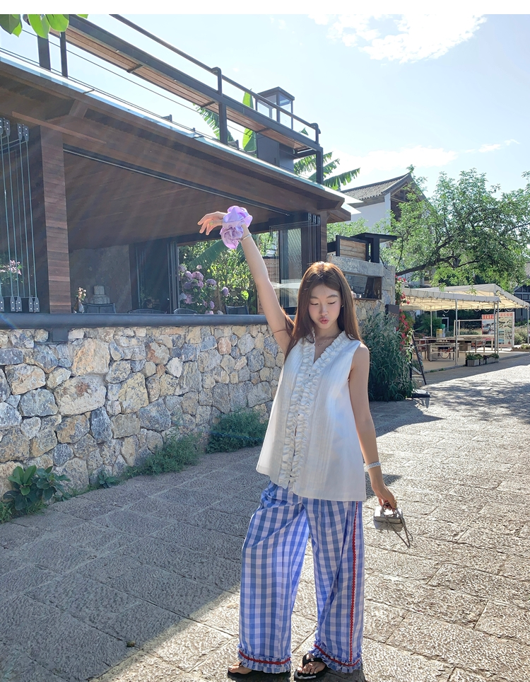 Soda Japanese Sweet Checked Floral Relaxed Wide Leg Pants
