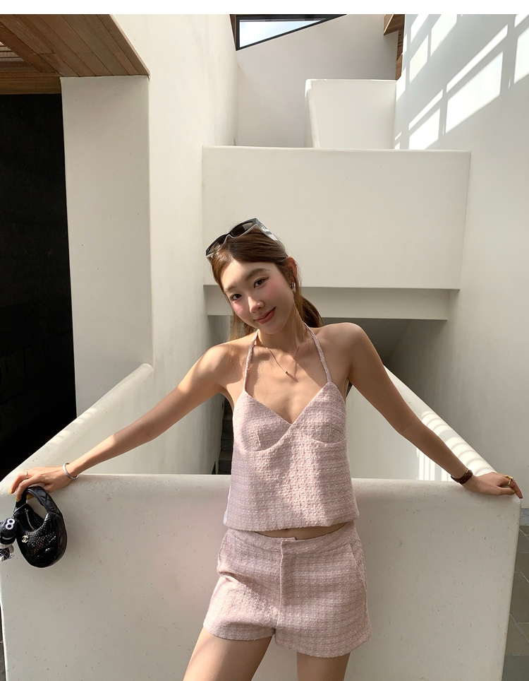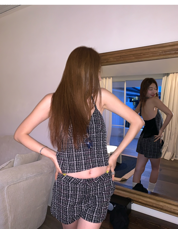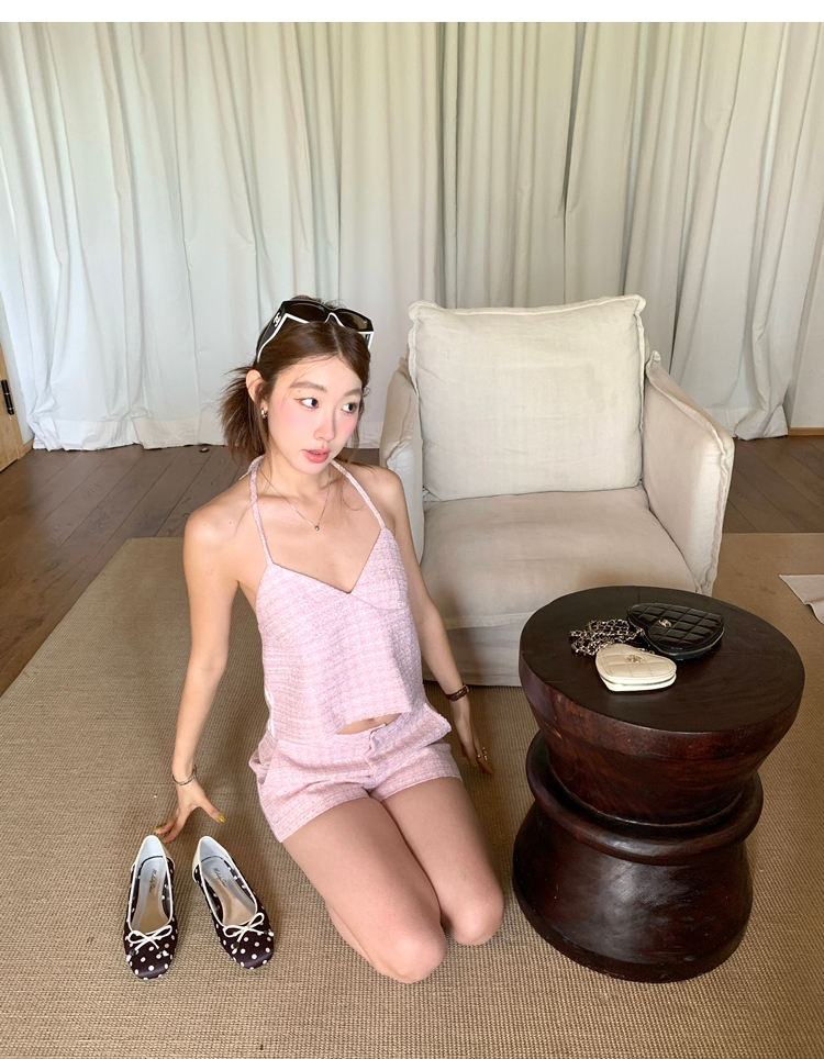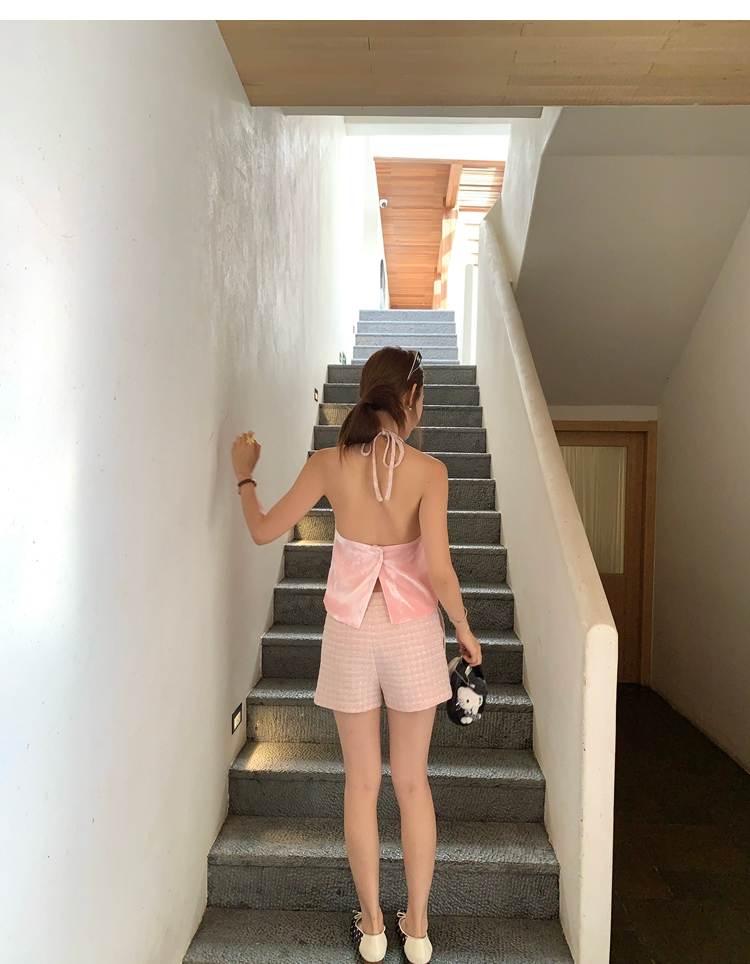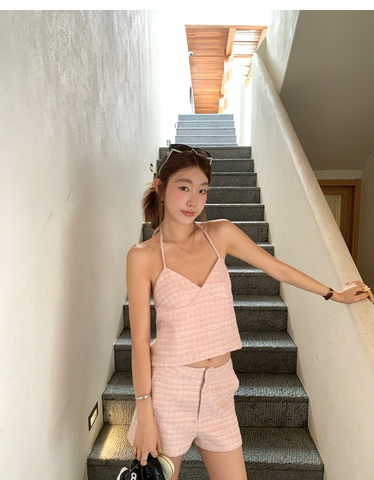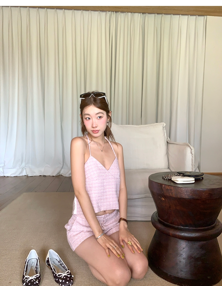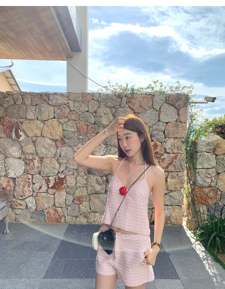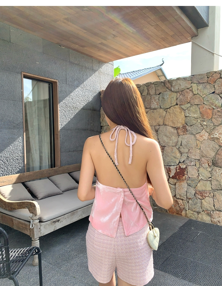 Sparkling Flourish Velvet Neck Strap Backless Top Shorts Set
