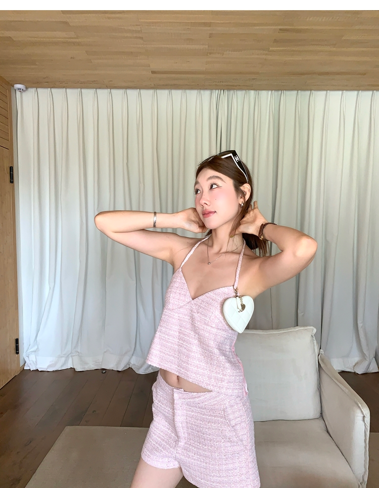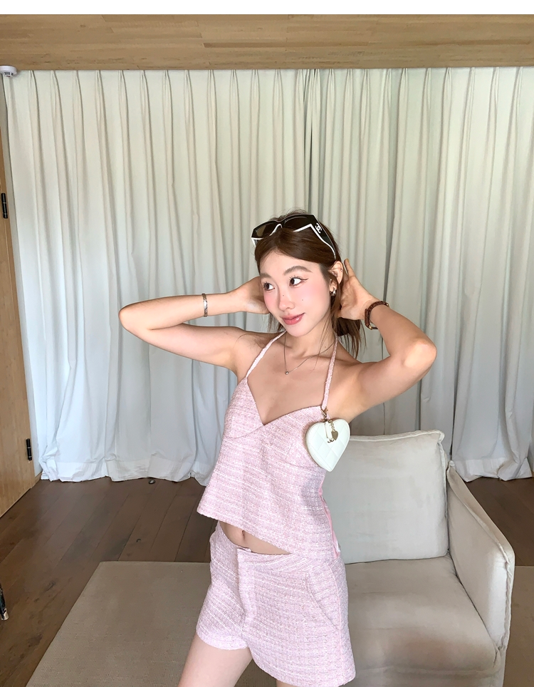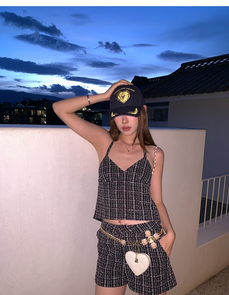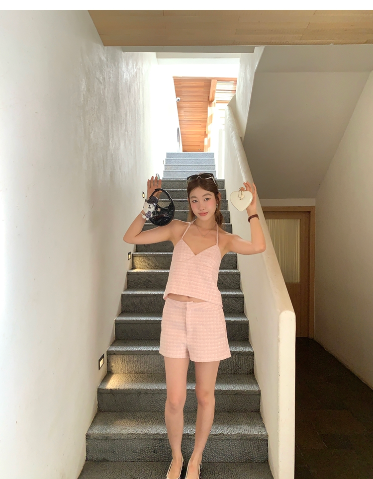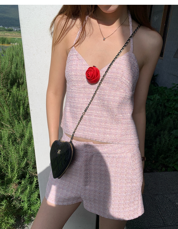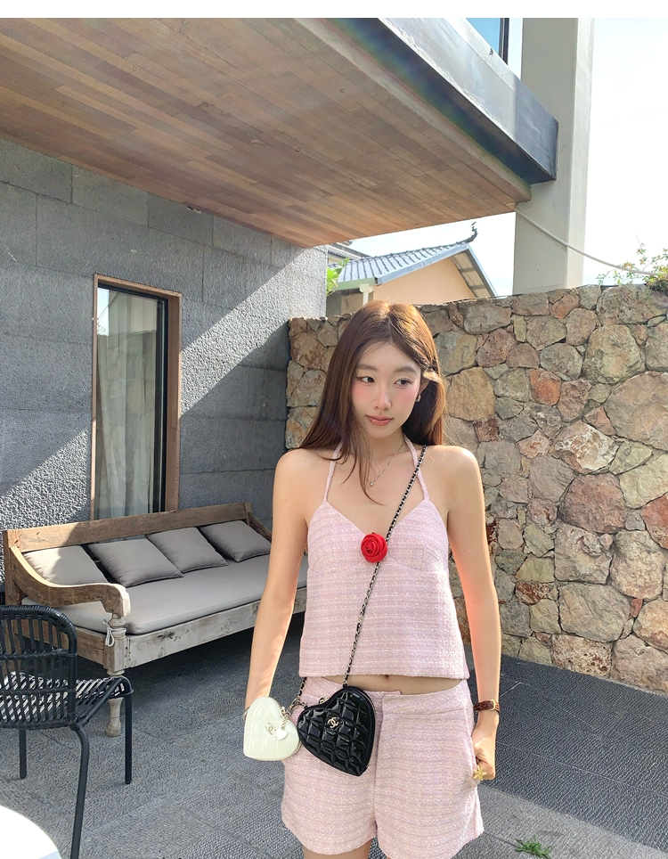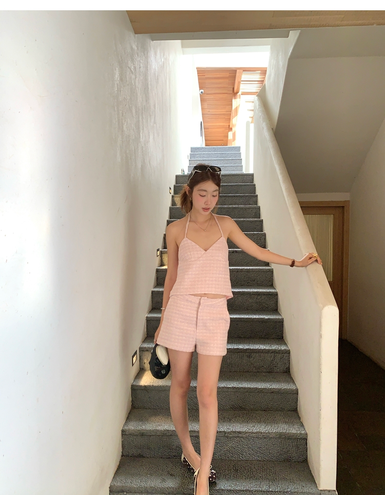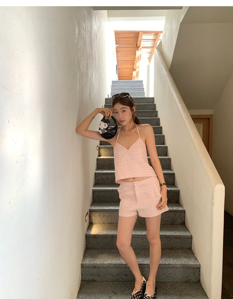 Sparkling Flourish Velvet Neck Strap Backless Top Shorts Set
