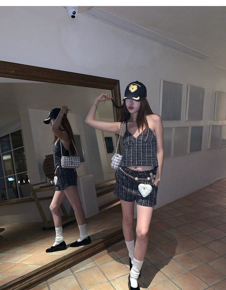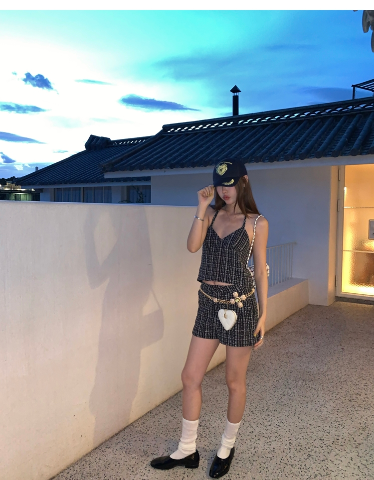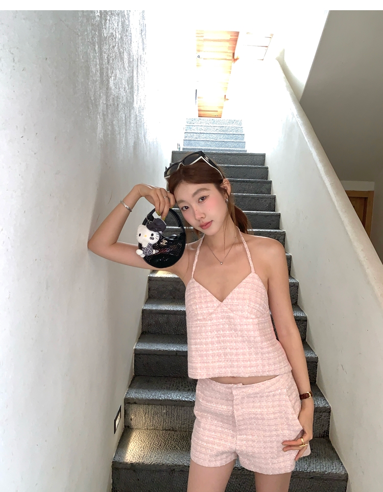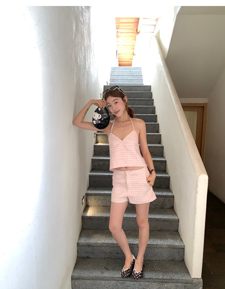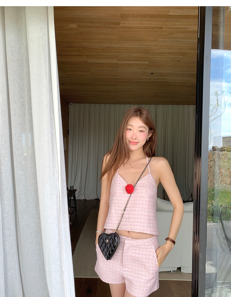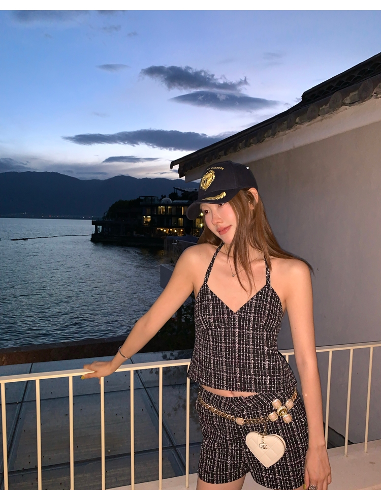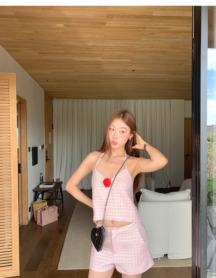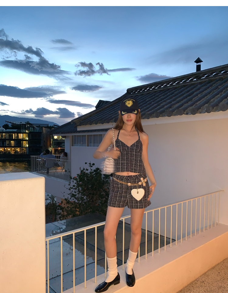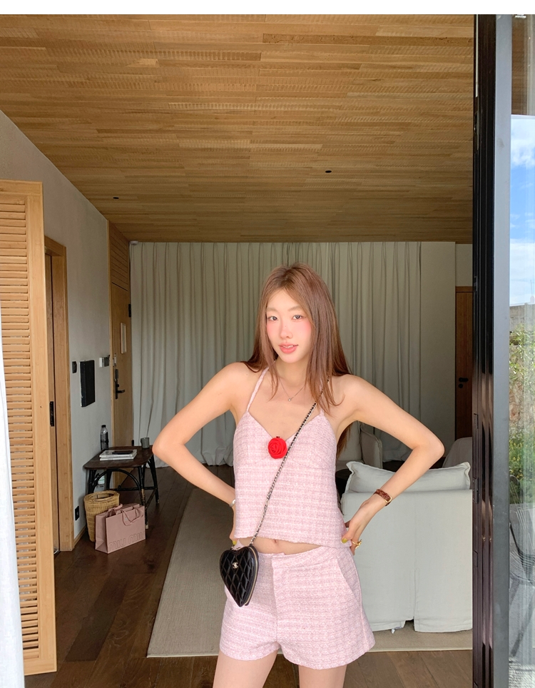 Sparkling Flourish Velvet Neck Strap Backless Top Shorts Set