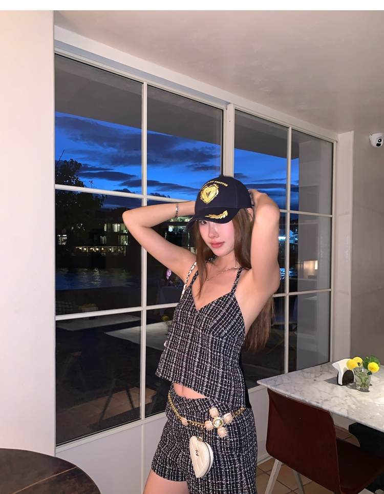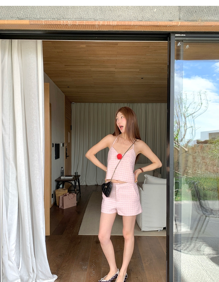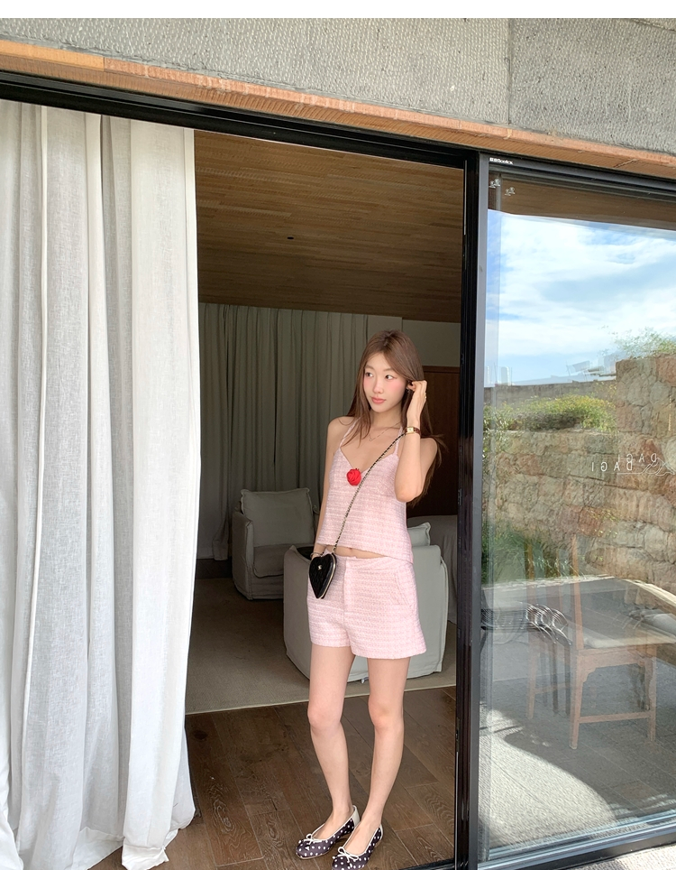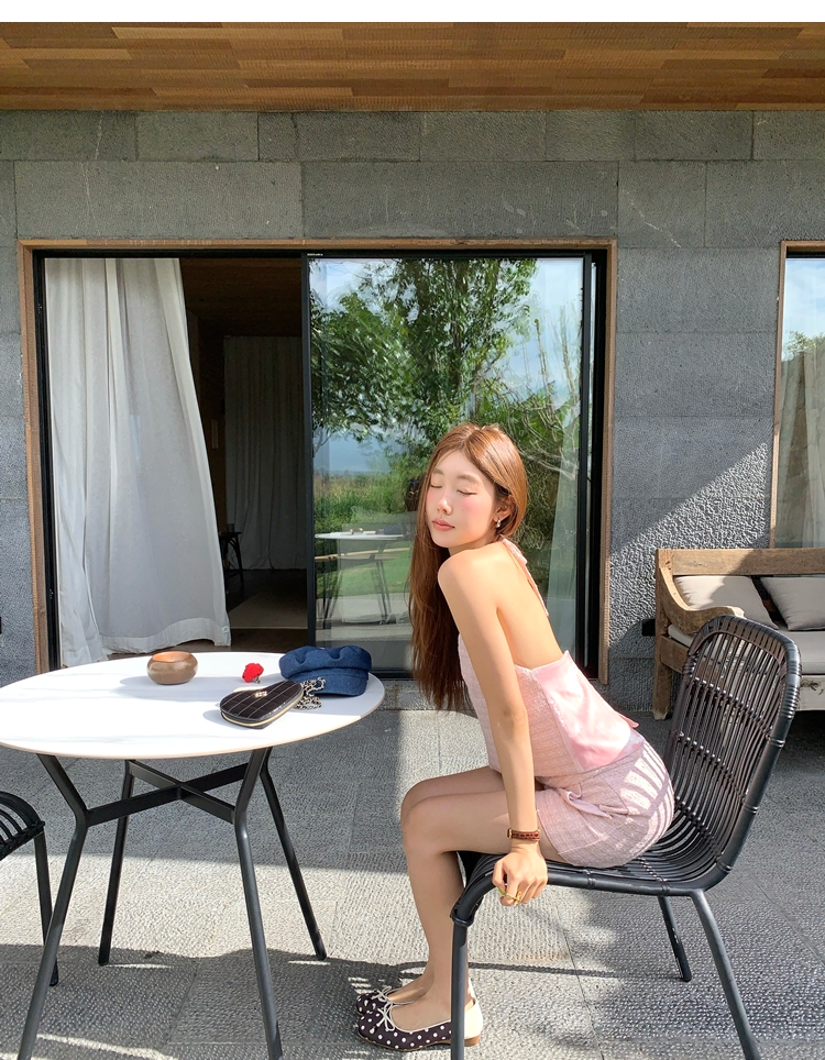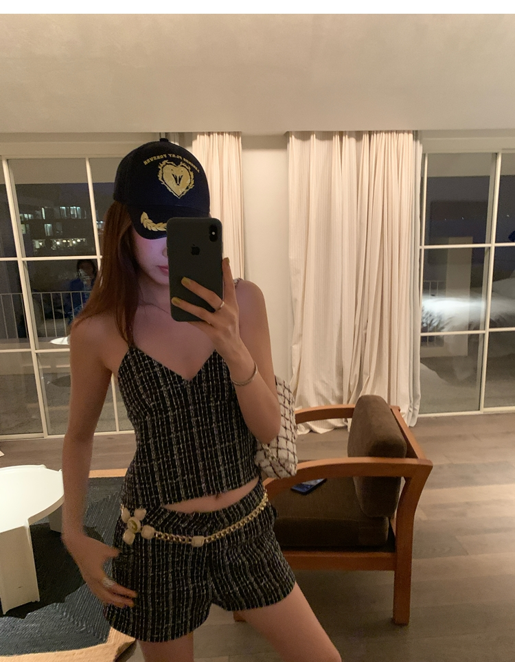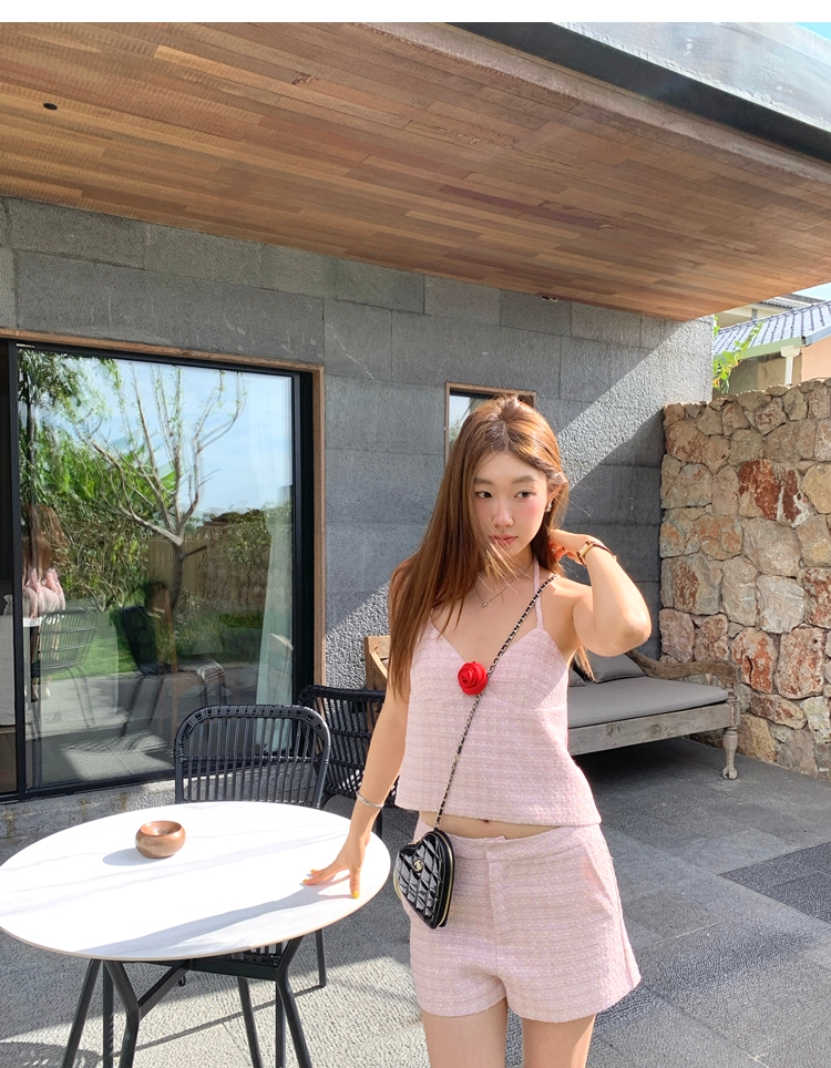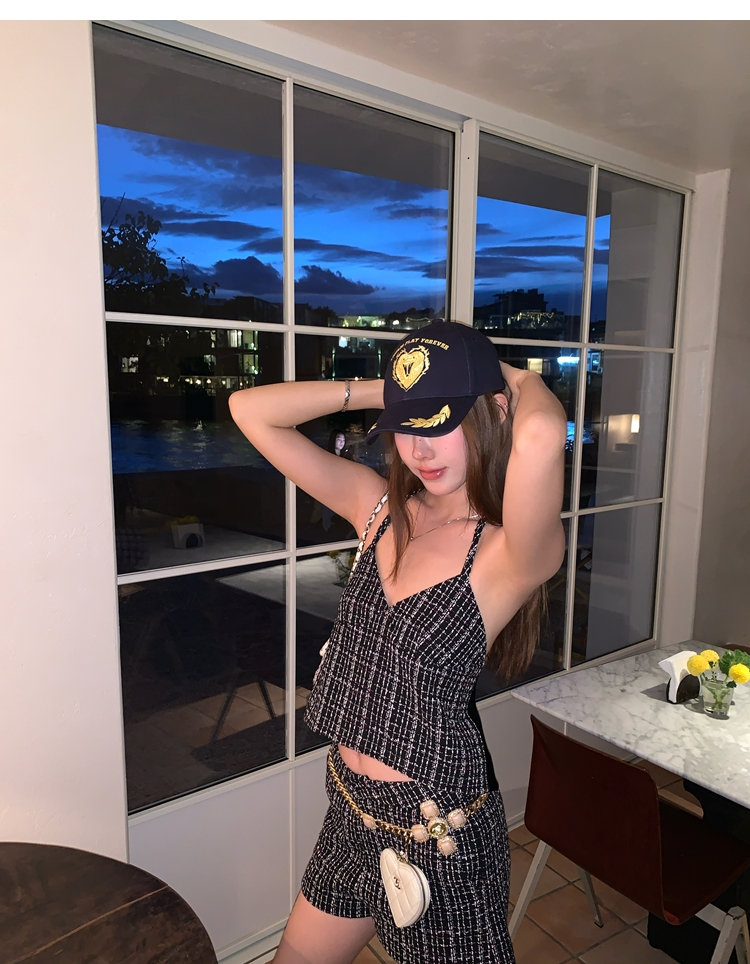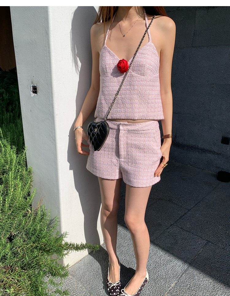 Sparkling Flourish Velvet Neck Strap Backless Top Shorts Set