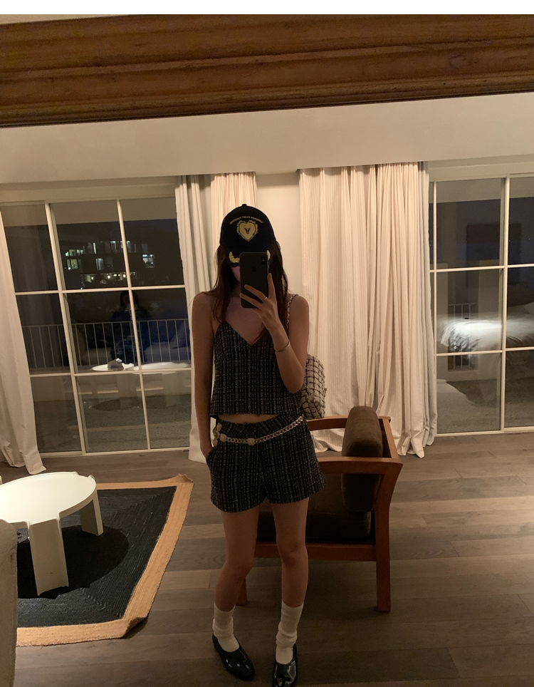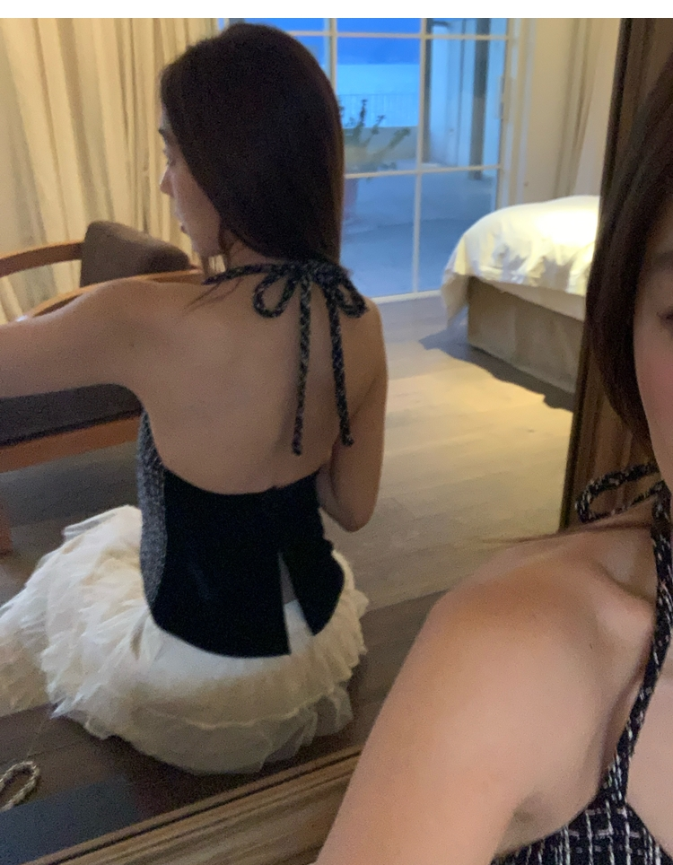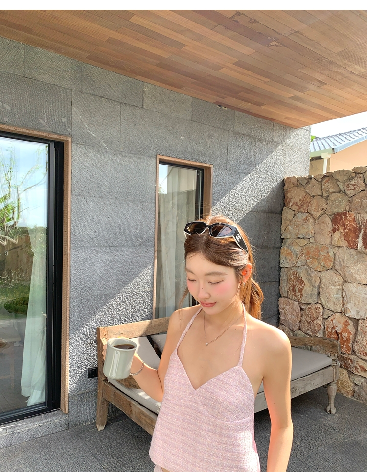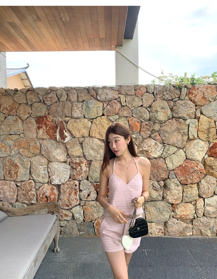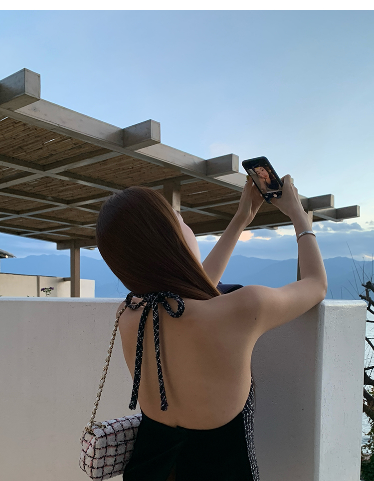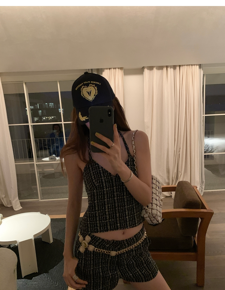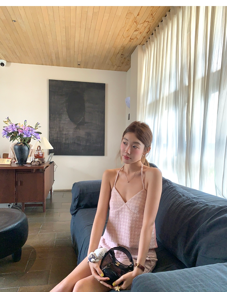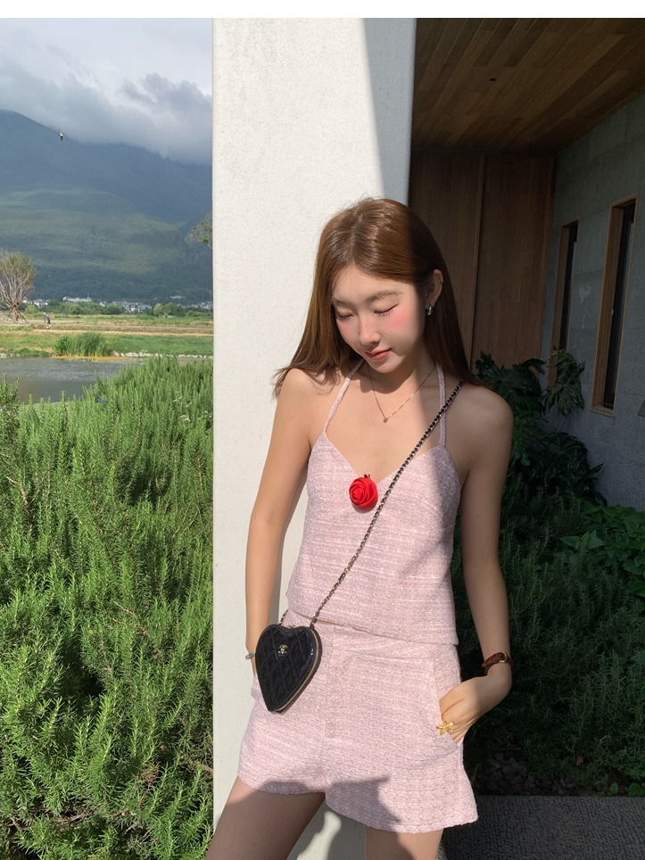 Sparkling Flourish Velvet Neck Strap Backless Top Shorts Set
