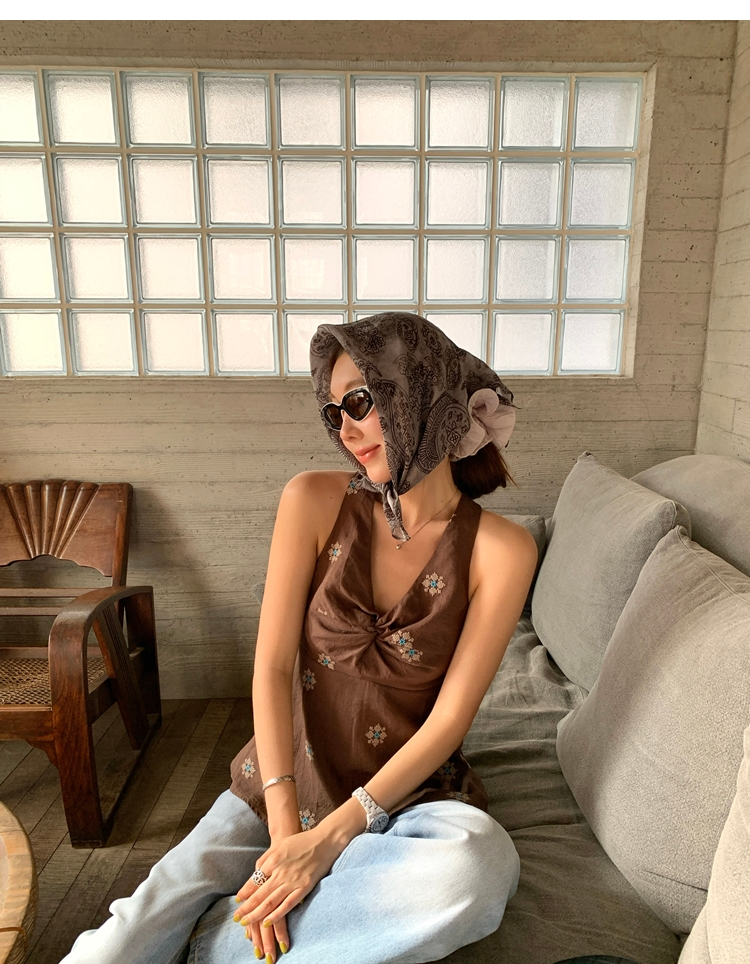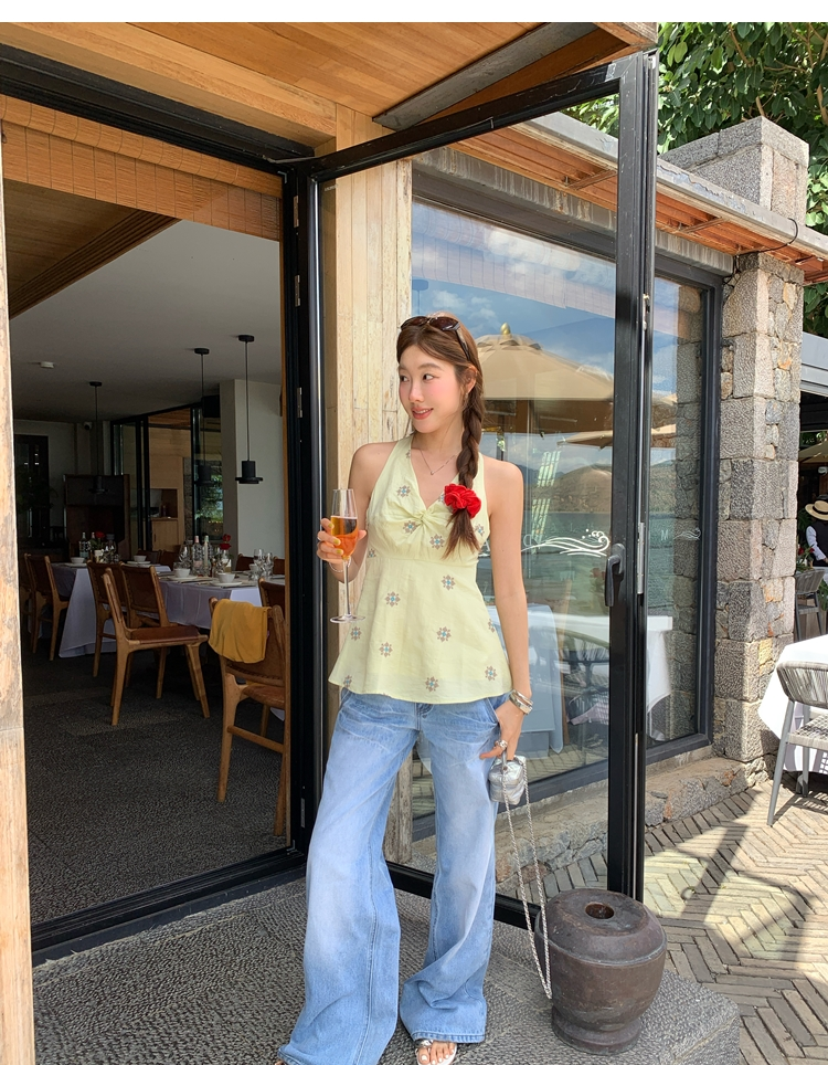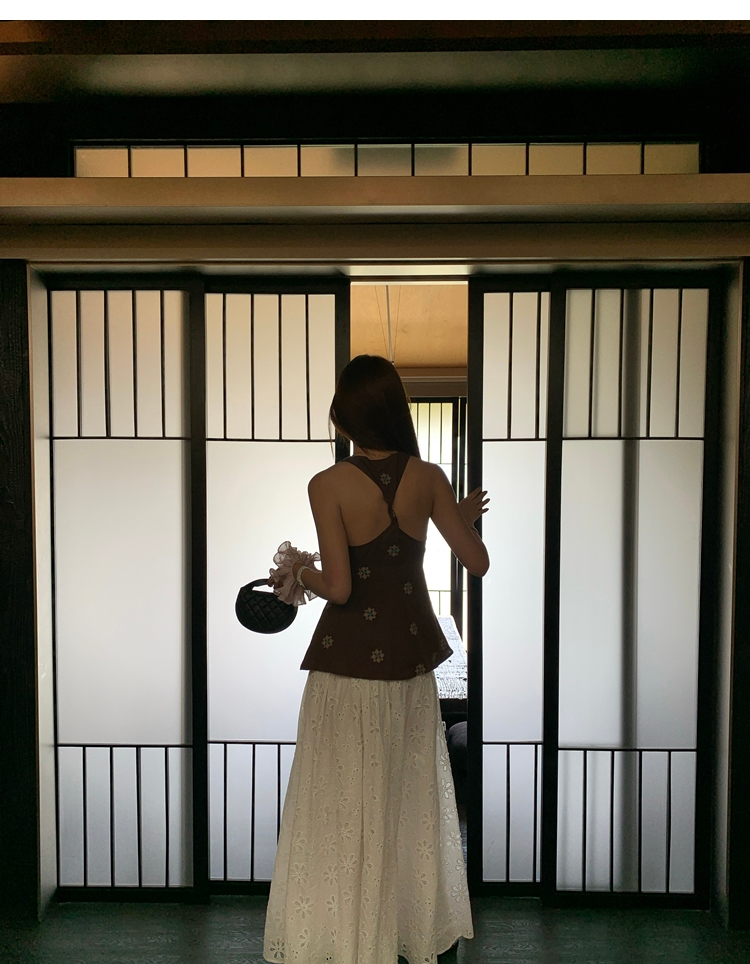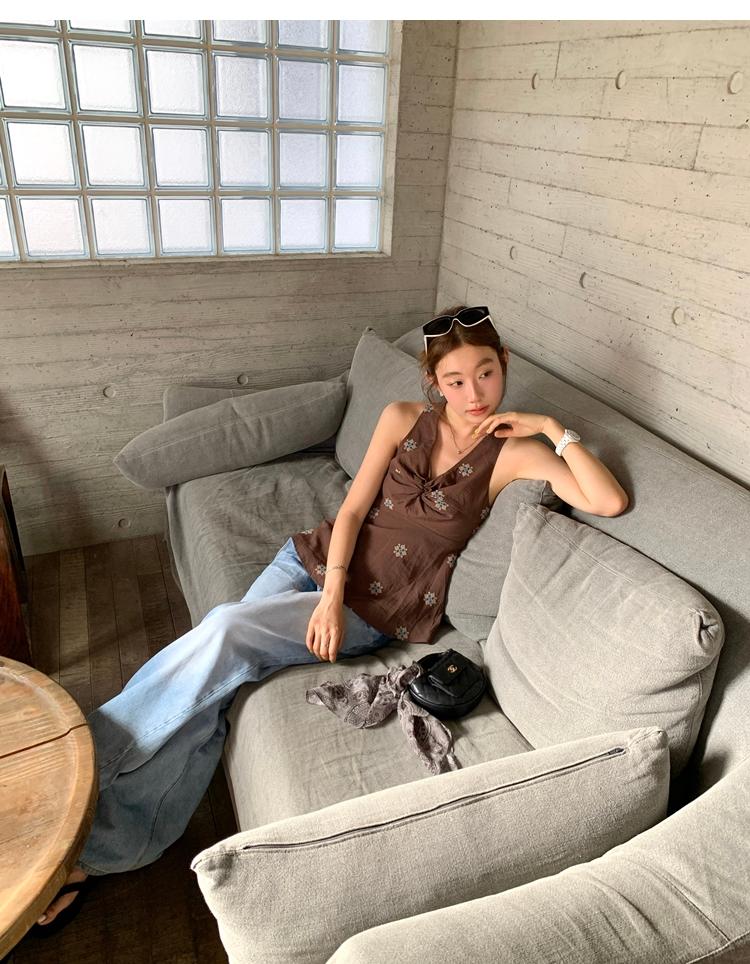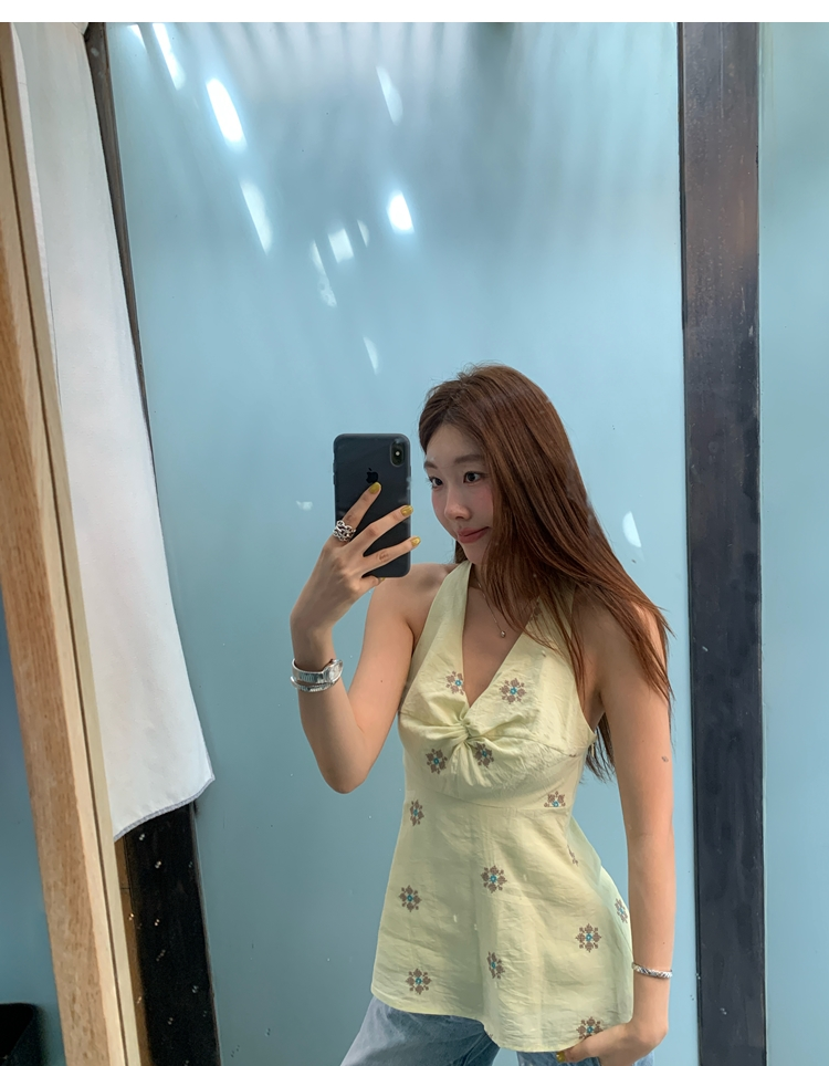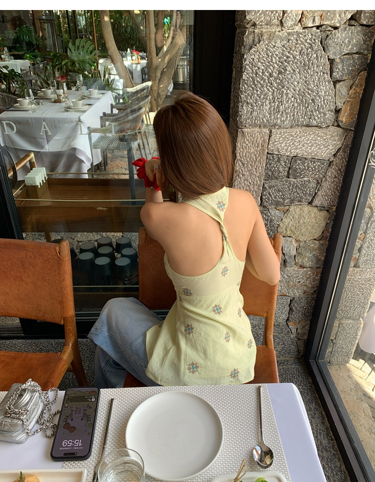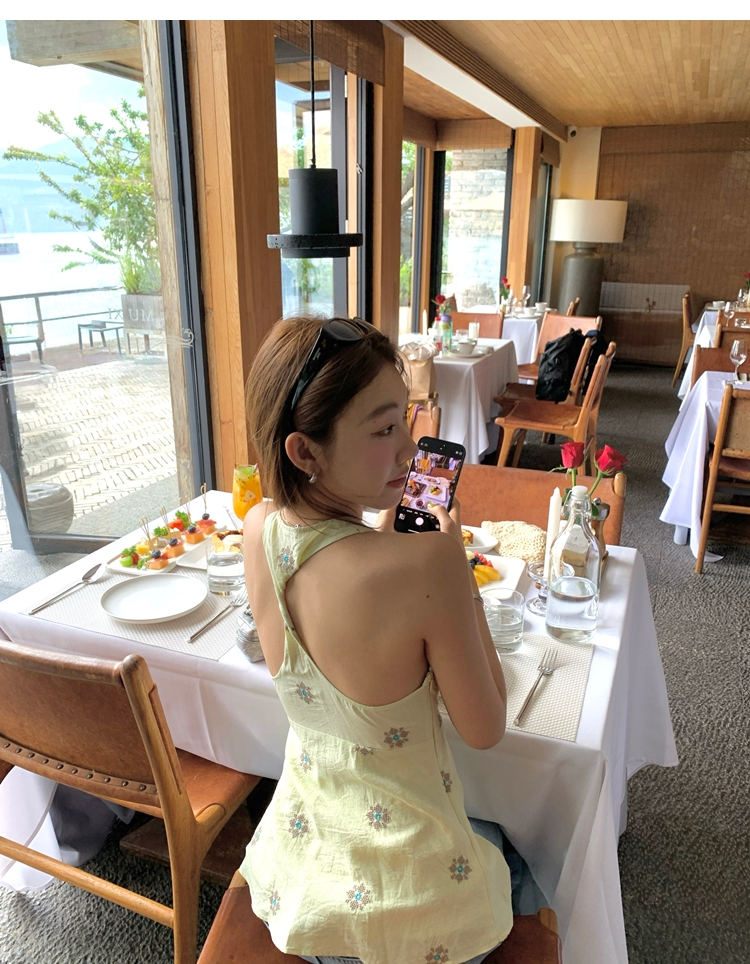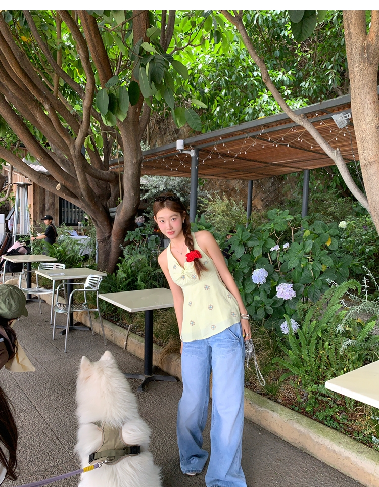 Silk Embroidery Sweet V-neck Twisted Necklace Sleeveless Tank Top