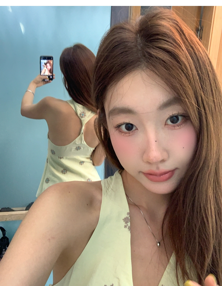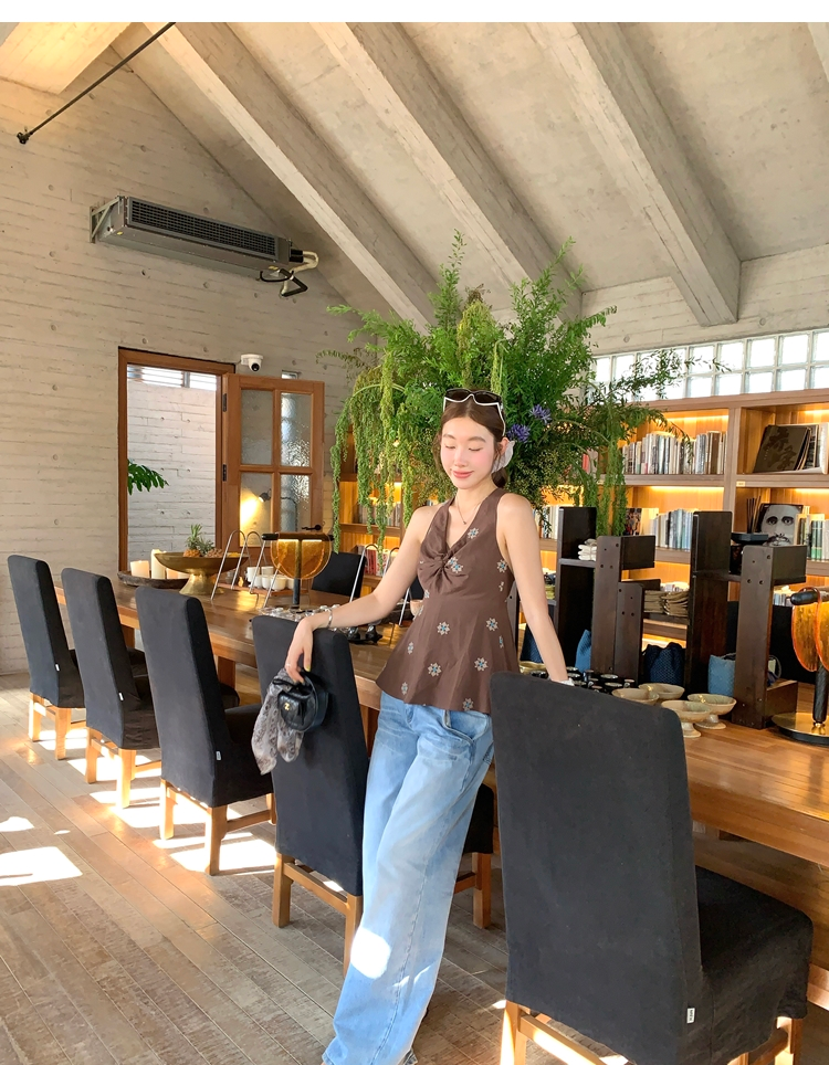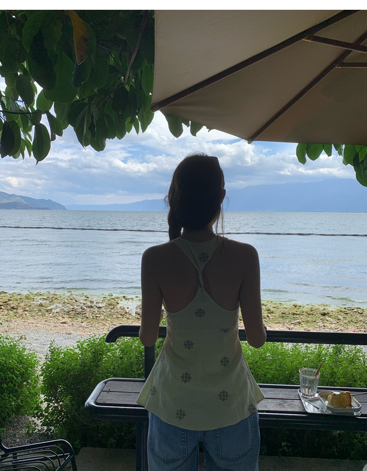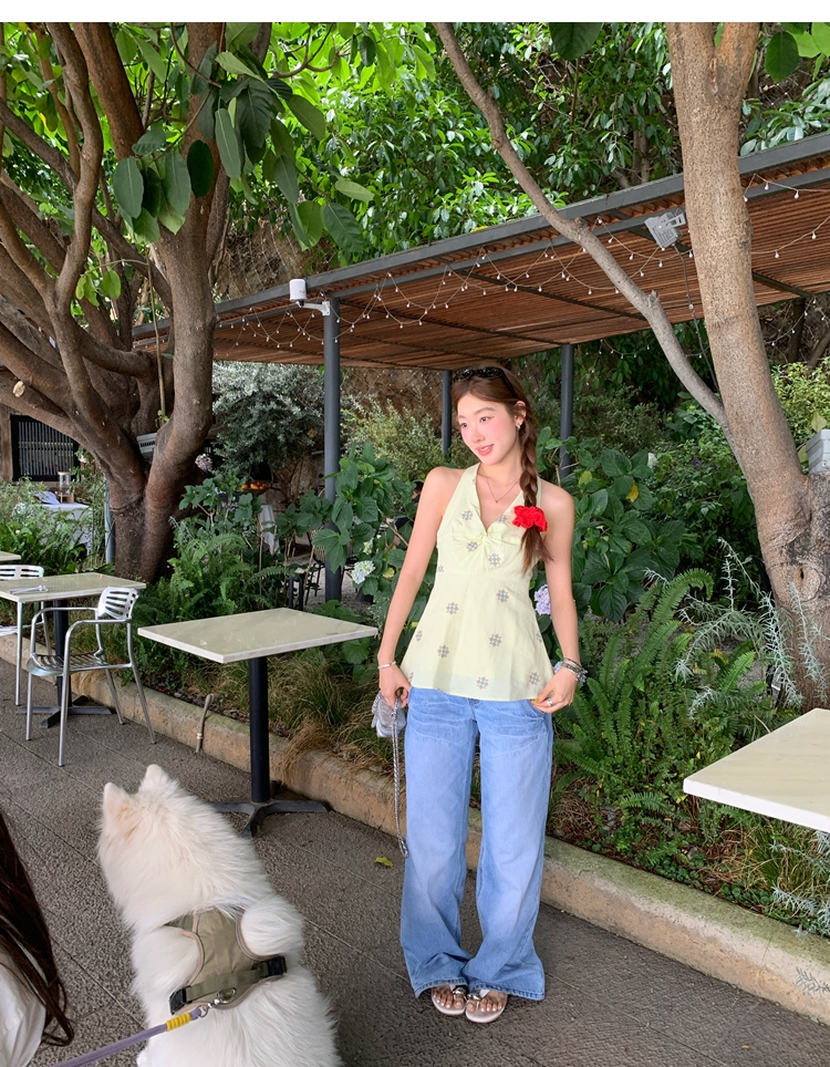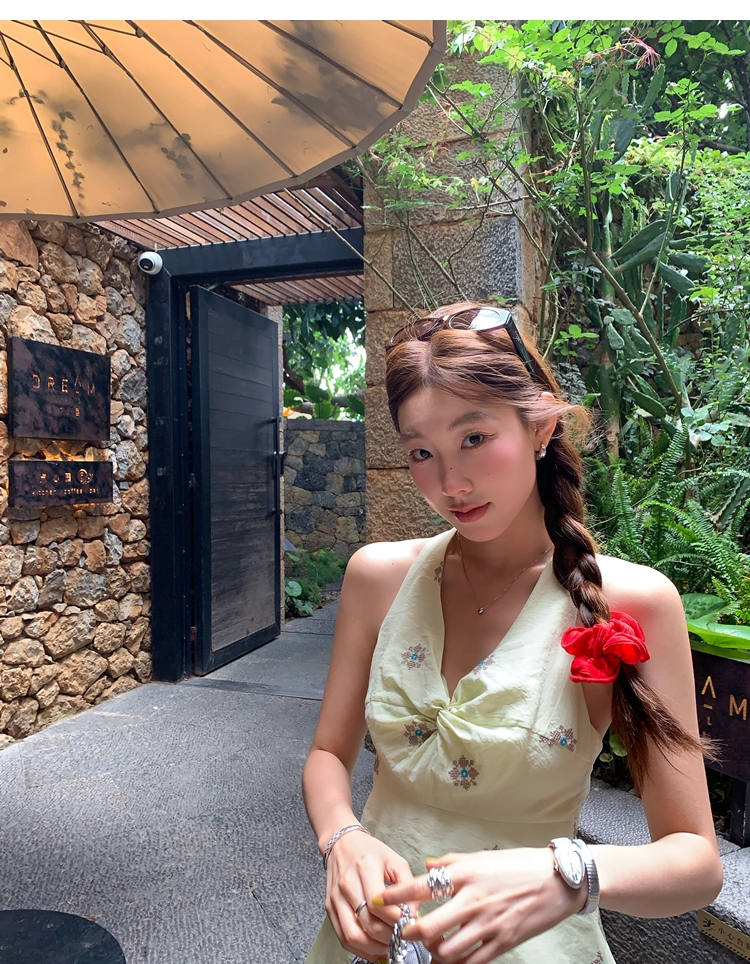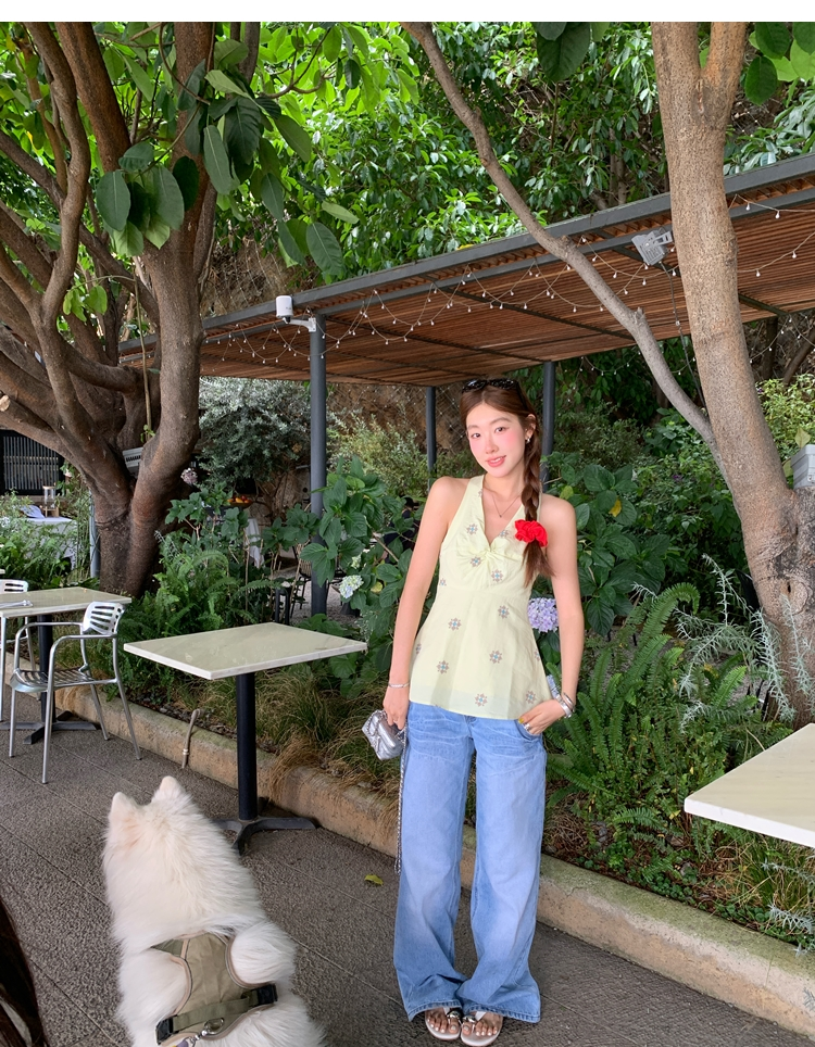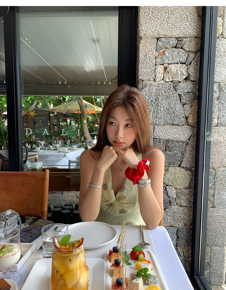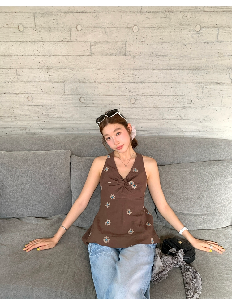 Silk Embroidery Sweet V-neck Twisted Necklace Sleeveless Tank Top