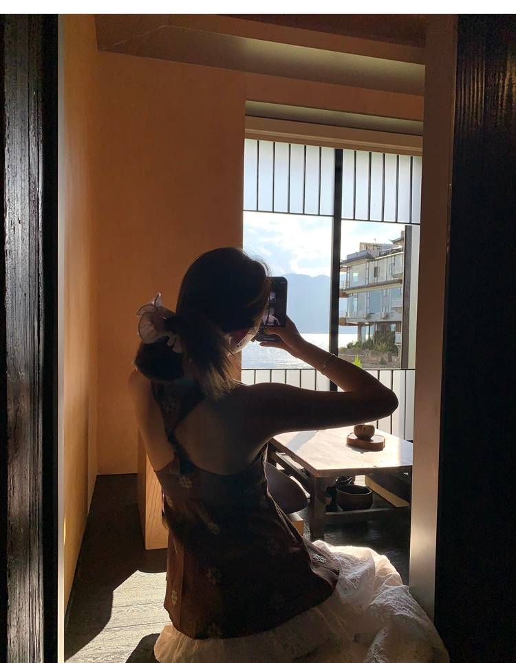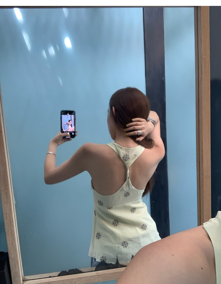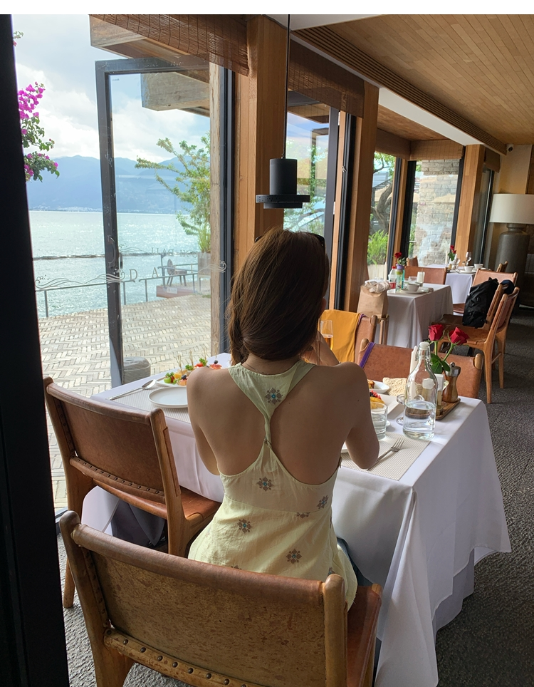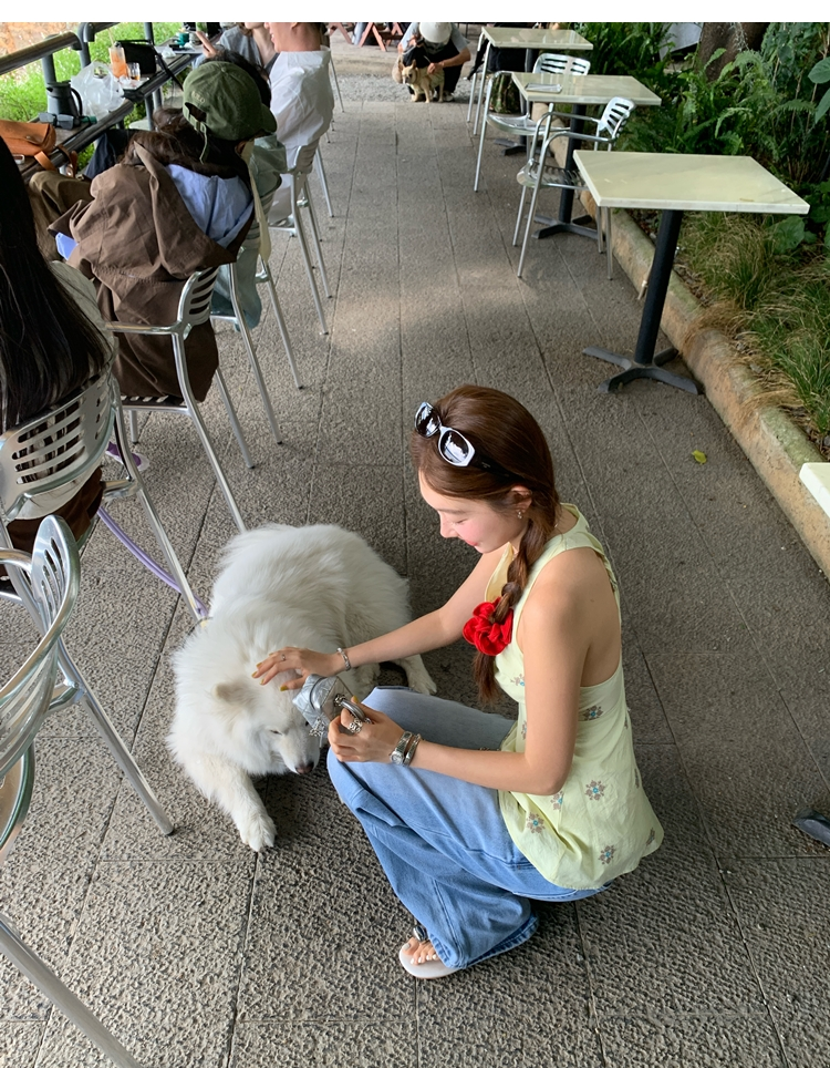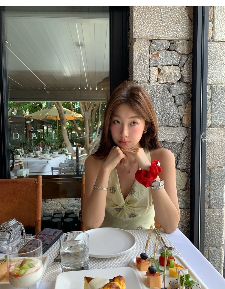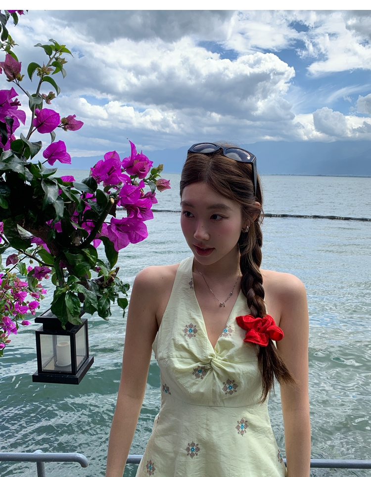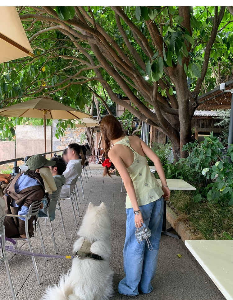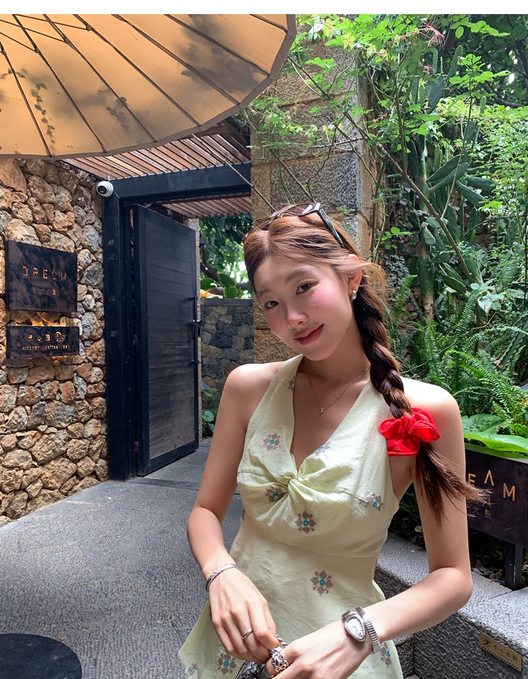 Silk Embroidery Sweet V-neck Twisted Necklace Sleeveless Tank Top