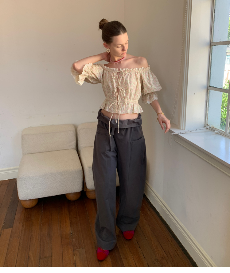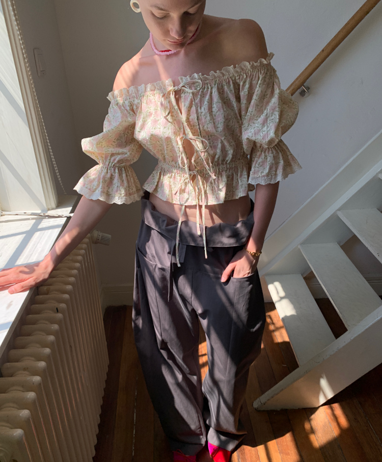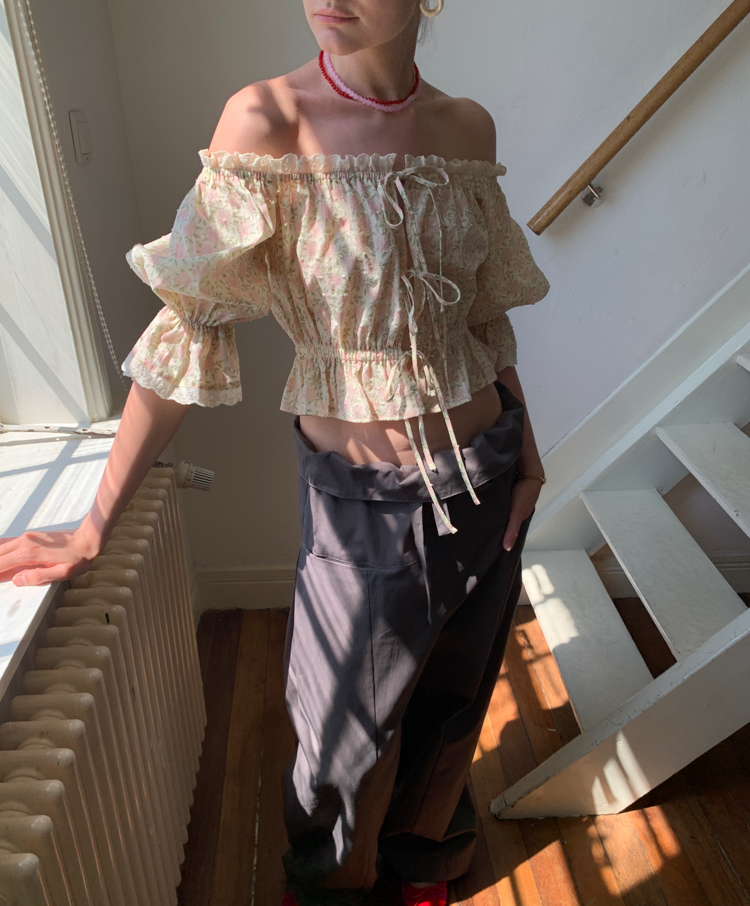 Lace Tie-Up Half-Sleeve Set with Strap Doll Sleeves
