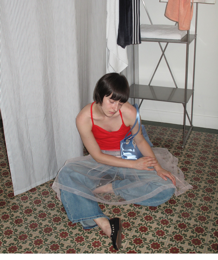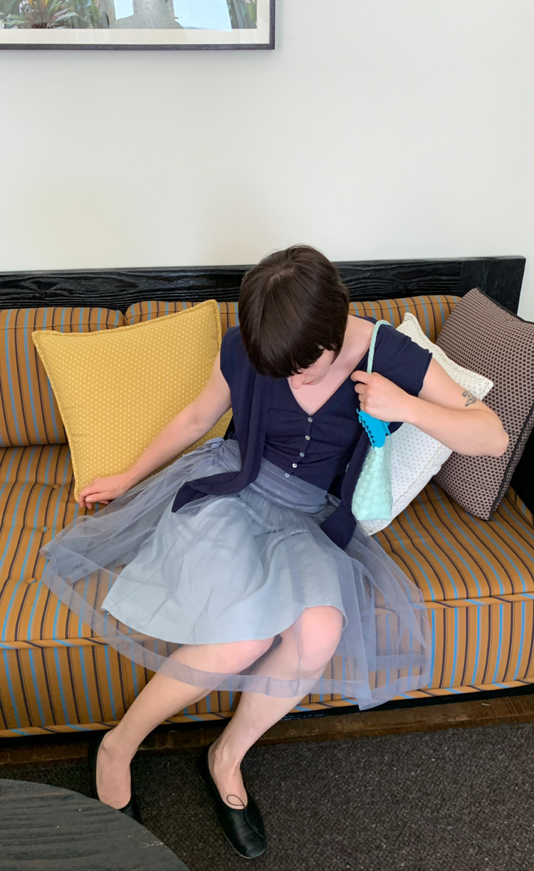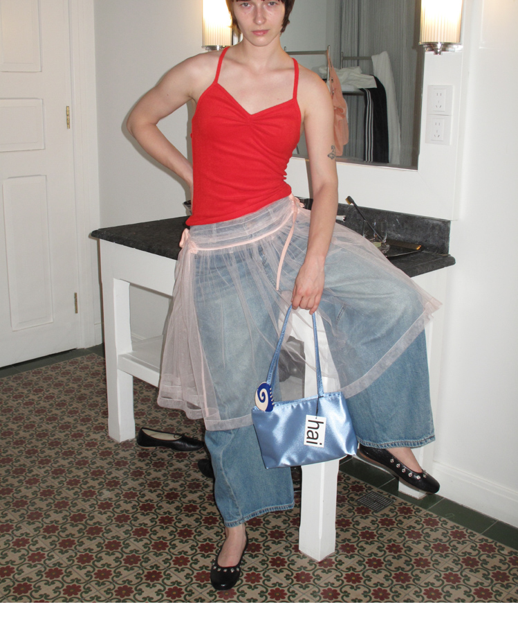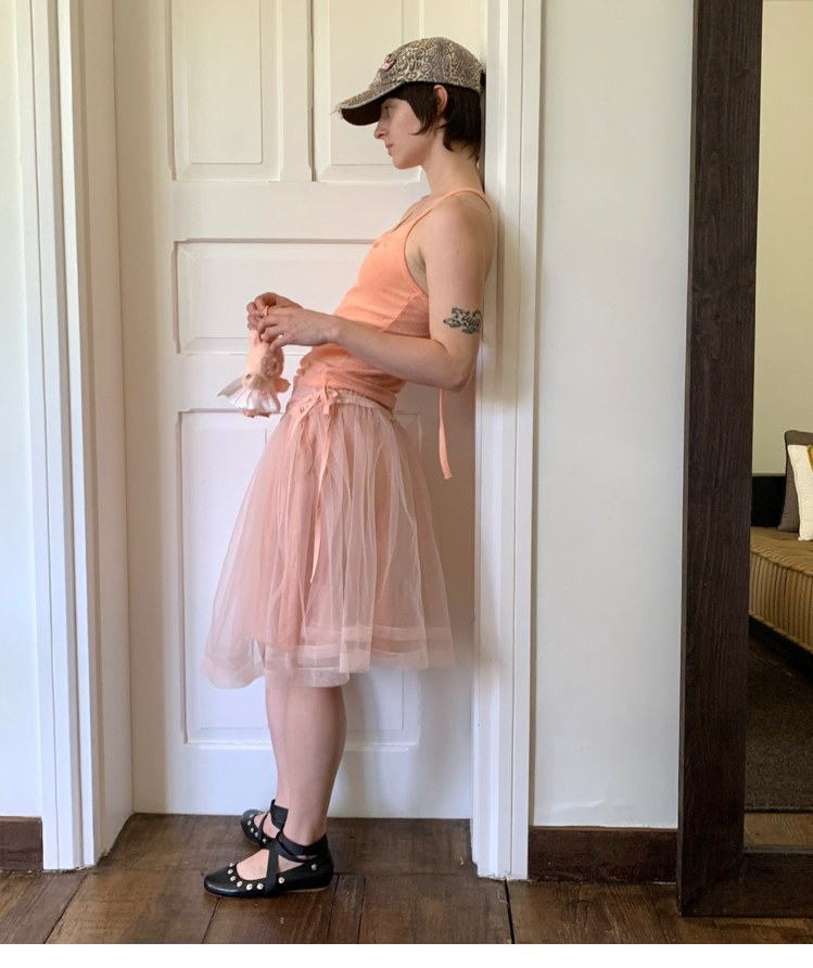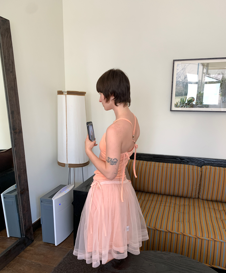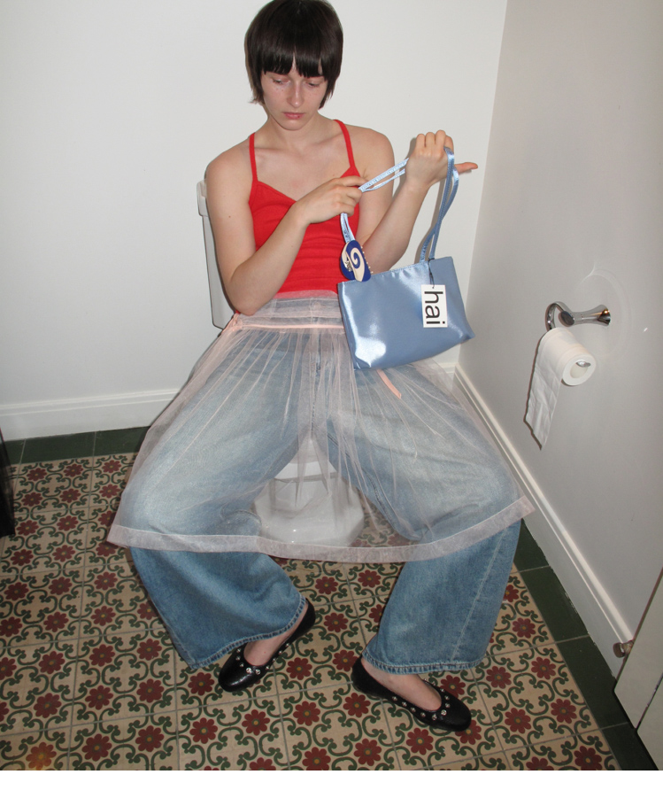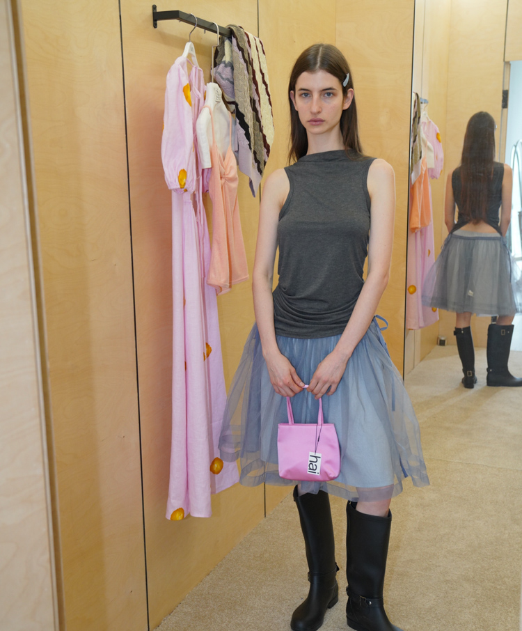 Blogge linen blended stacked wide-waisted tuck mesh half skirt