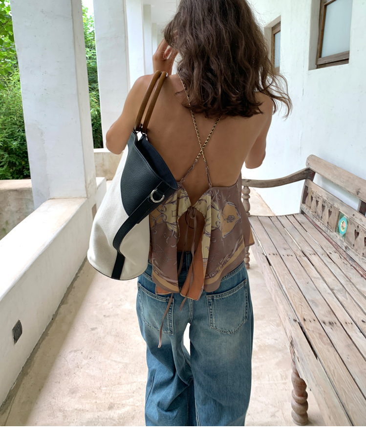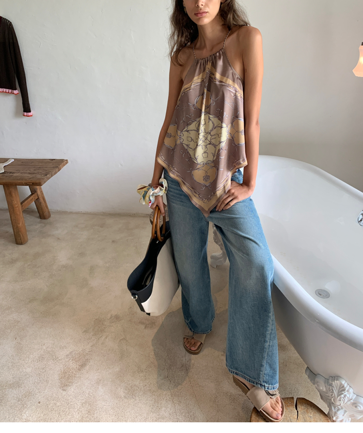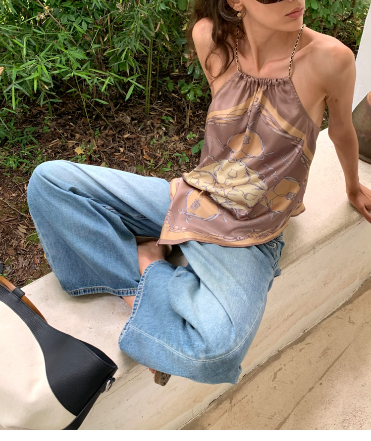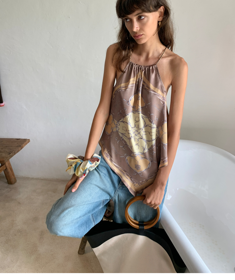 chain neck-wrapping silk scarf strap top