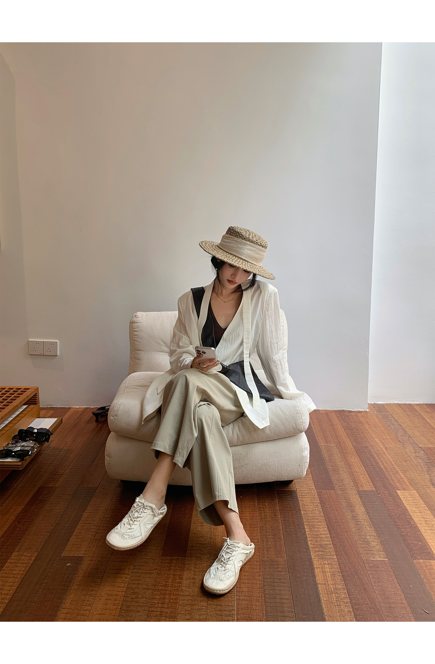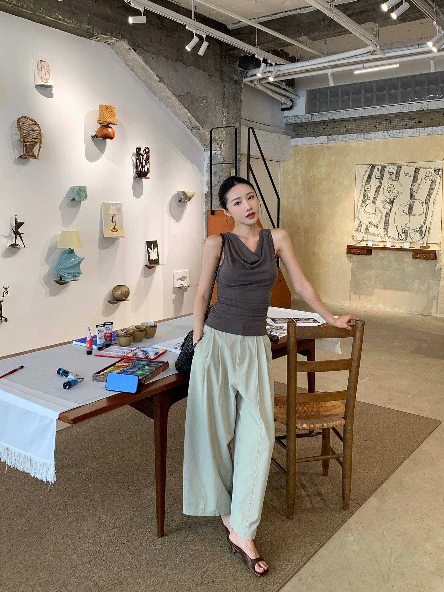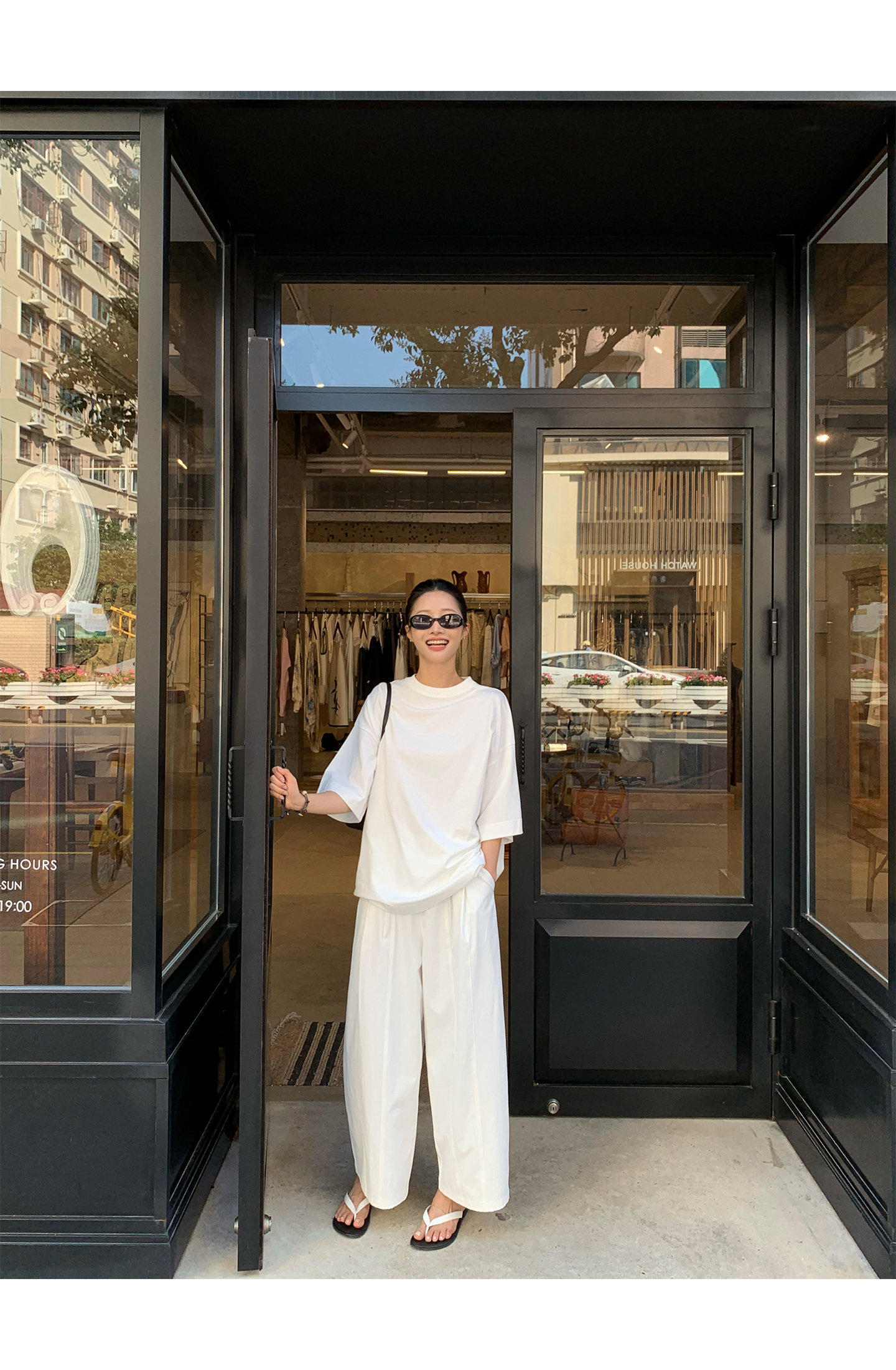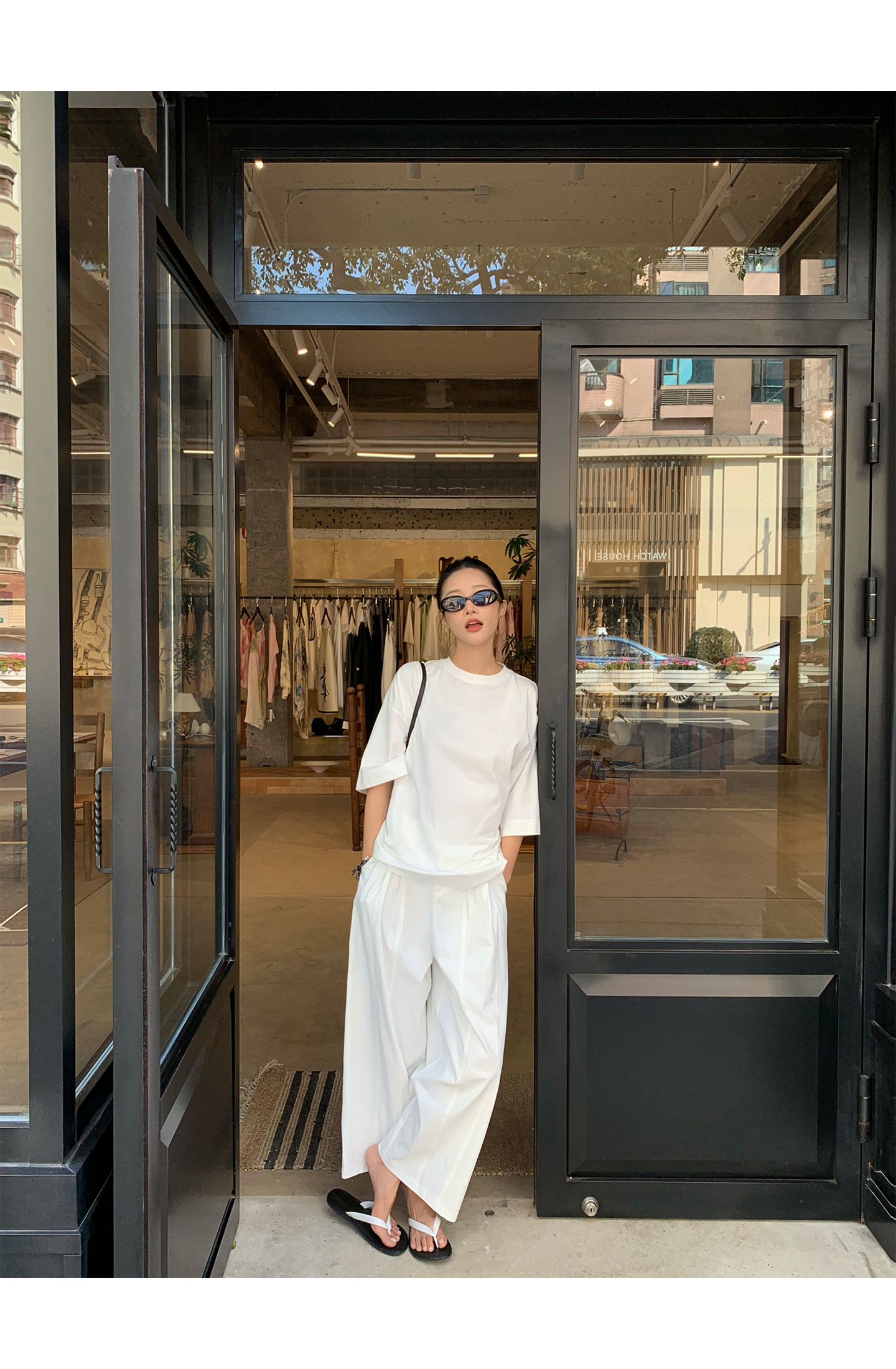 anti-wrinkle nine-point high waist loose wide-leg pants