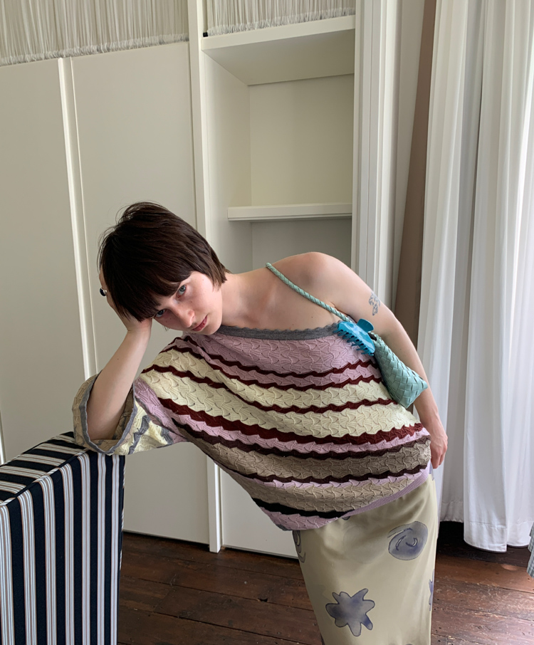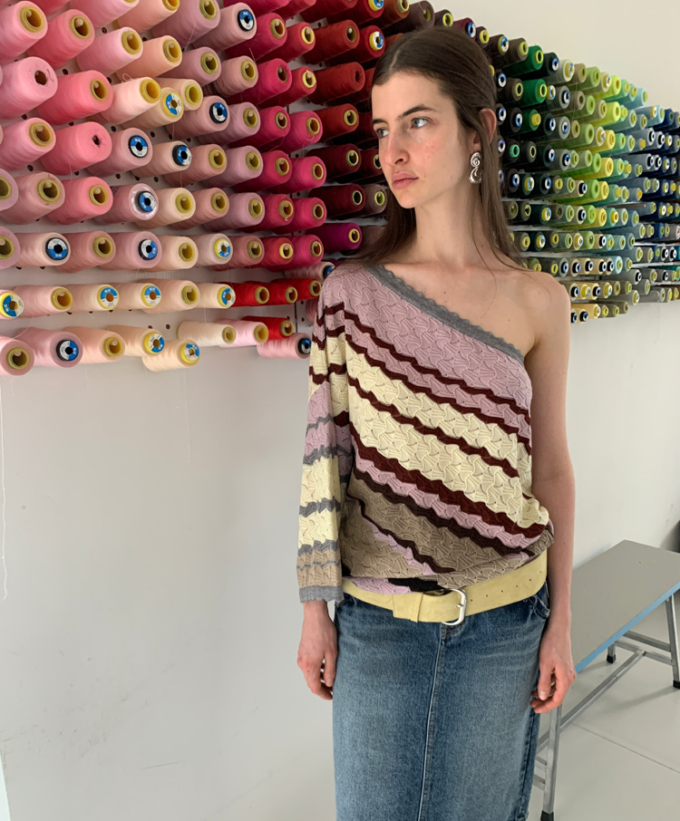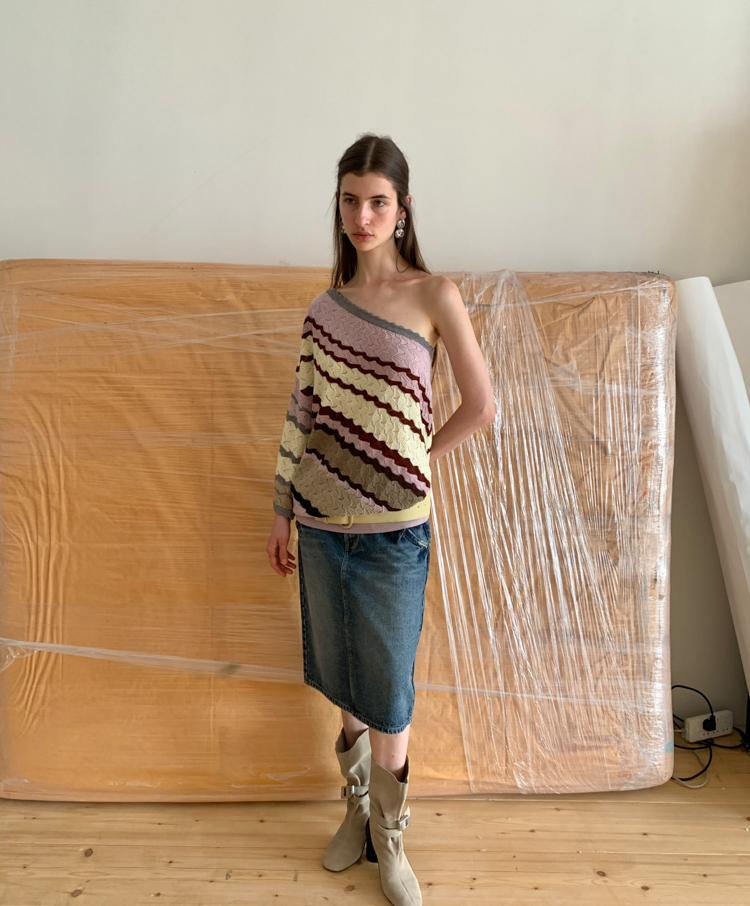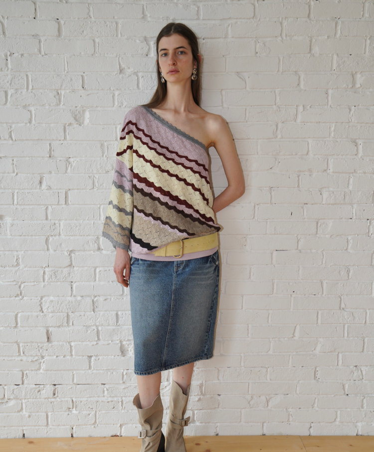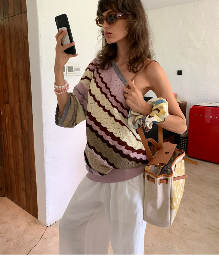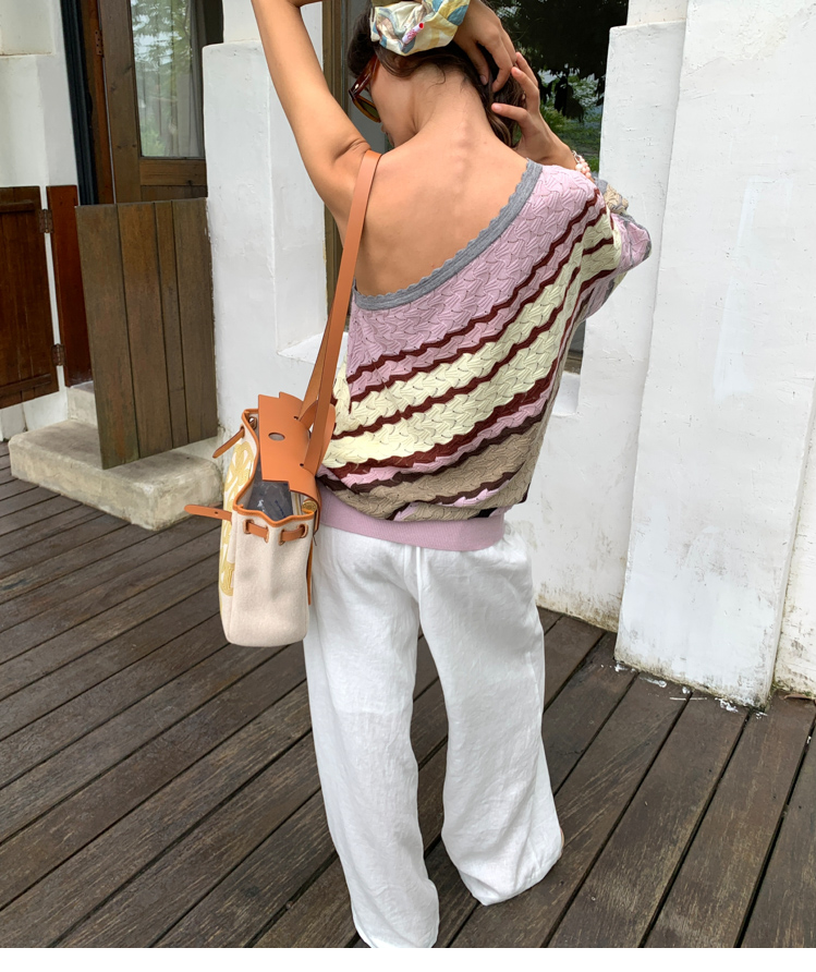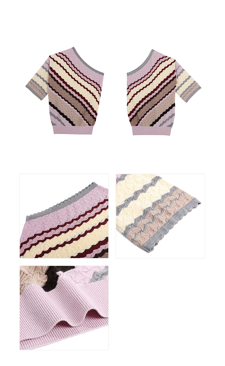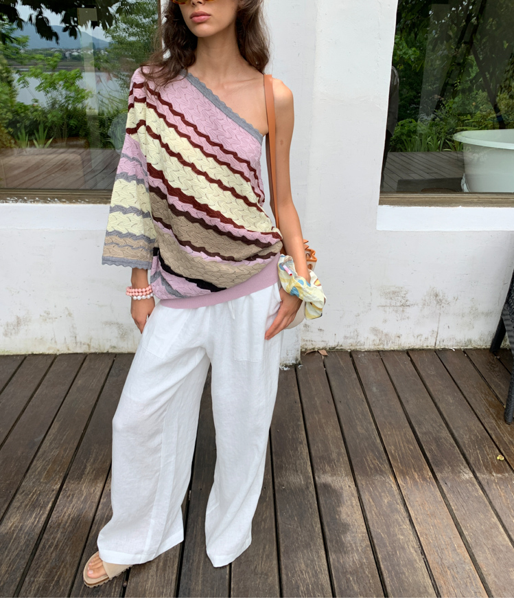 Vintage Colliding Wave Striped Shoulder Elastic Knitwear