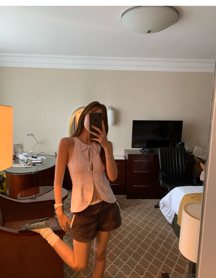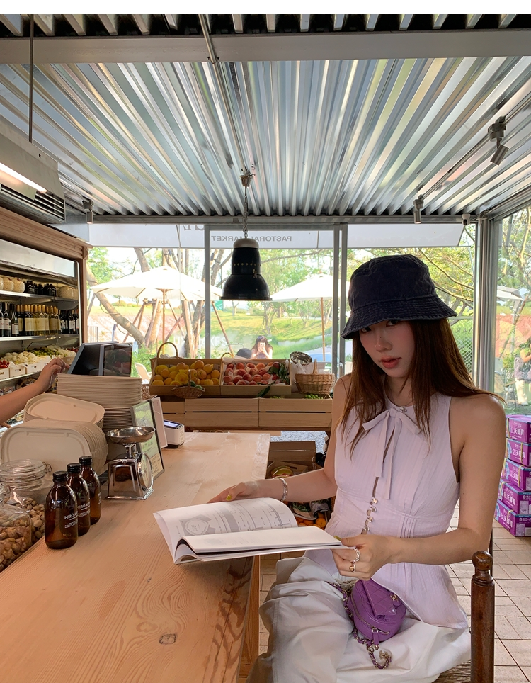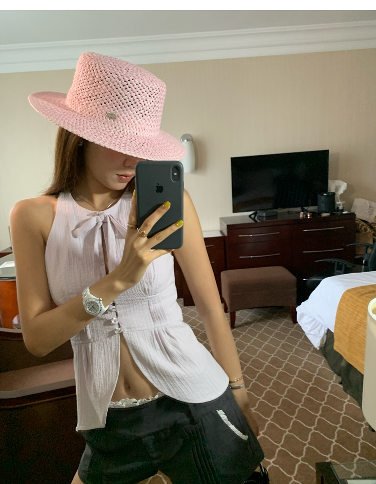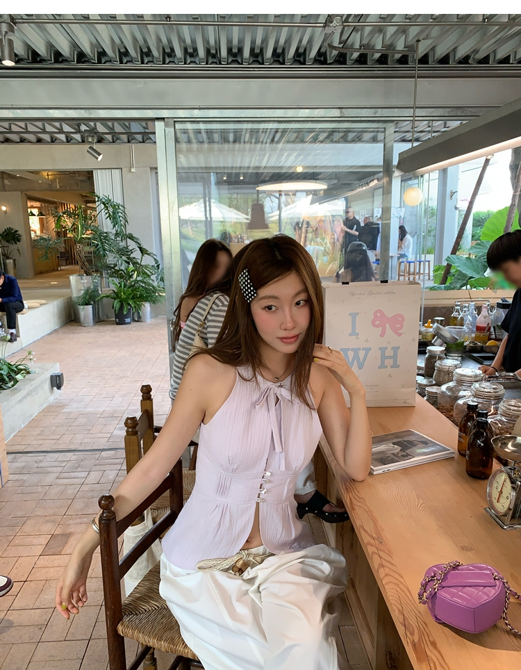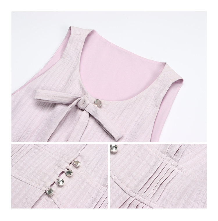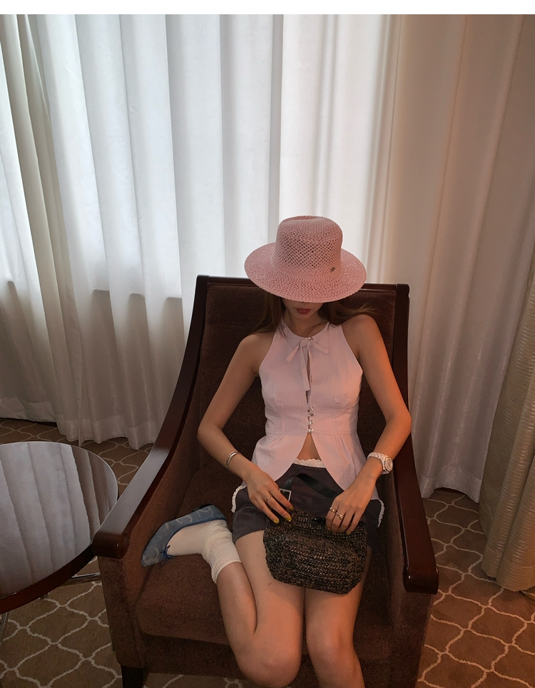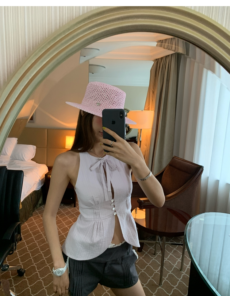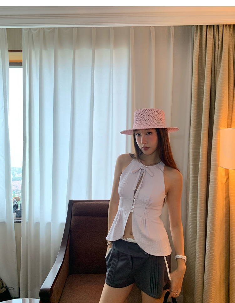 Art Museum French Bow Button Vintage Plaid Sleeveless Top