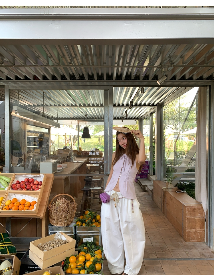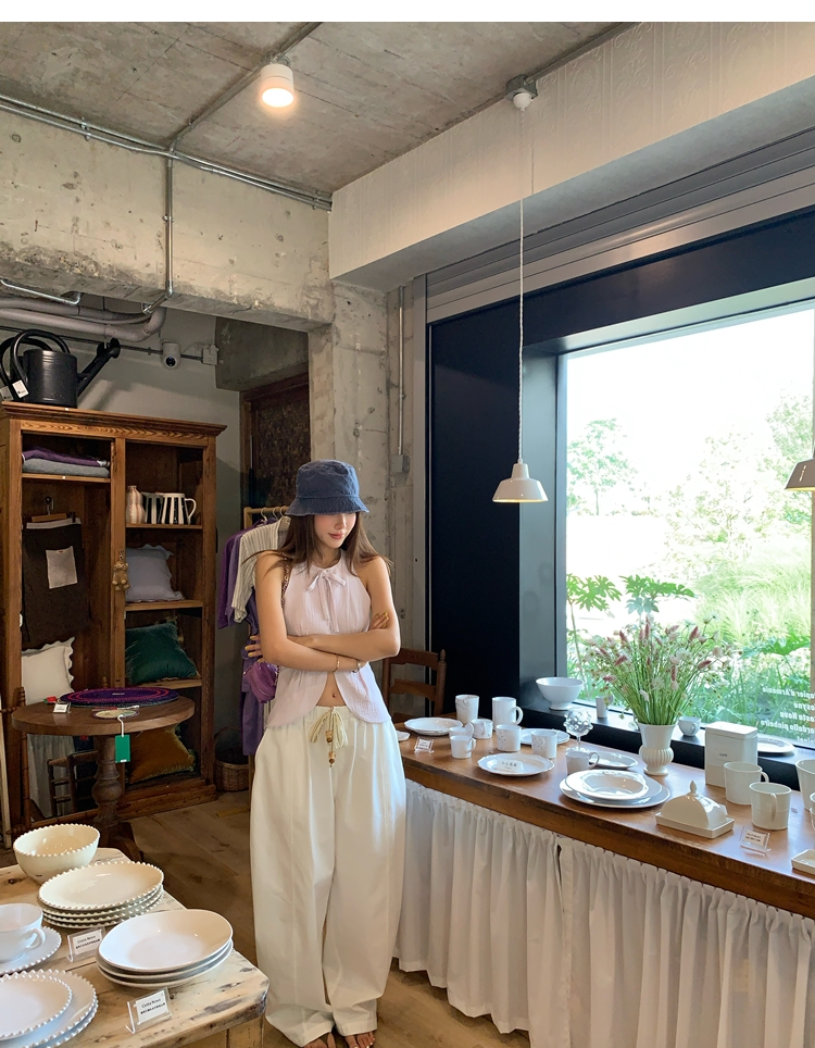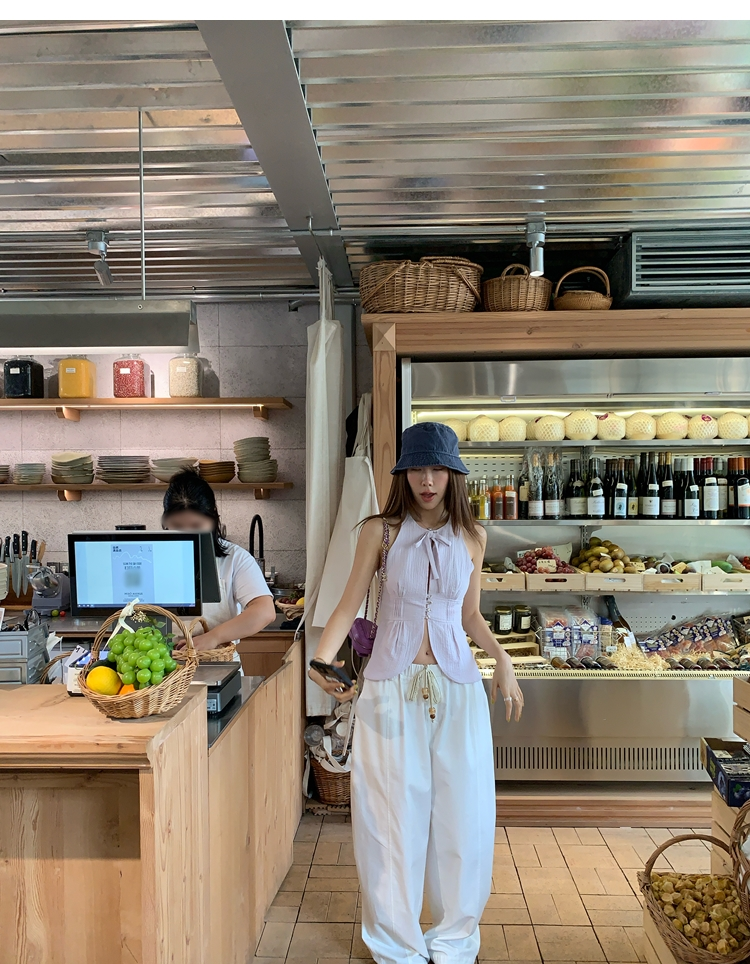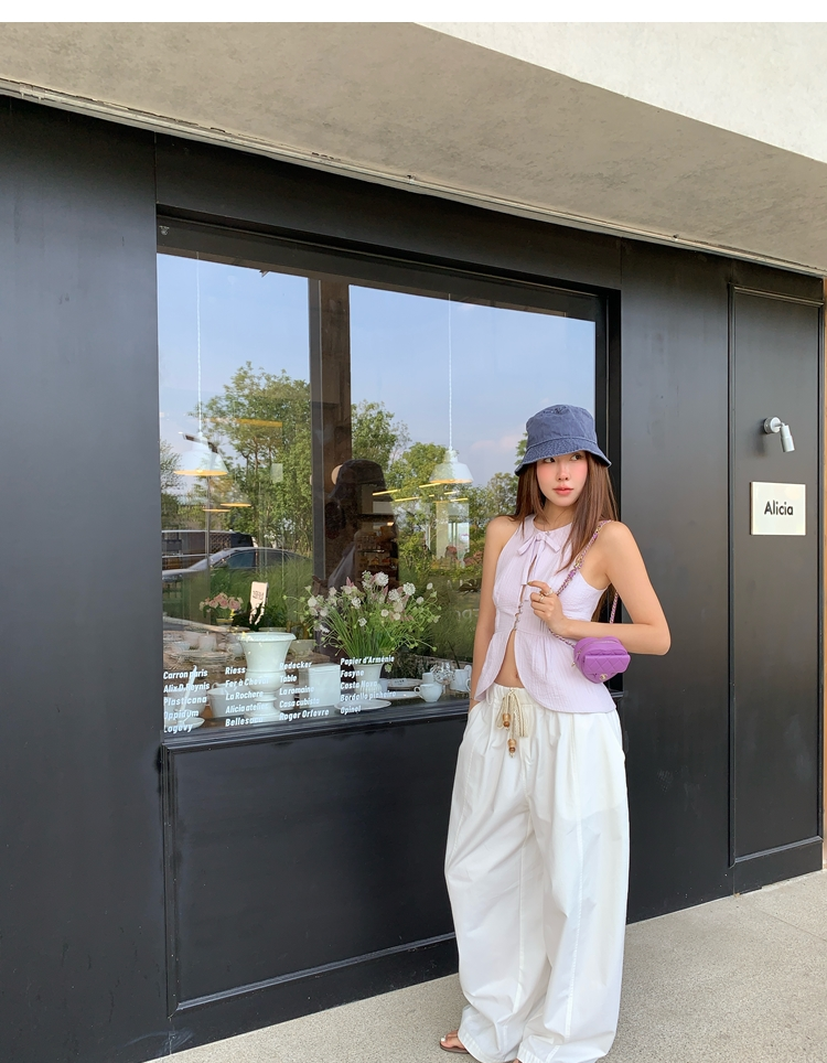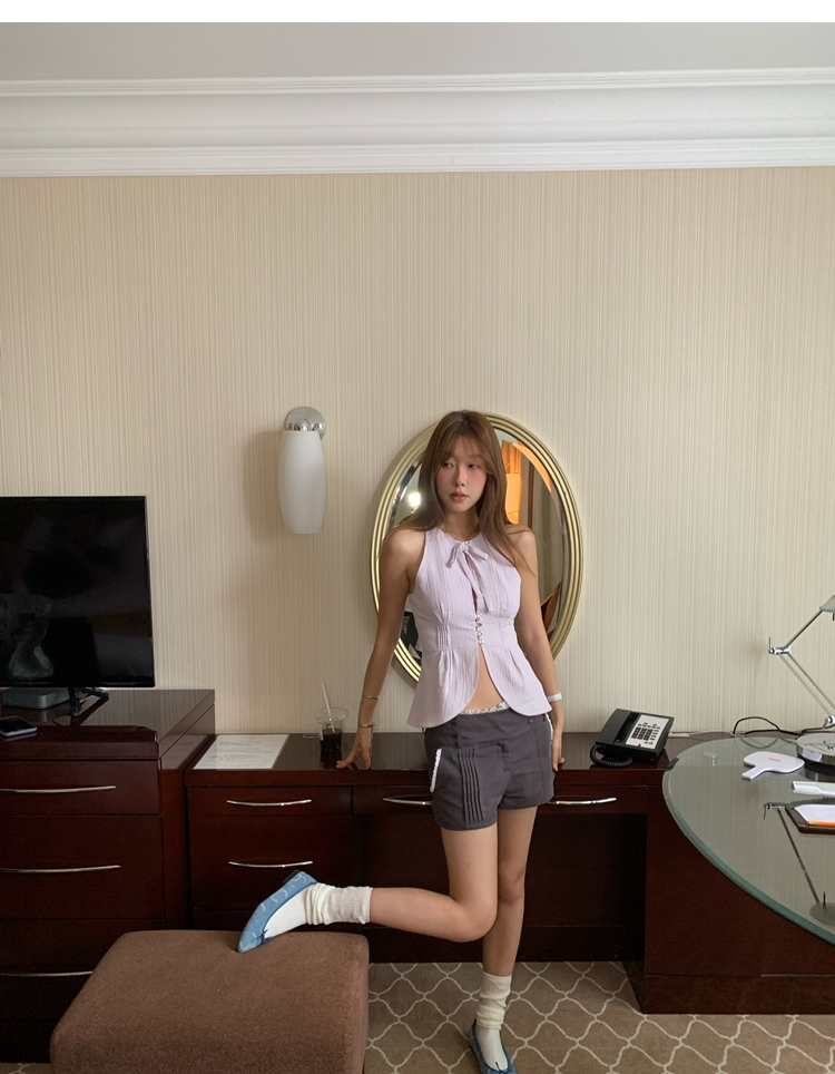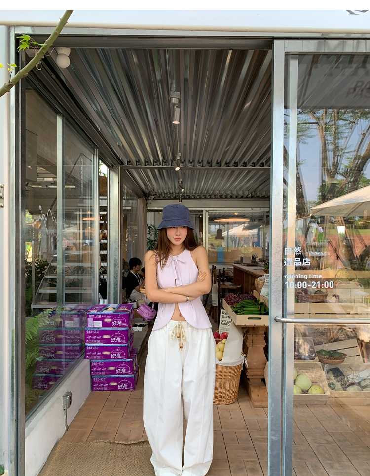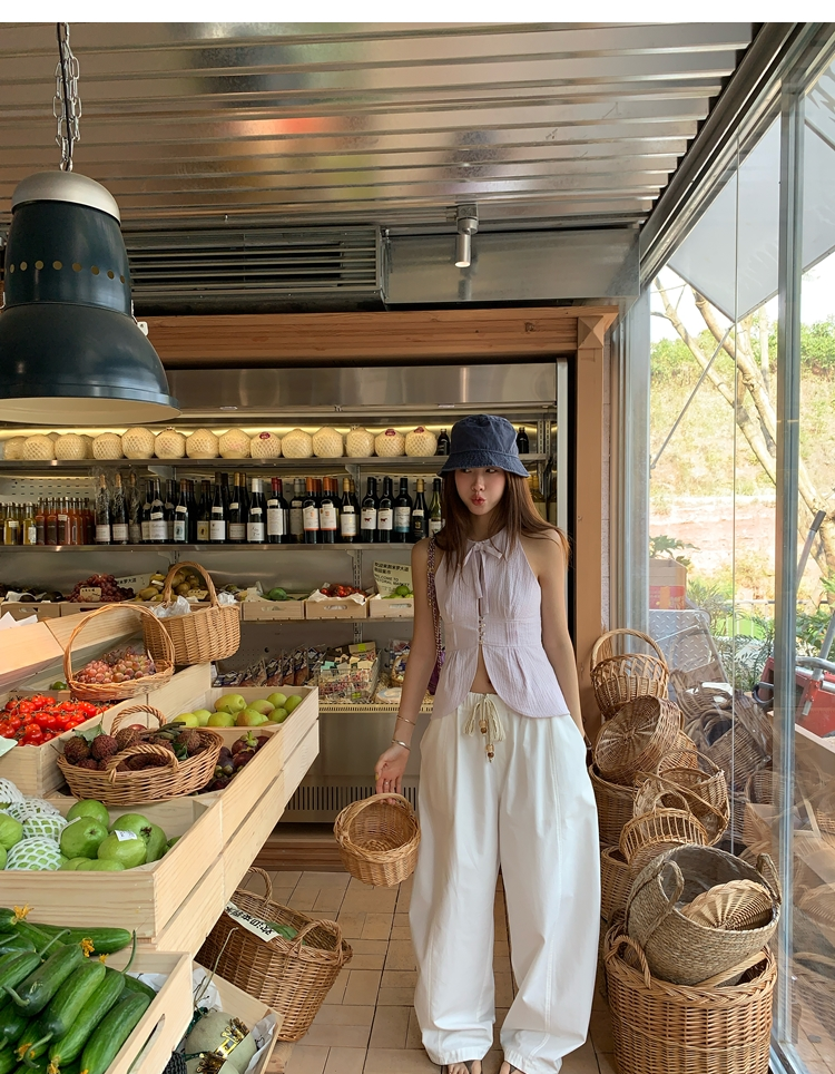 Art Museum French Bow Button Vintage Plaid Sleeveless Top
