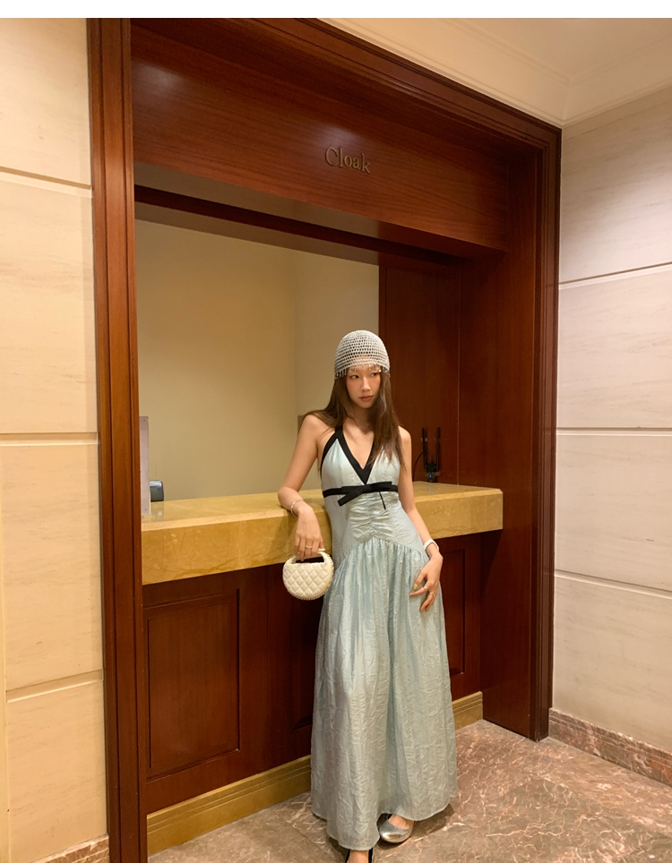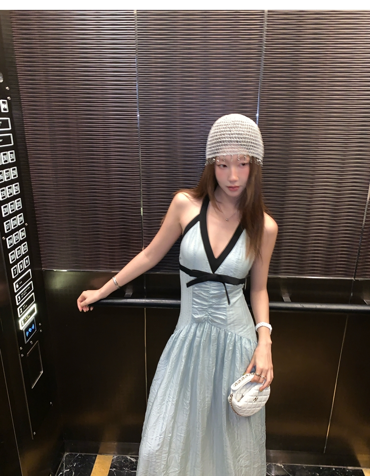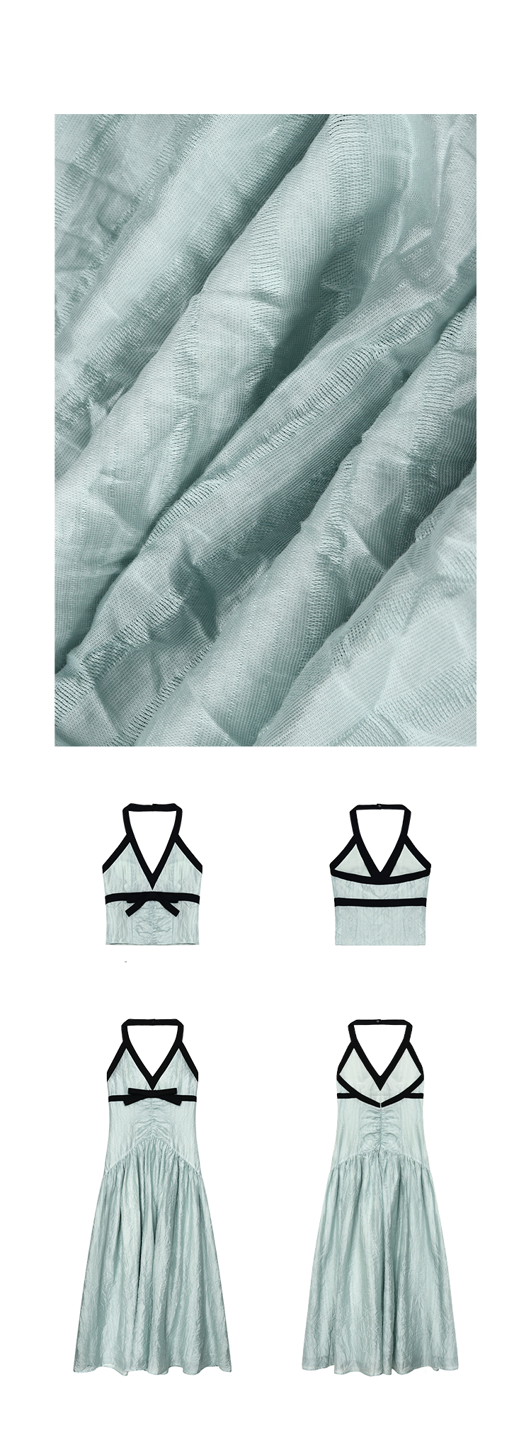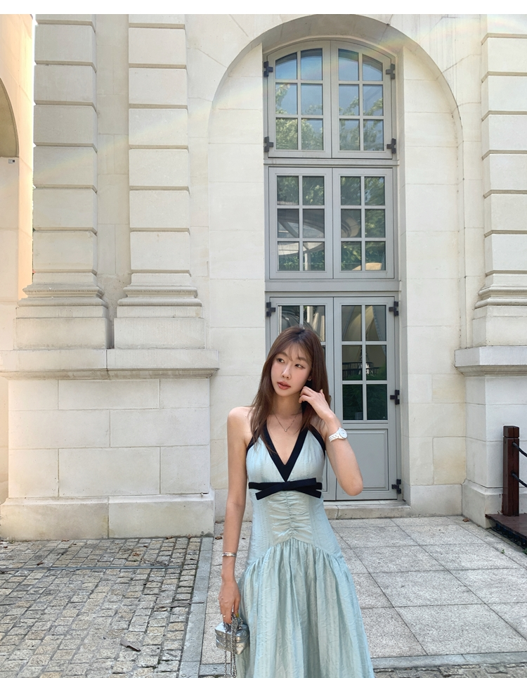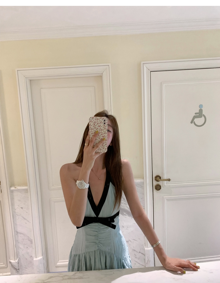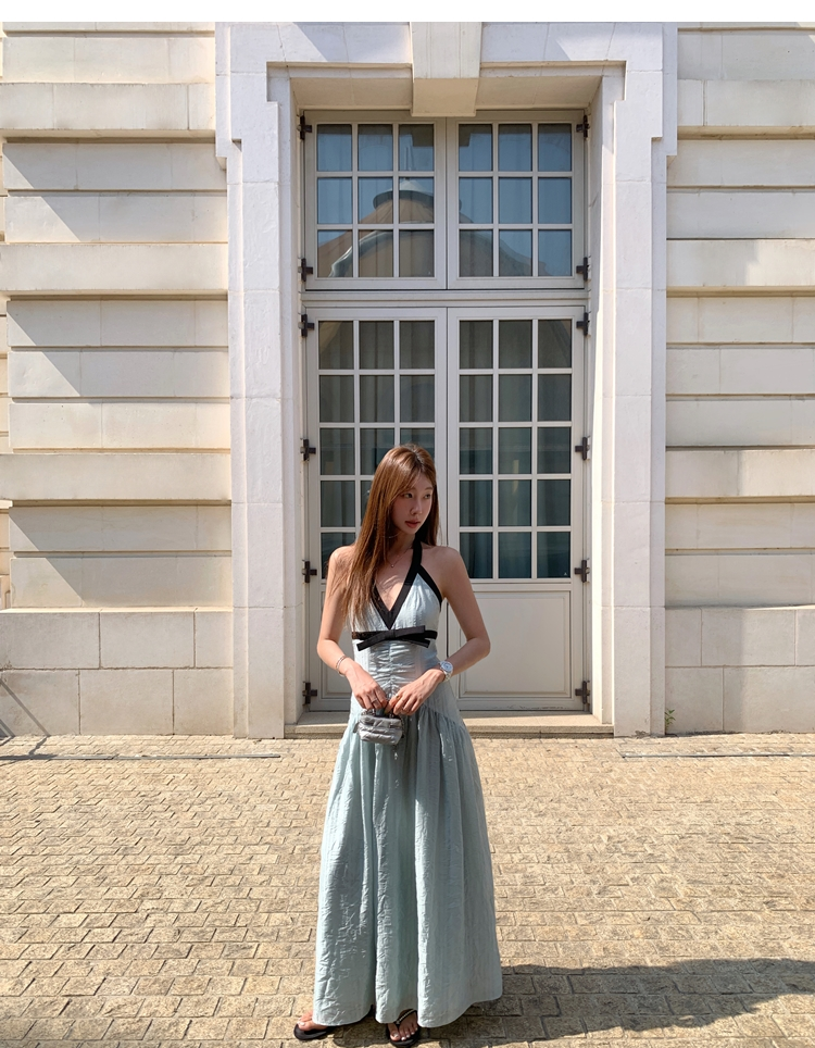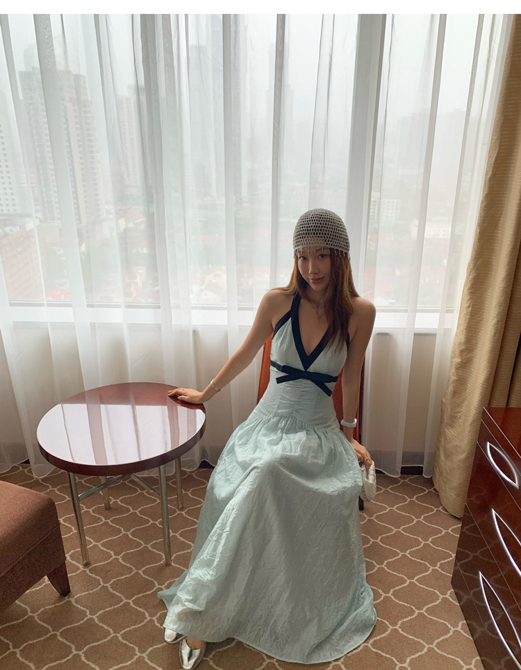 Dual Version Golden V-neck Strap Necklace Backless Top / Long Dress