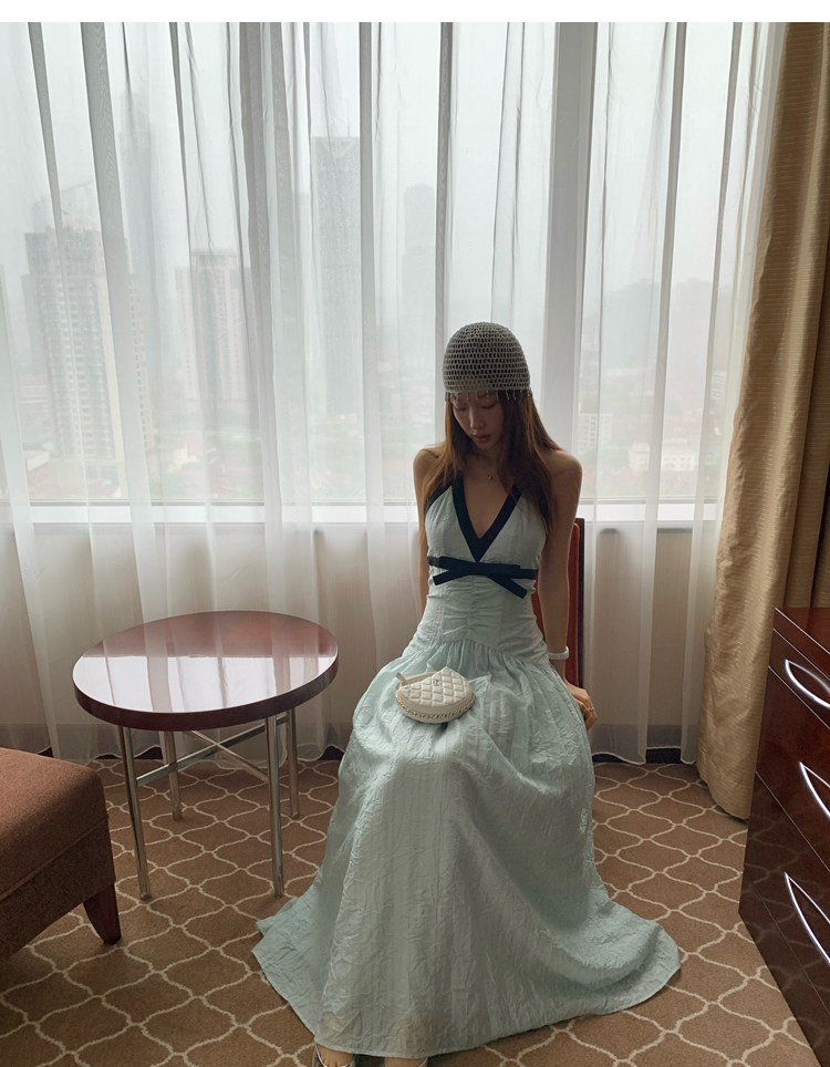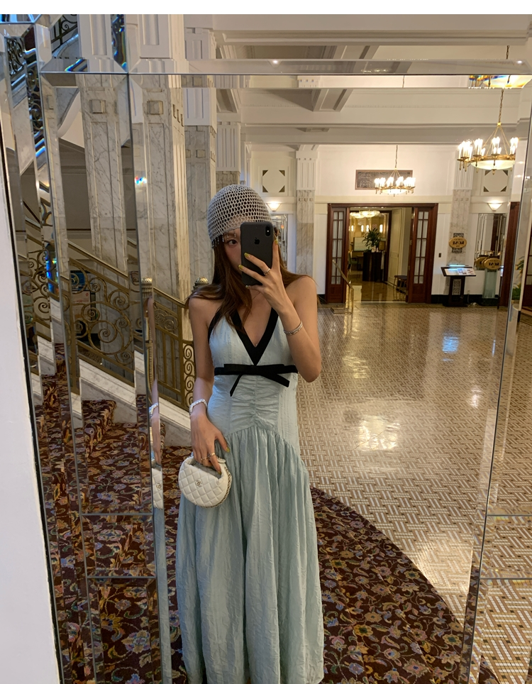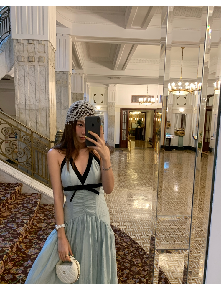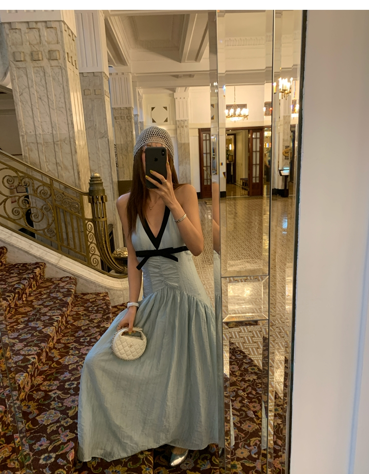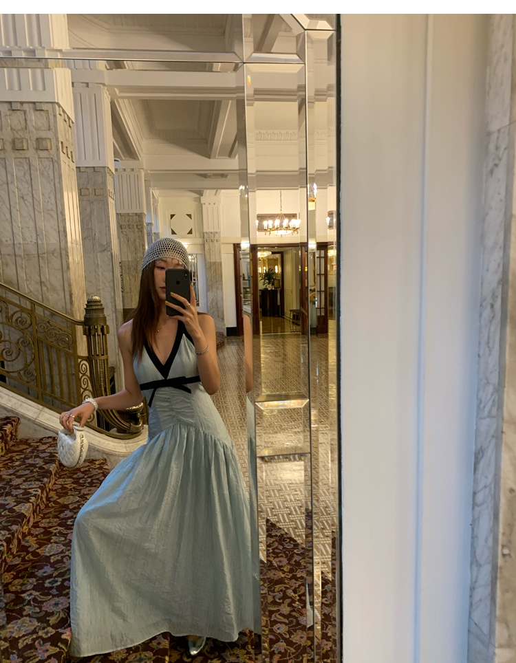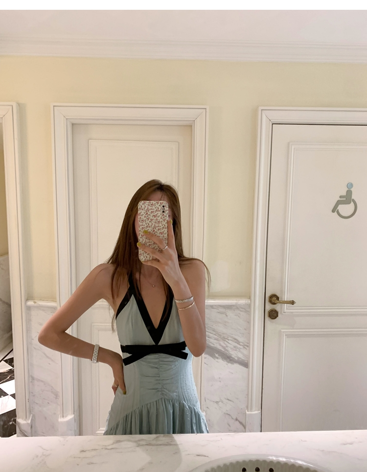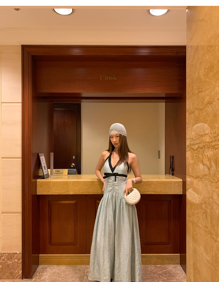 Dual Version Golden V-neck Strap Necklace Backless Top / Long Dress