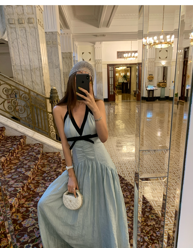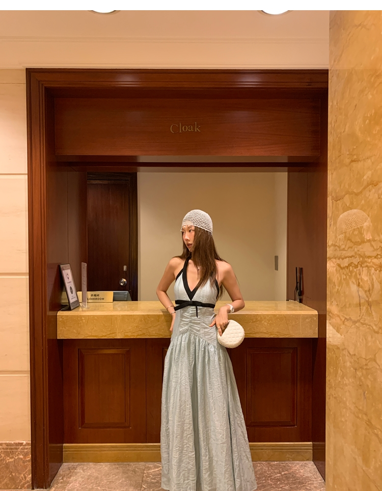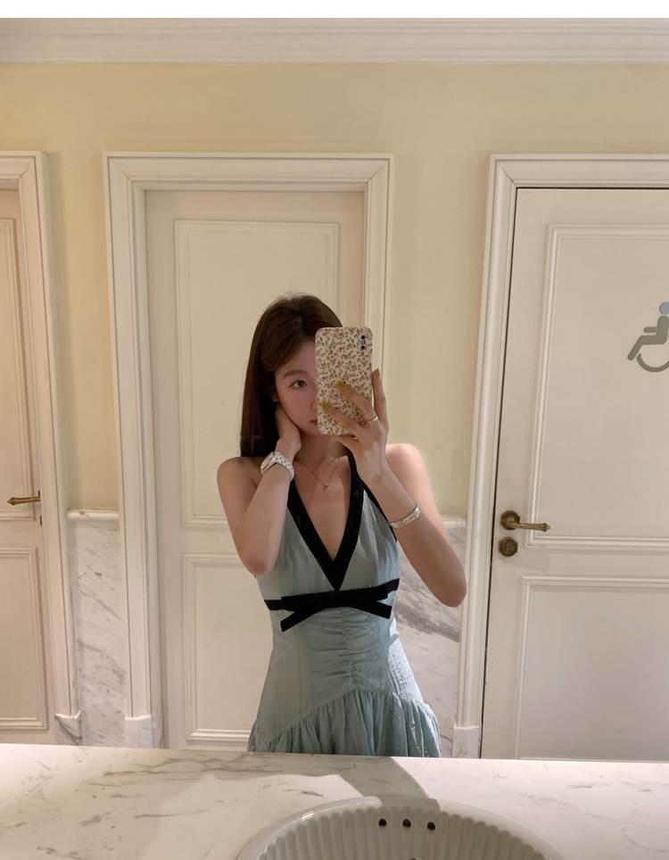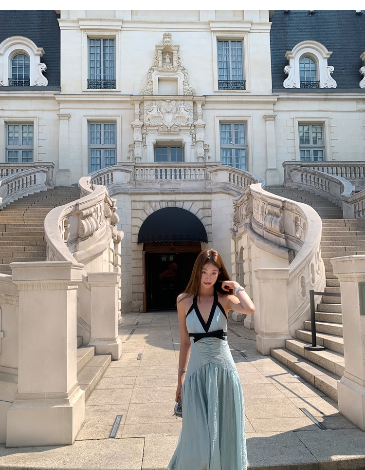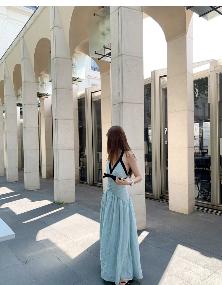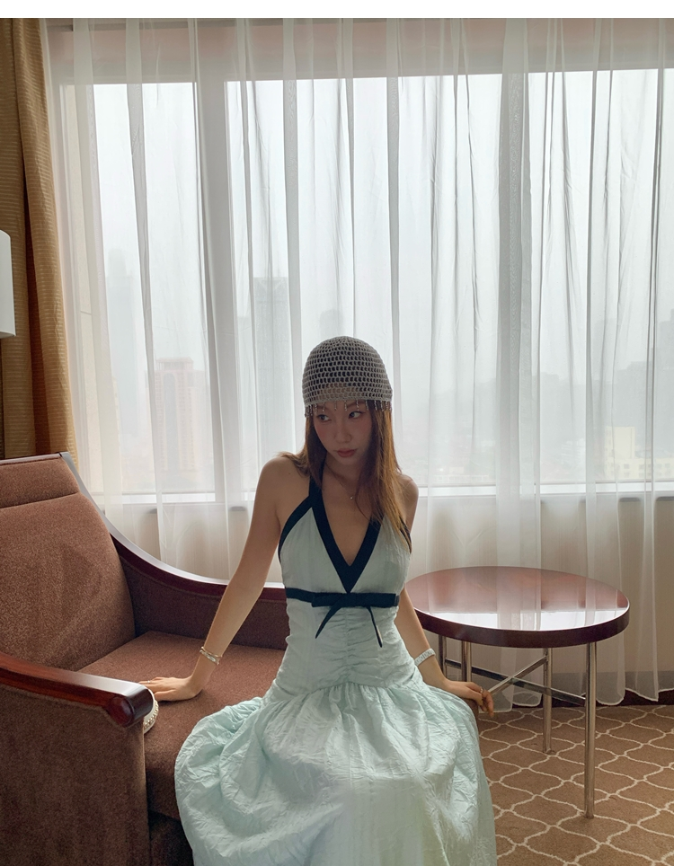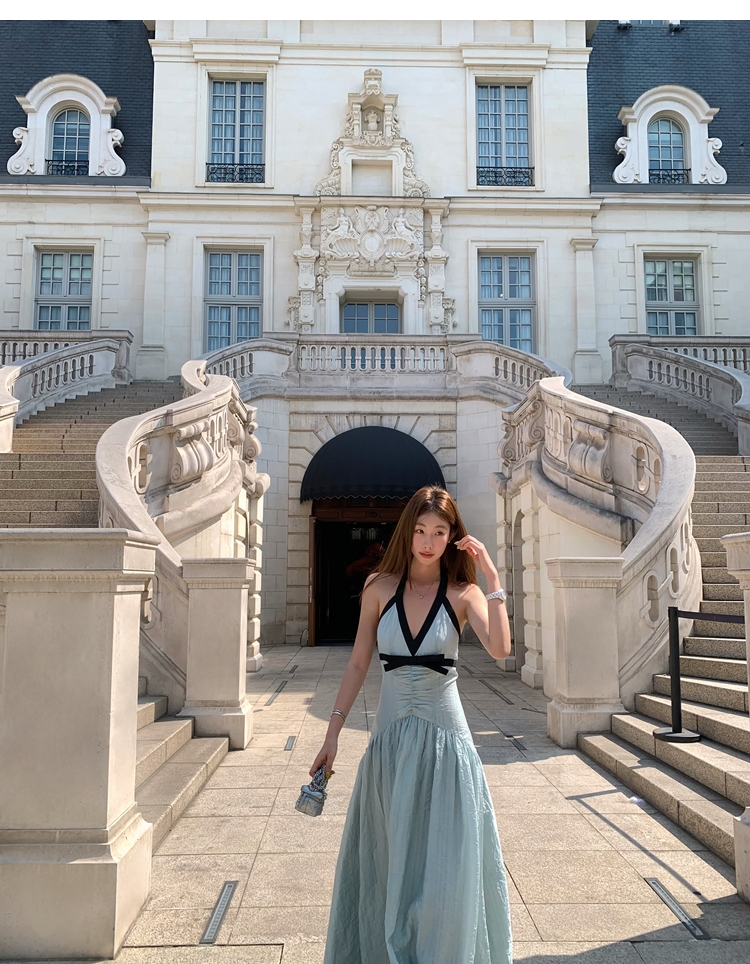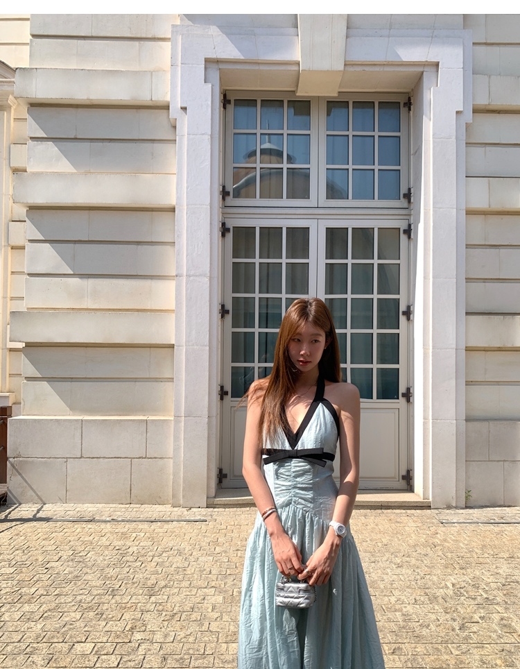 Dual Version Golden V-neck Strap Necklace Backless Top / Long Dress