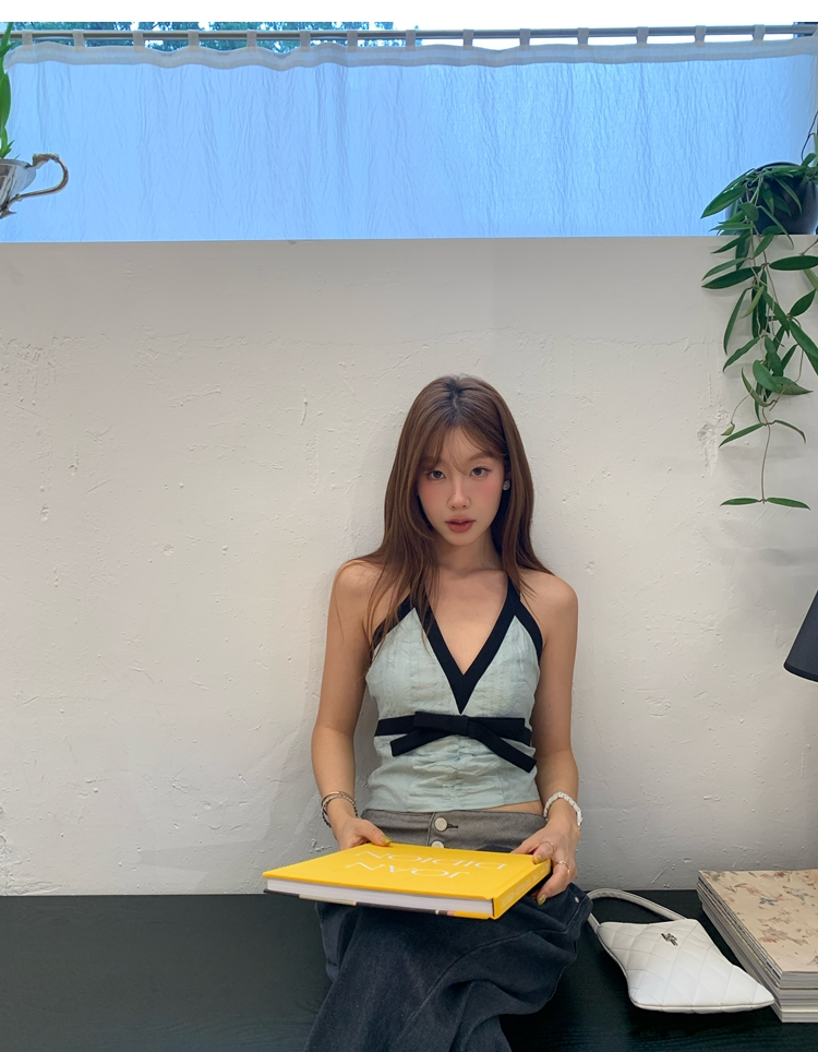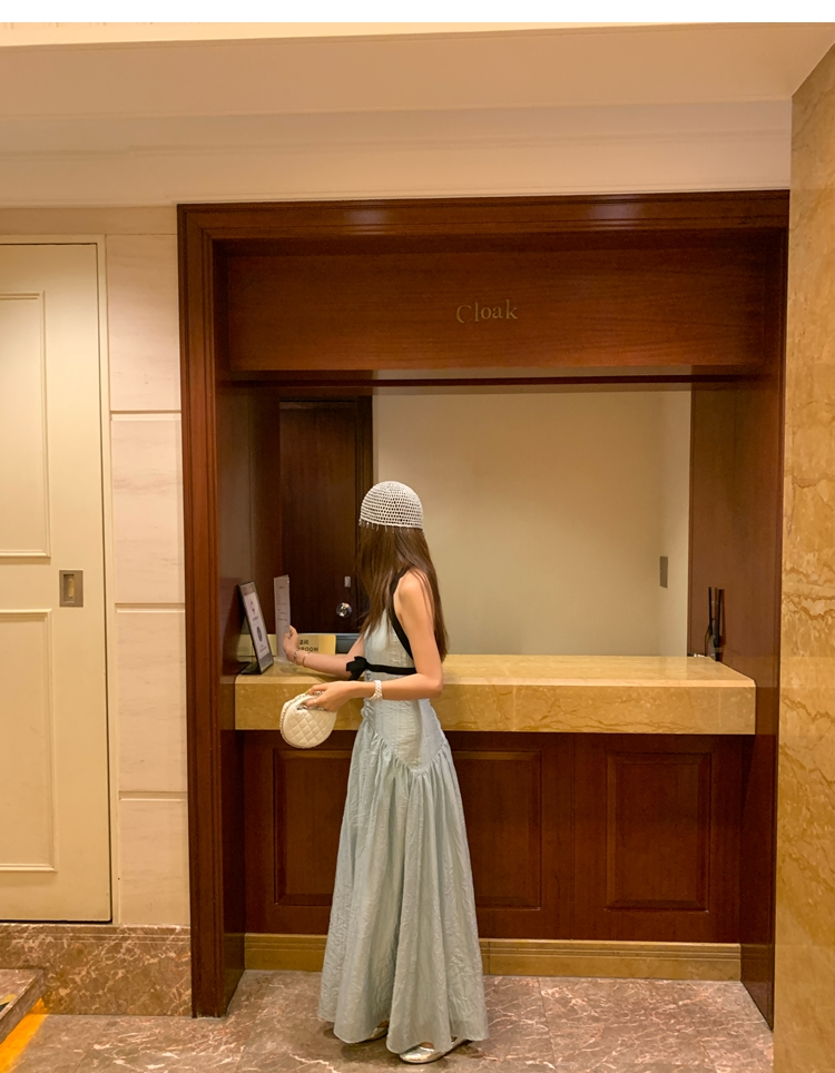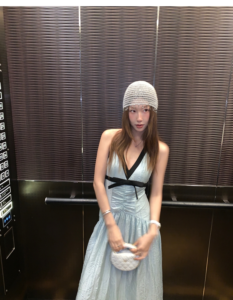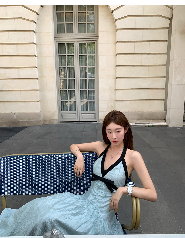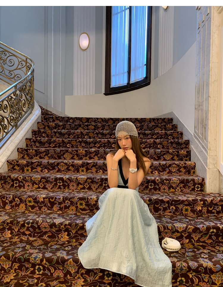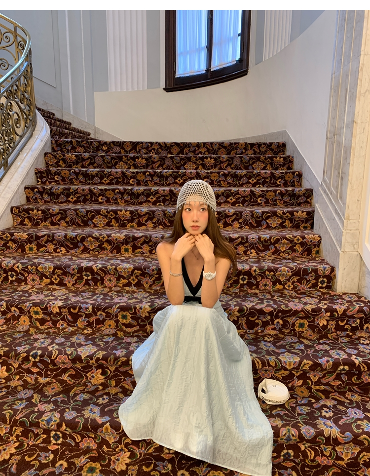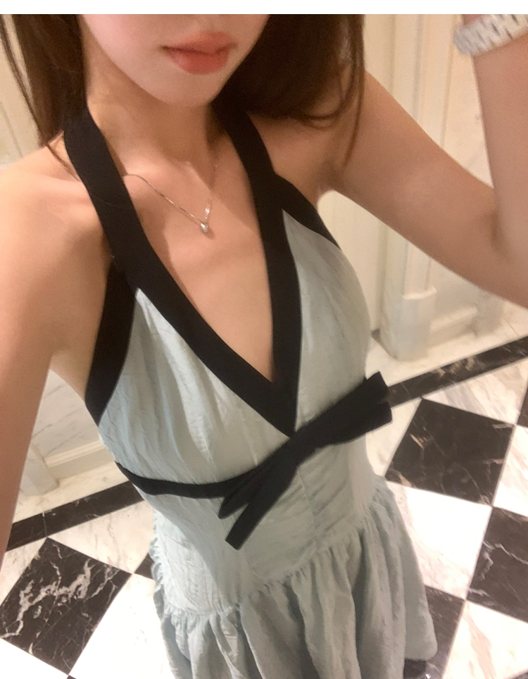 Dual Version Golden V-neck Strap Necklace Backless Top / Long Dress
