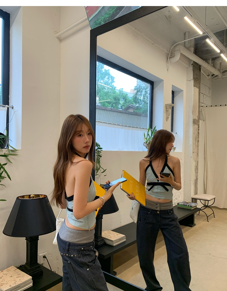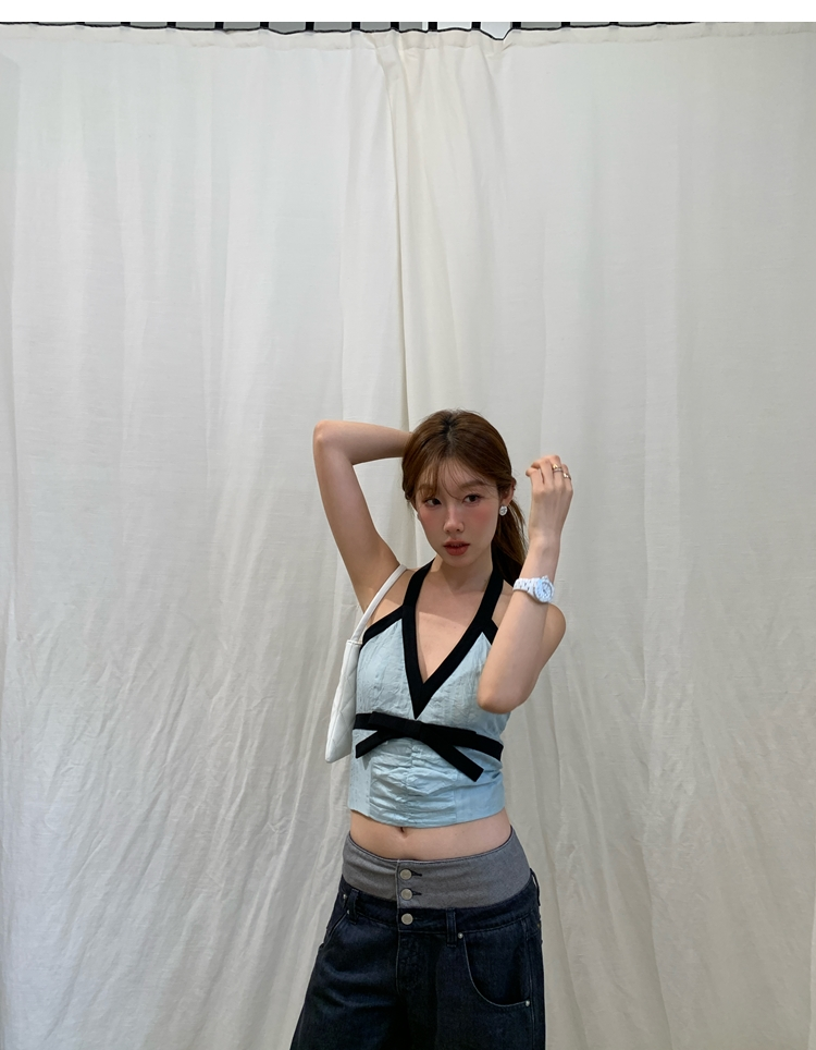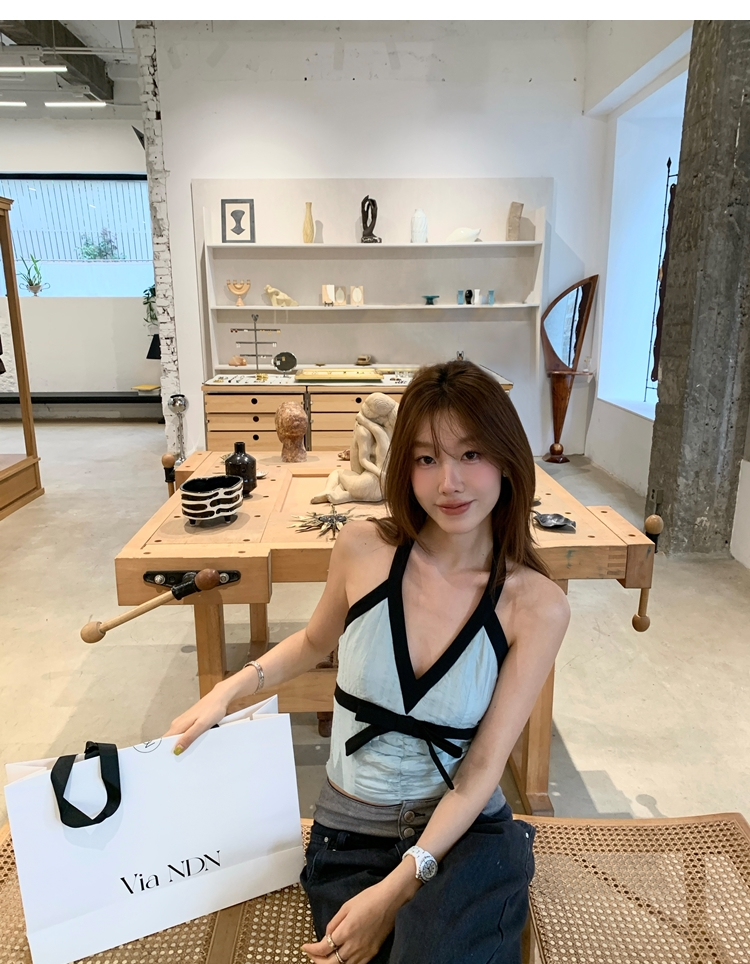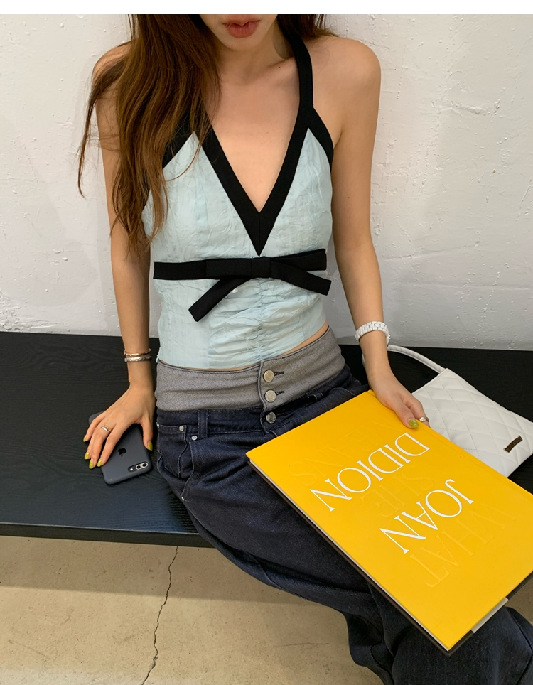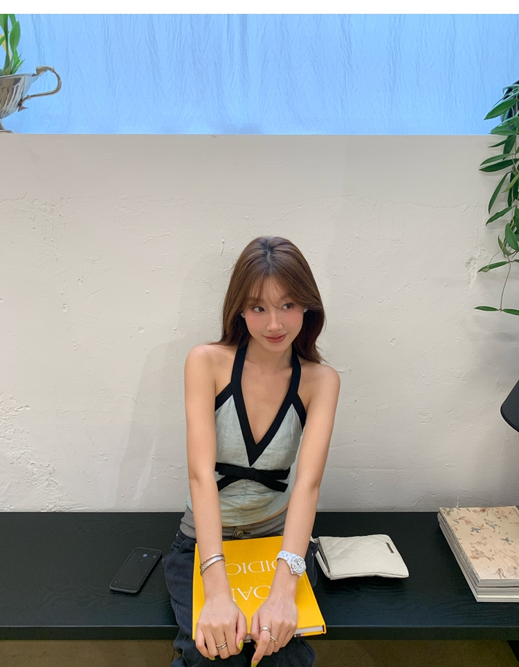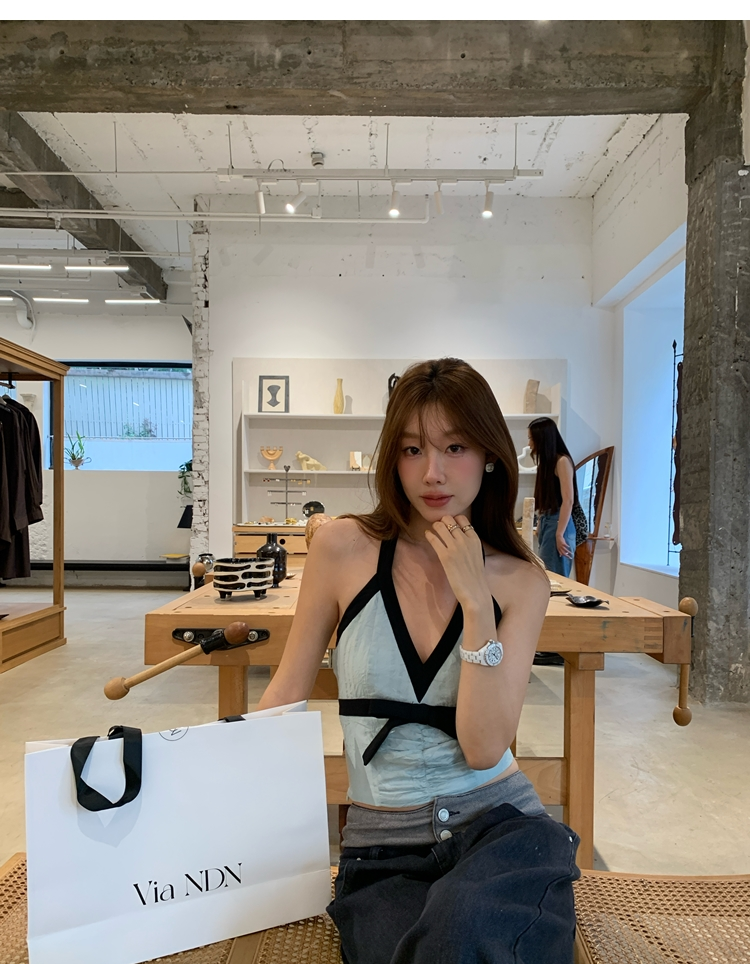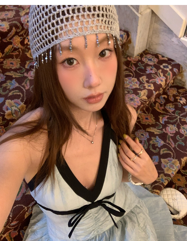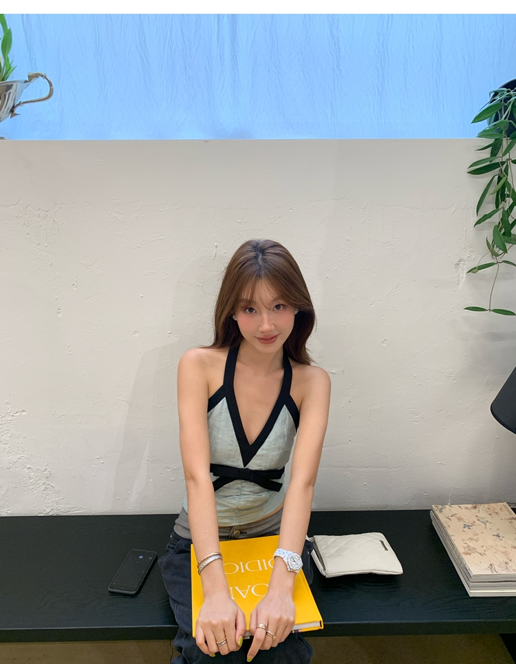 Dual Version Golden V-neck Strap Necklace Backless Top / Long Dress