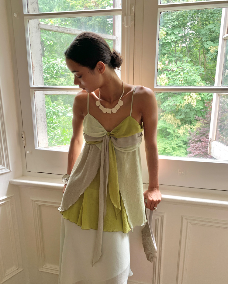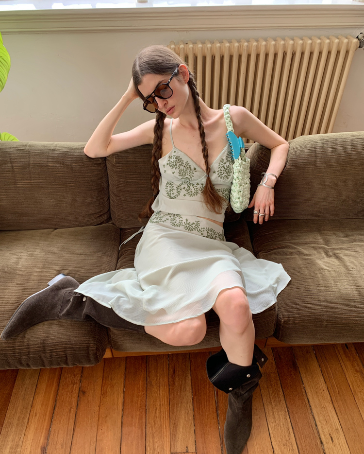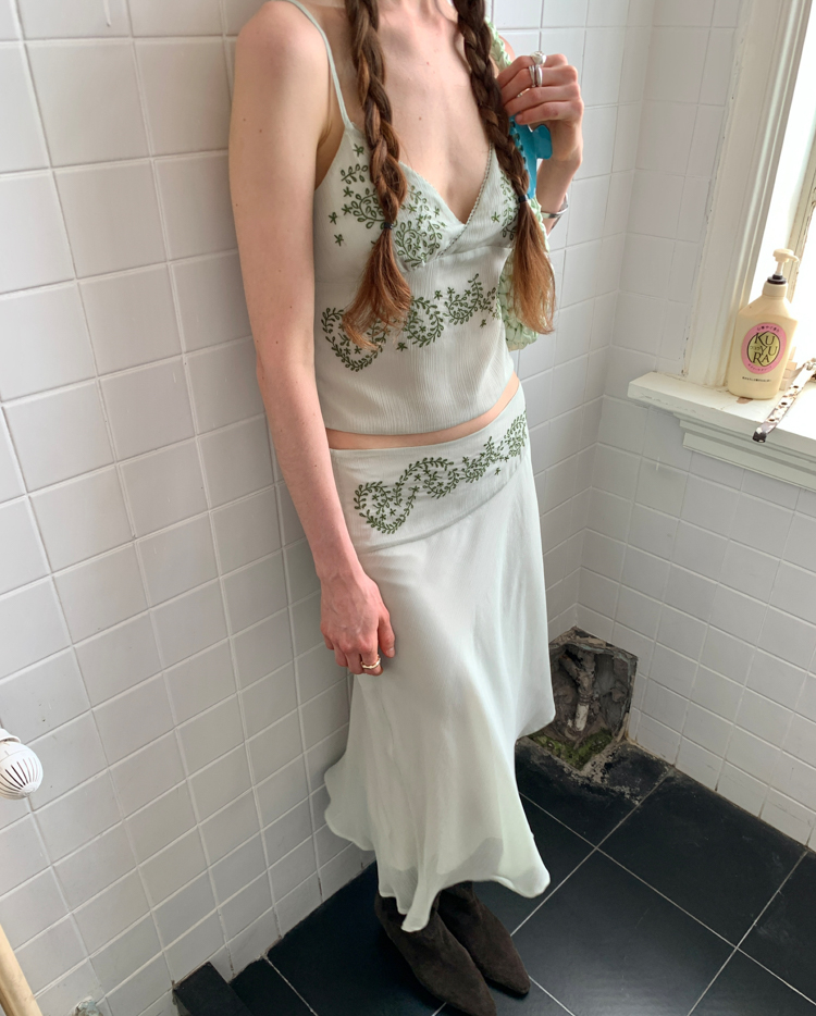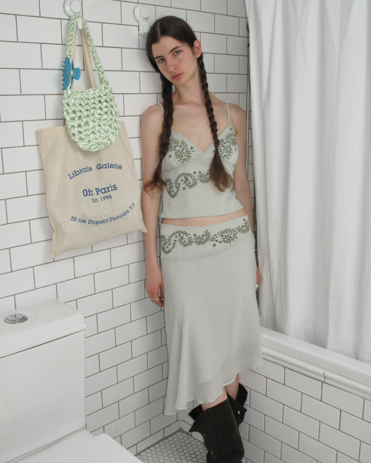 Ivy Plant Embroidered Chiffon Strap Irregular Half Skirt French Set