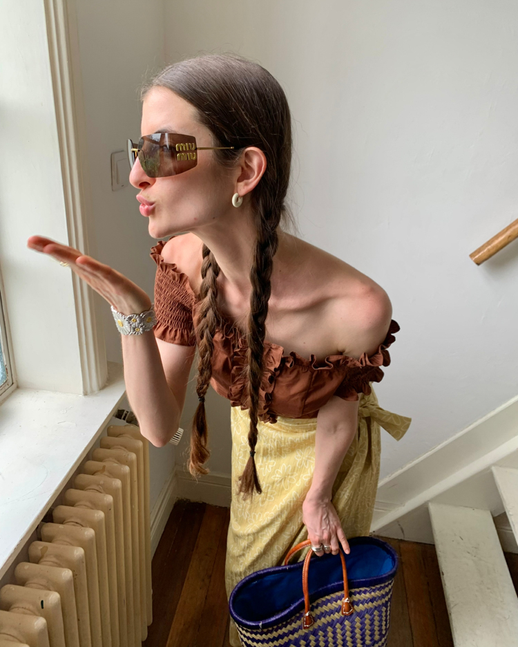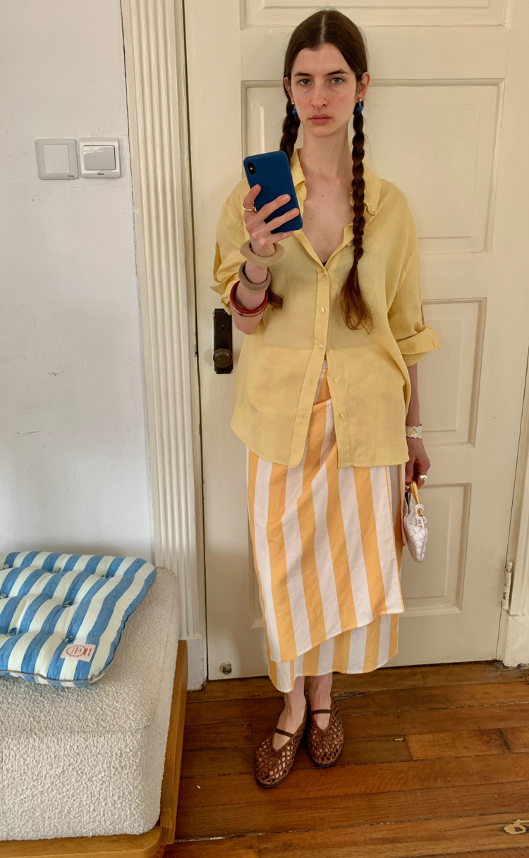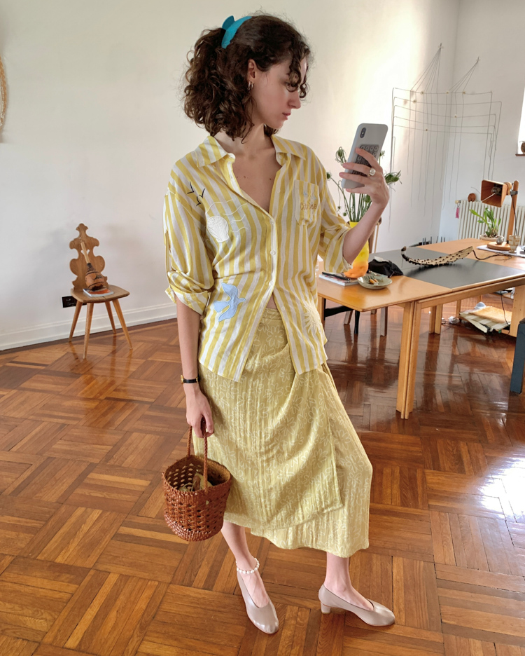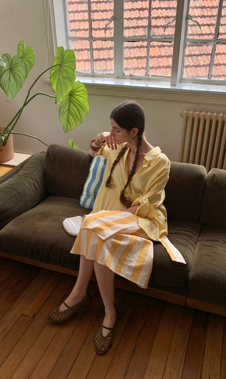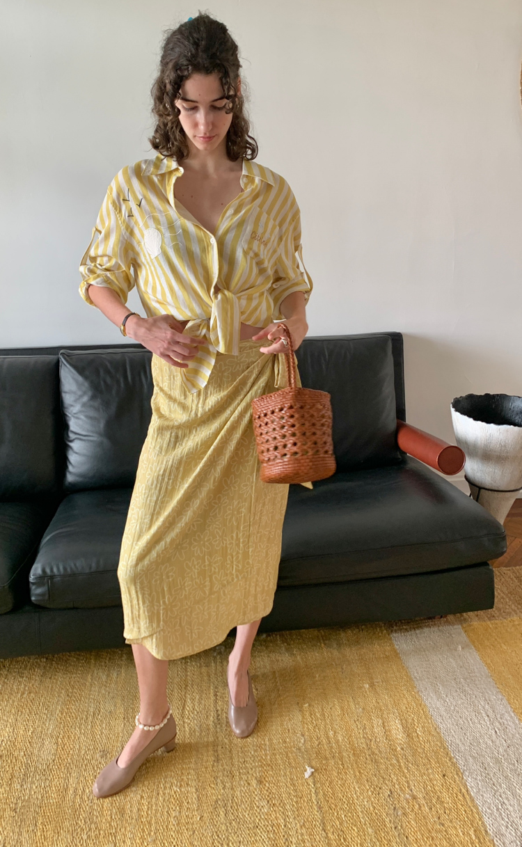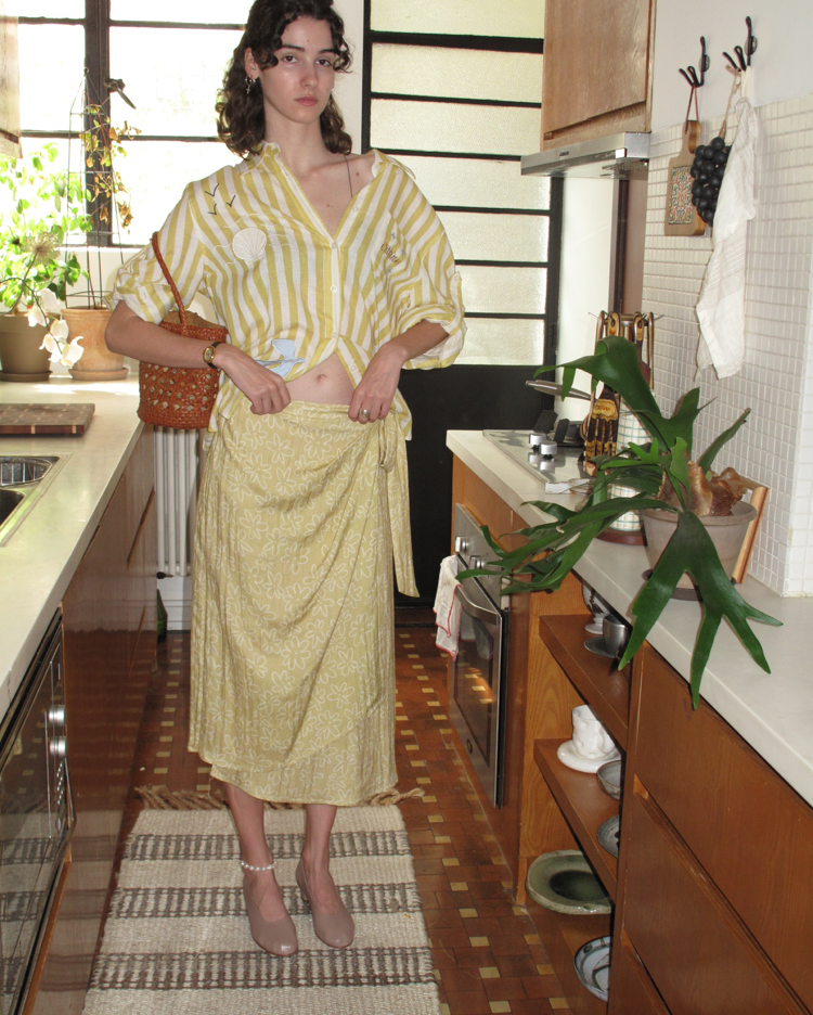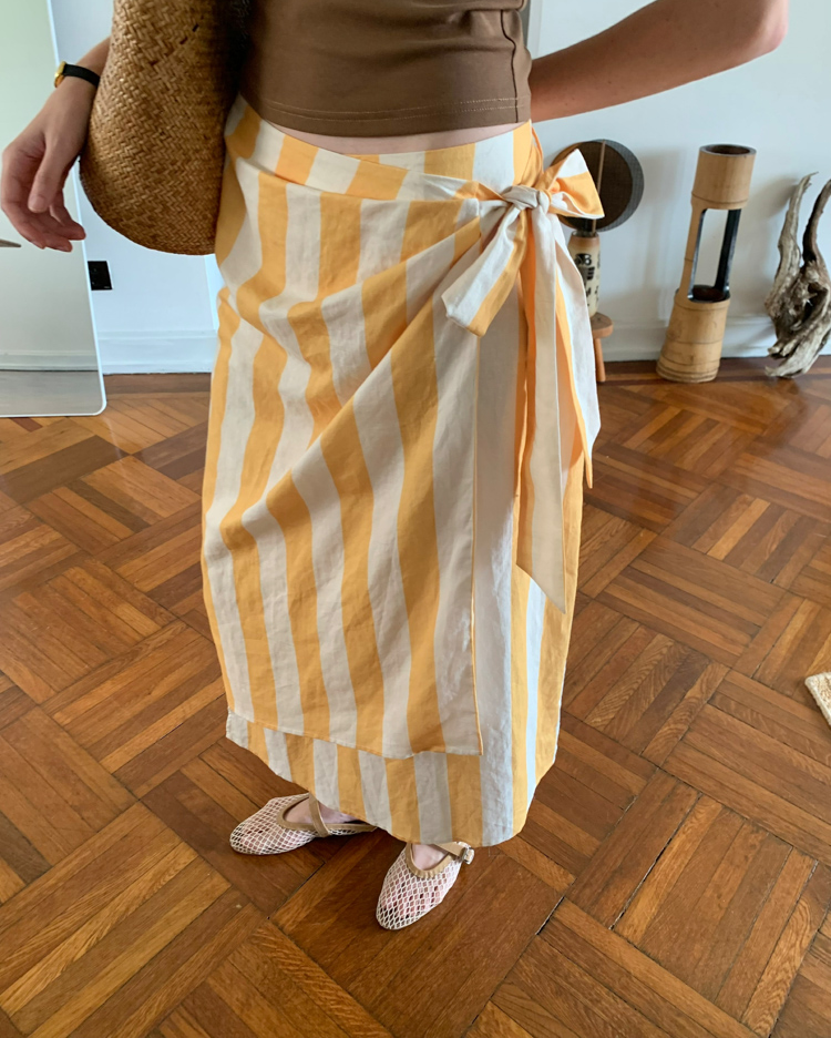 Tencel Flax Blend One-piece Strap Striped Floral French Half Skirt