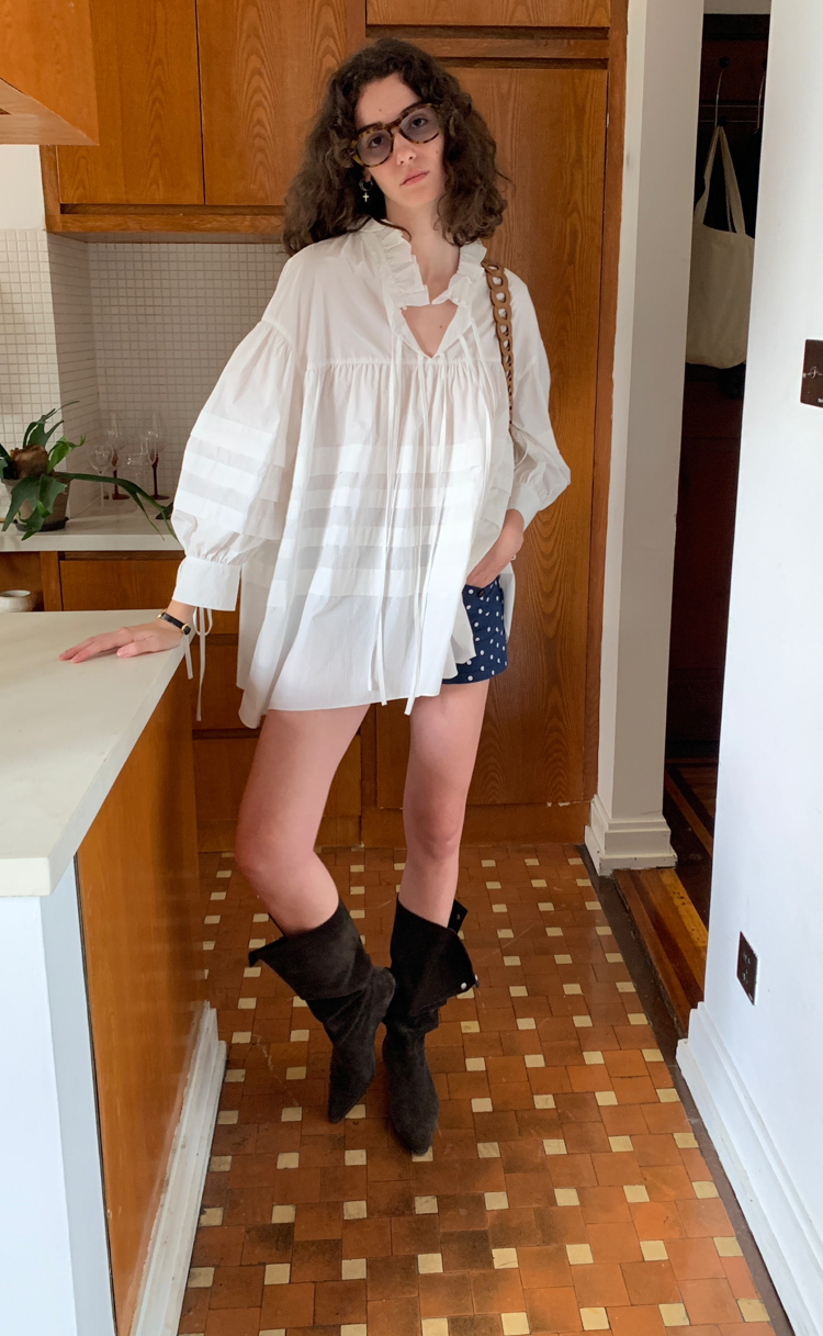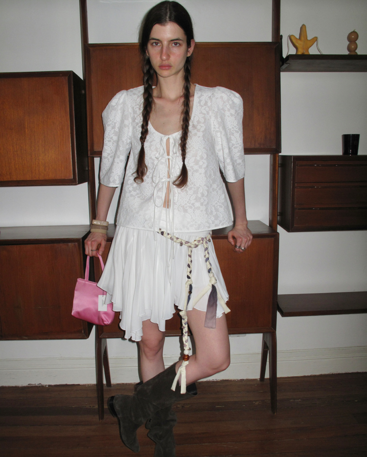 Standing Collar Folded French Doll Top / Half Skirt Set