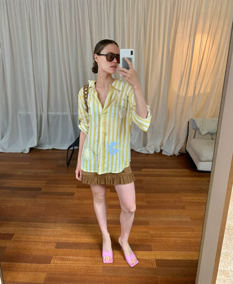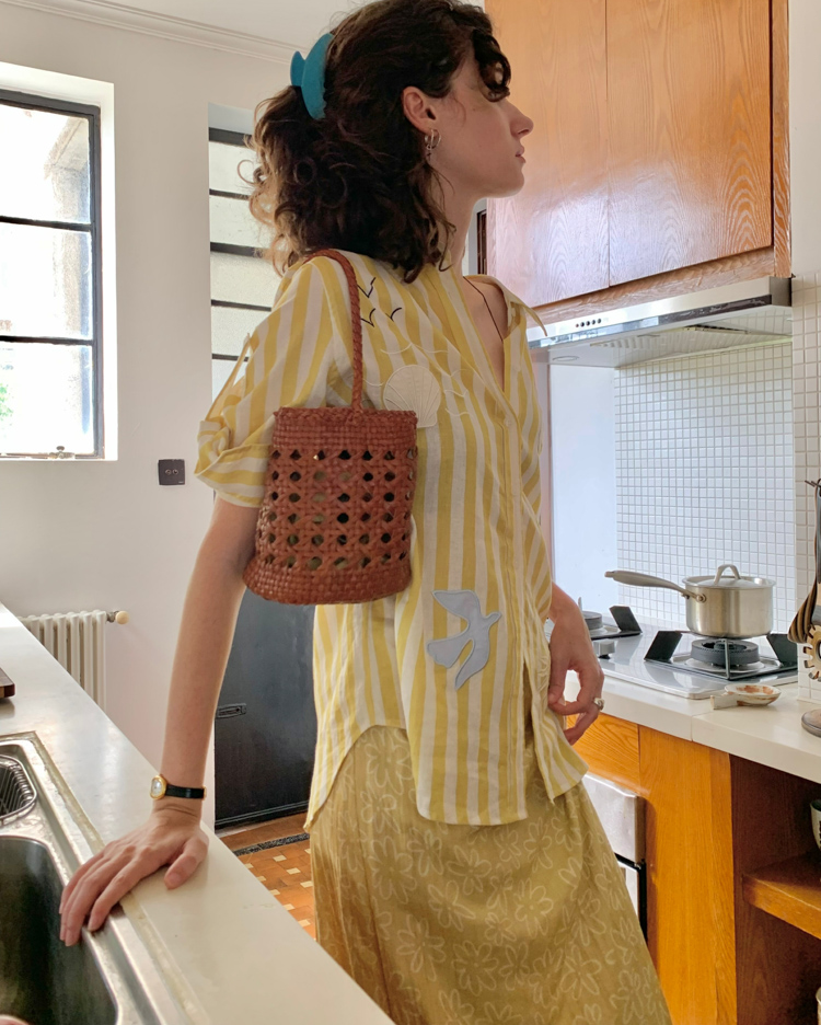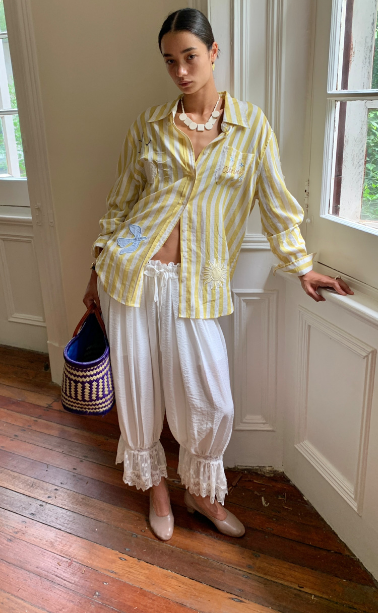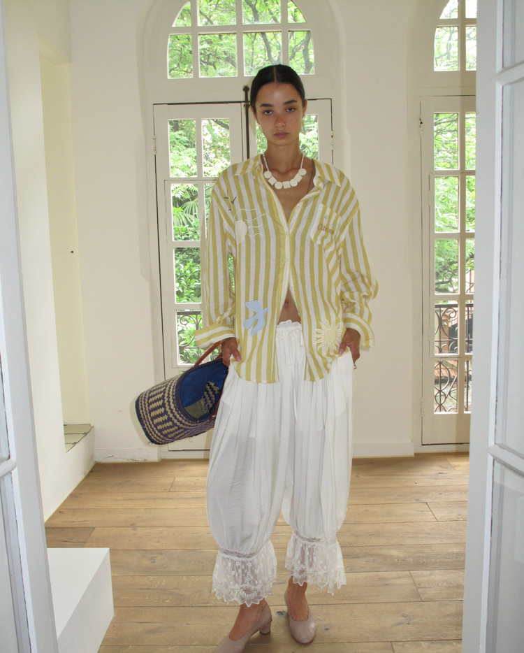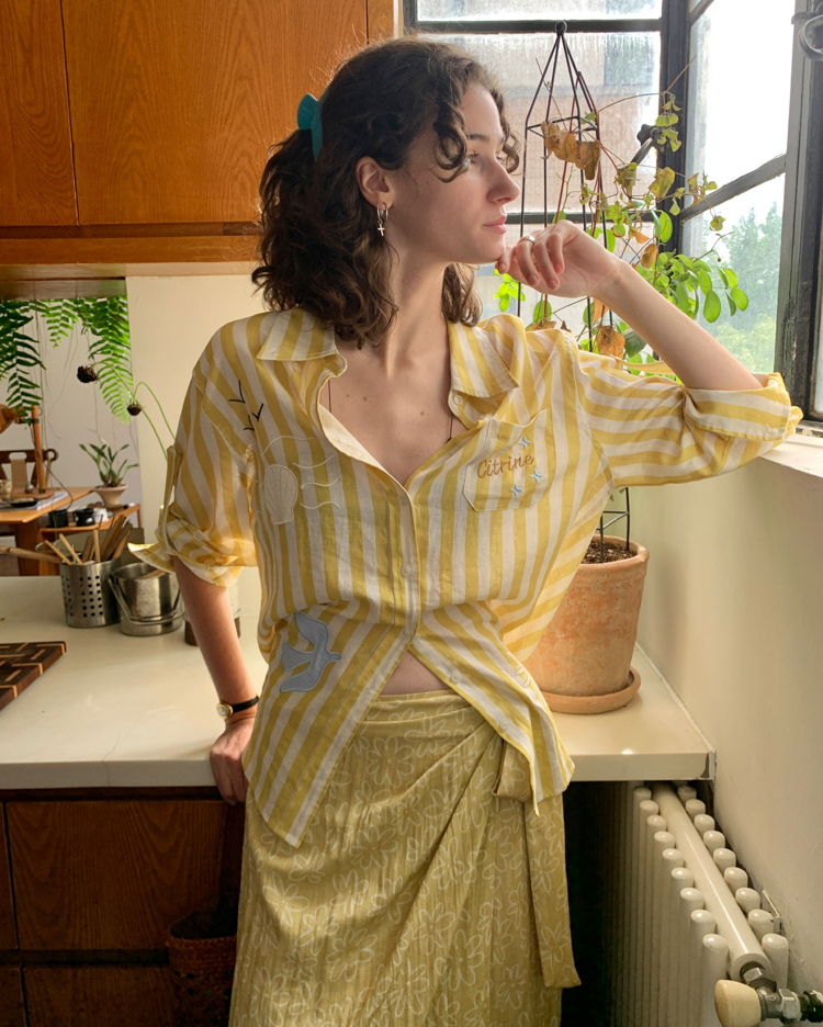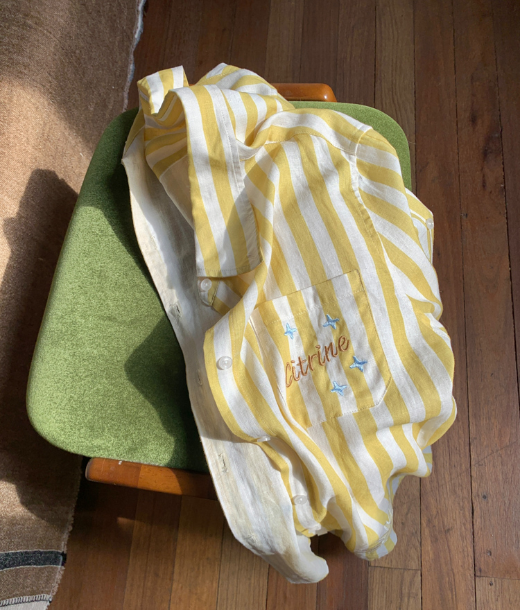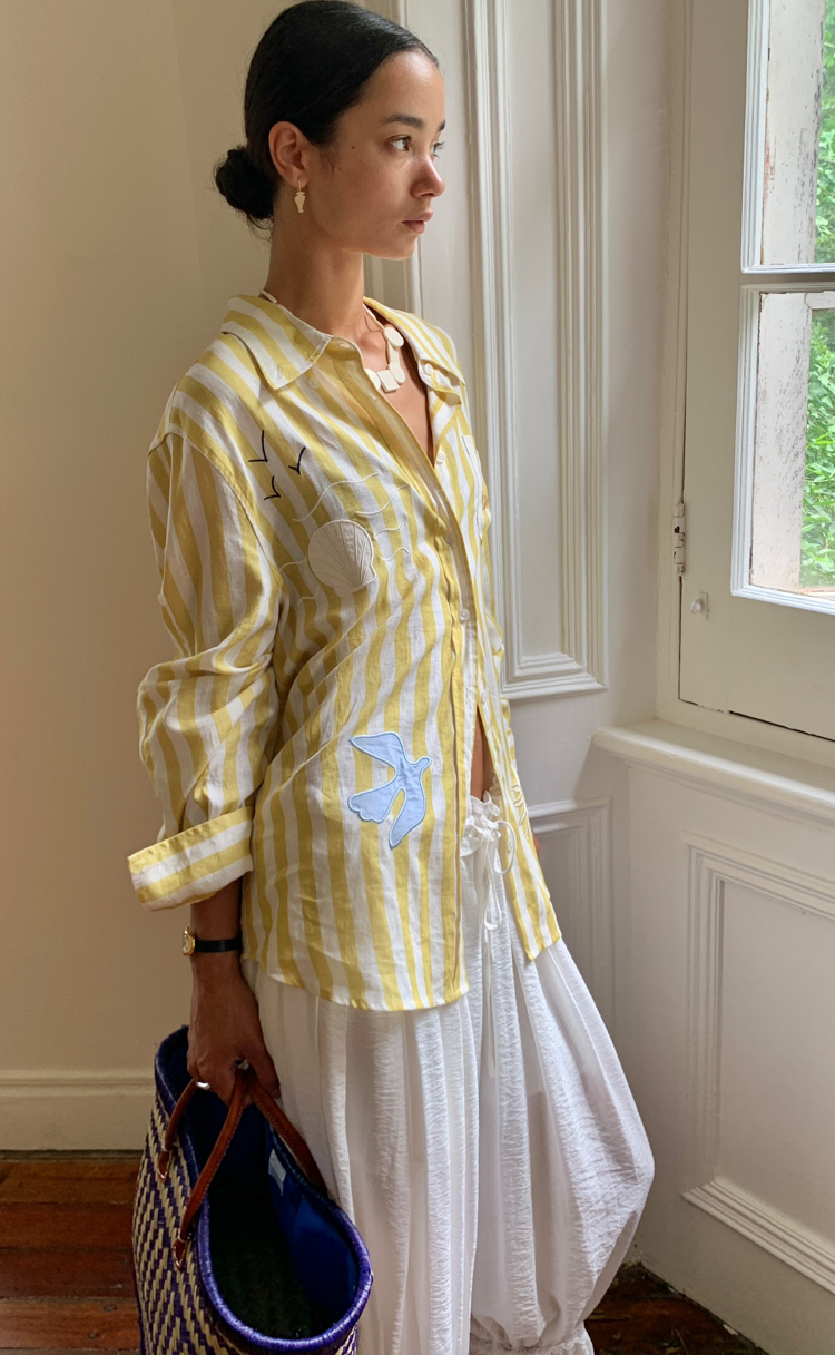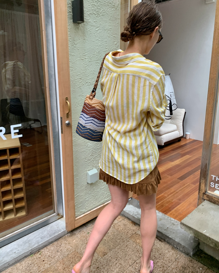 Flax Tencel Blend Striped Embroidered Patchwork Soft Lazy Shirt