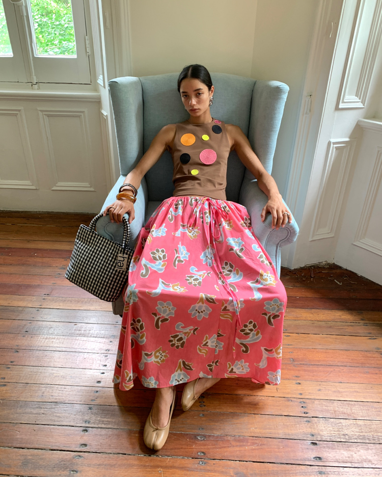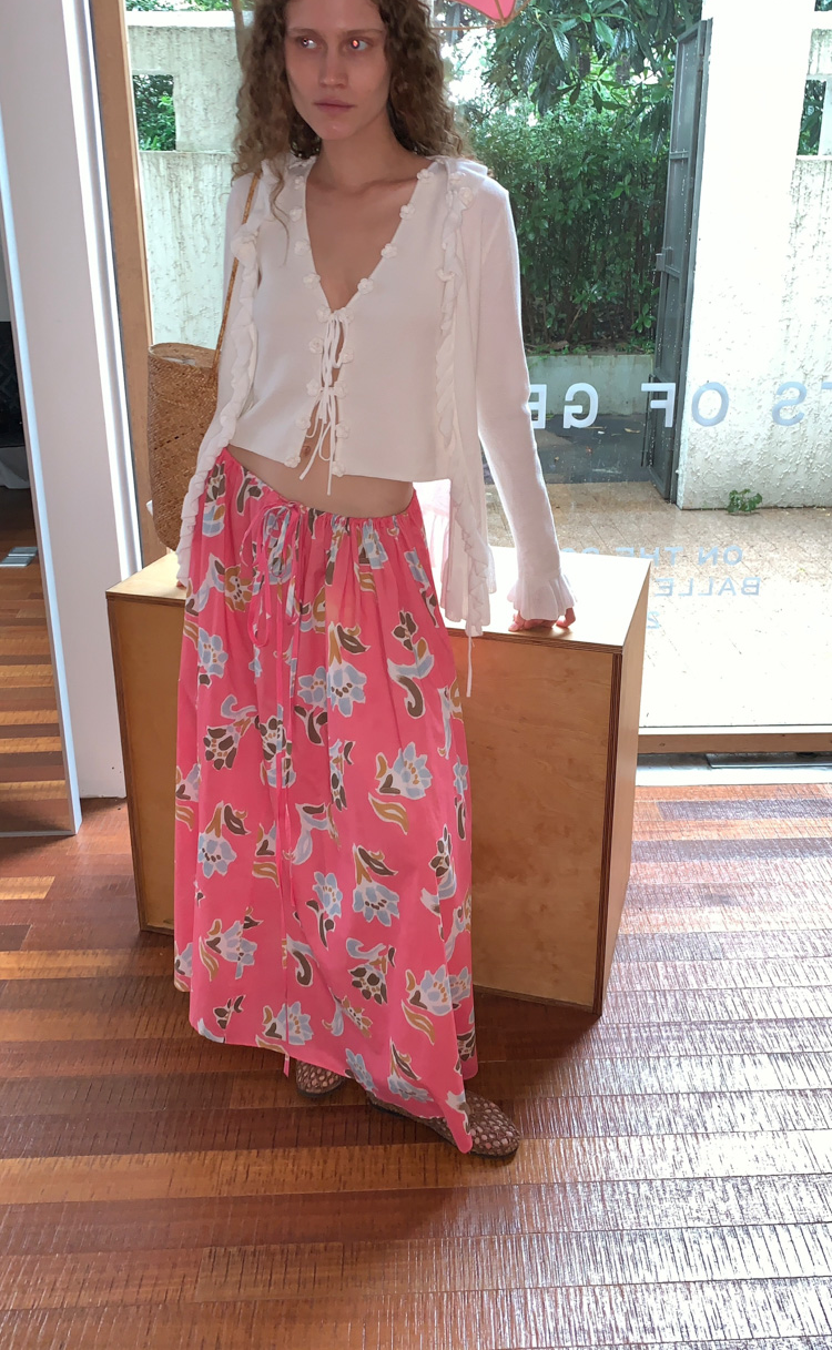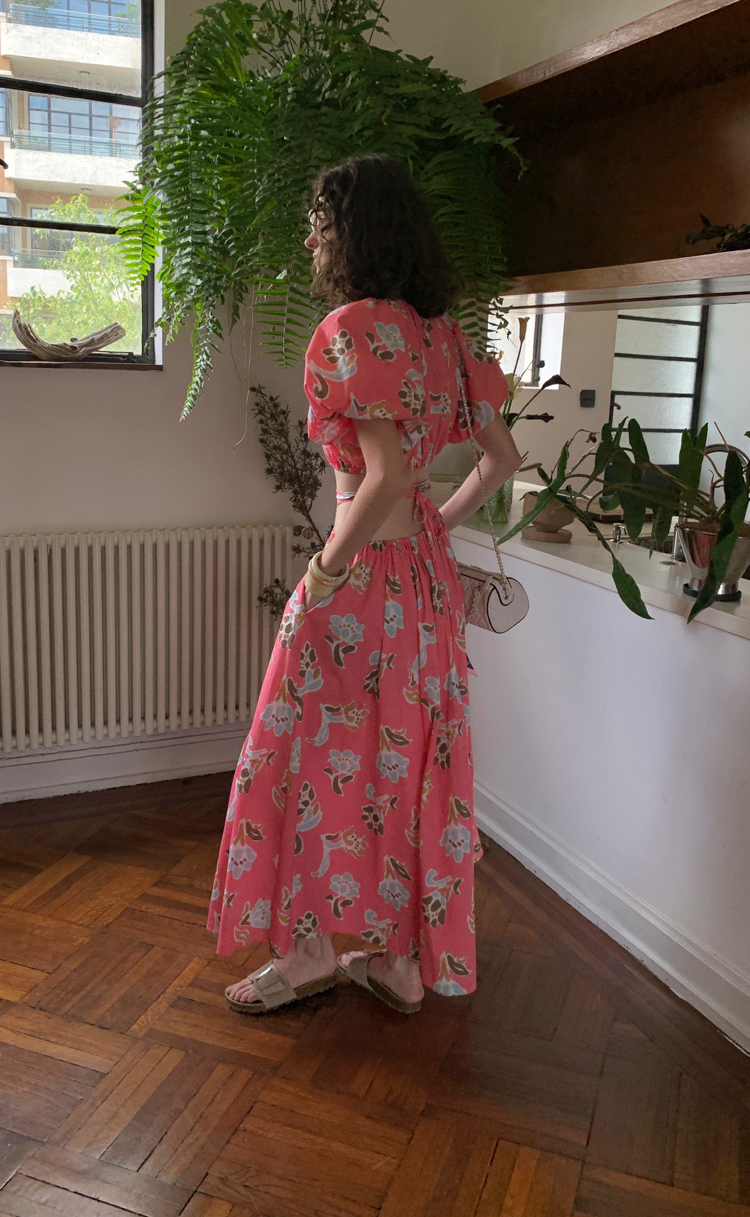Hawaiian Pink Printed Flower Bud Sleeve Top / Half Skirt Set
