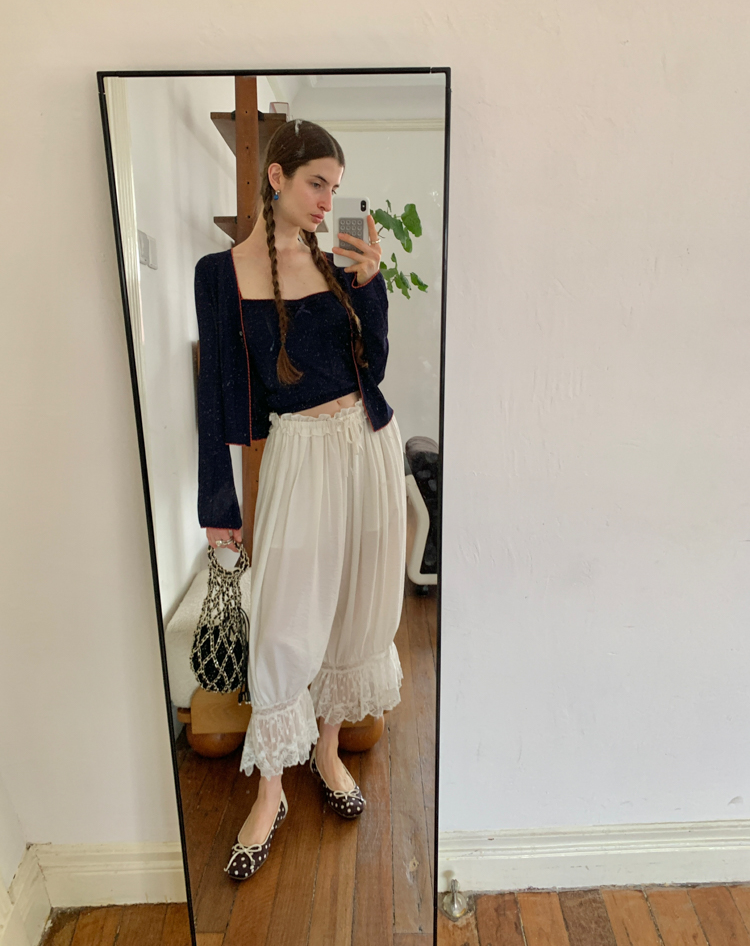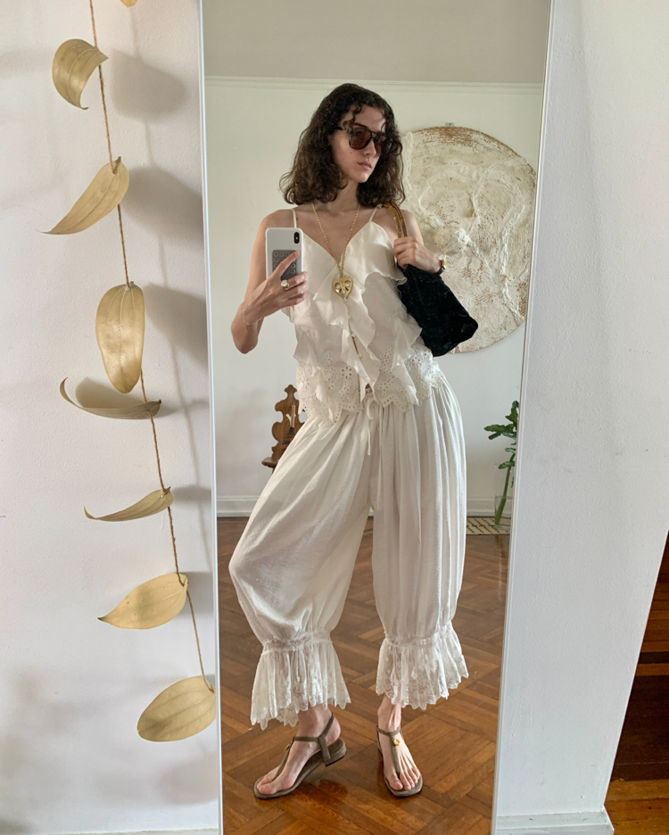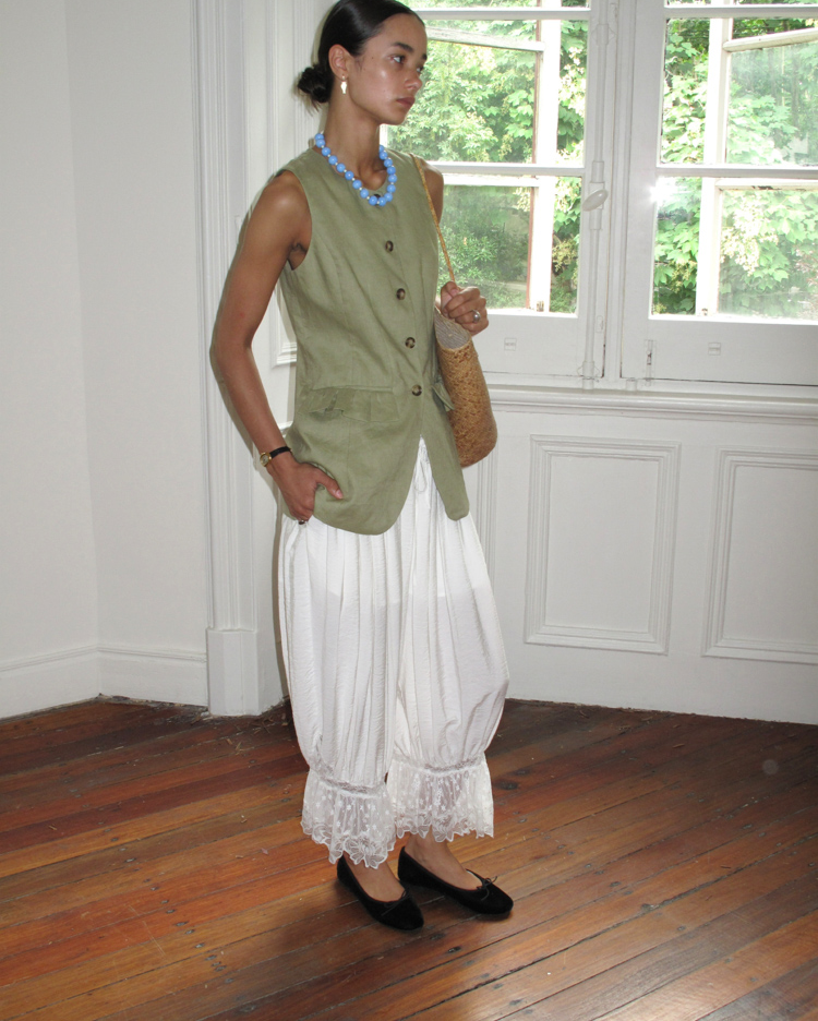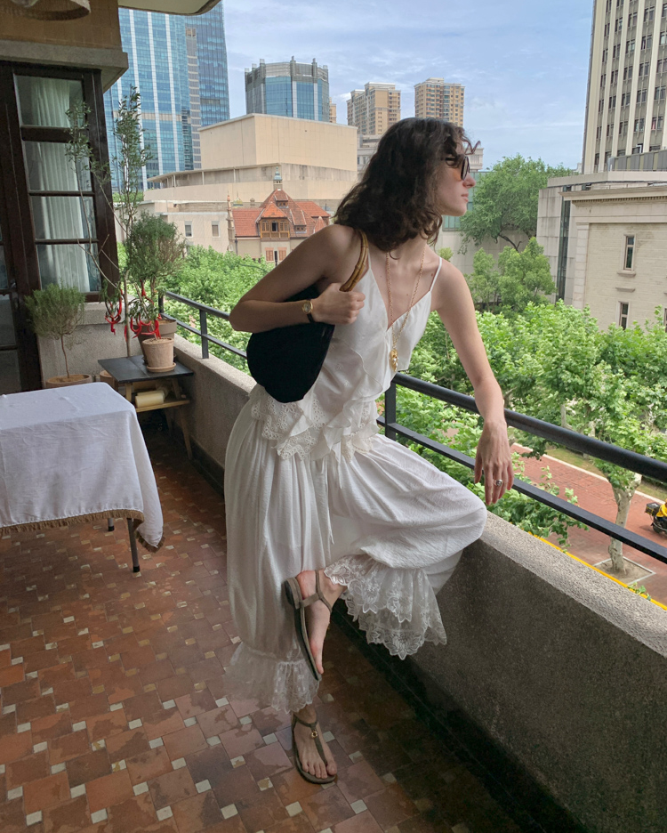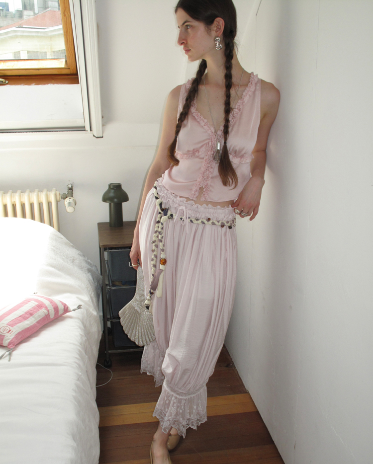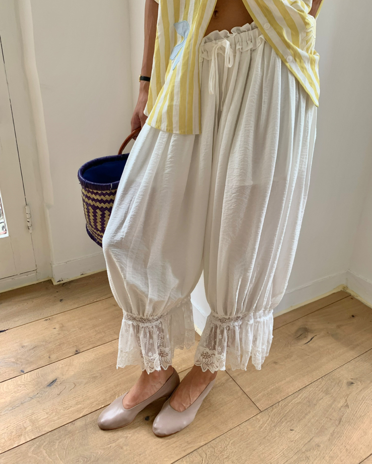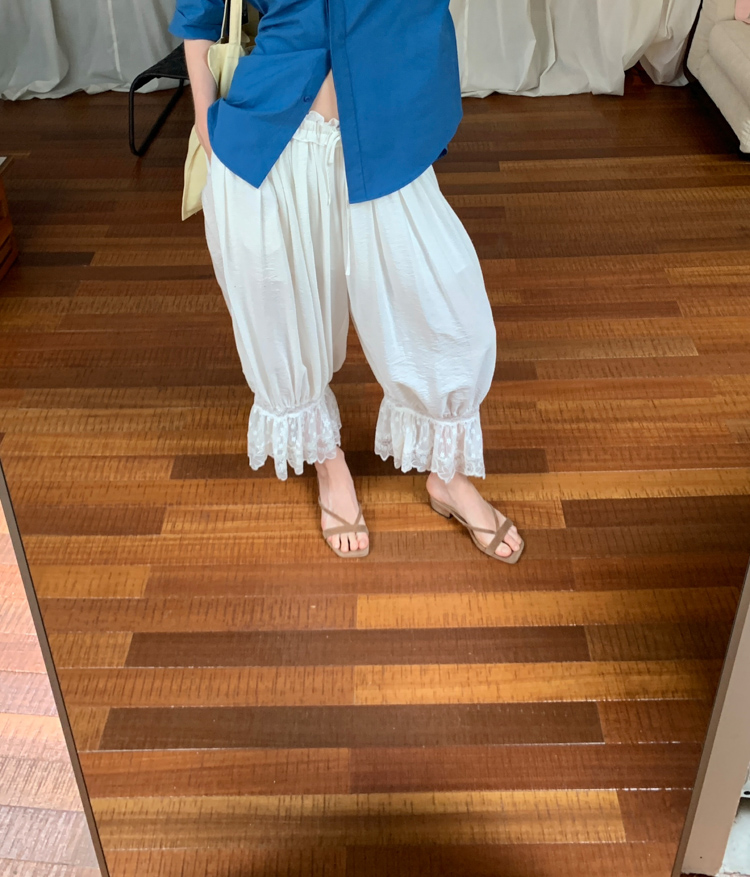 Silk Blended Lace Folded Pleated Eight-Part Pants