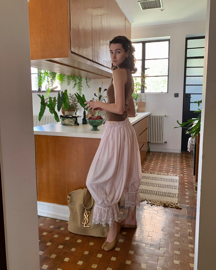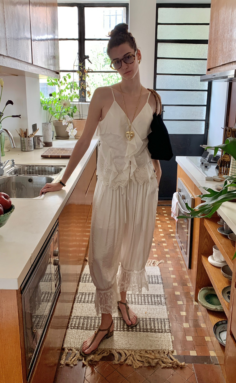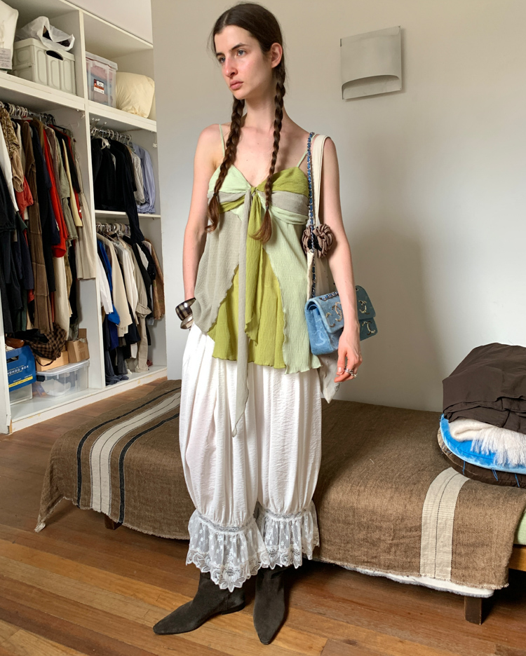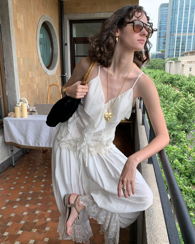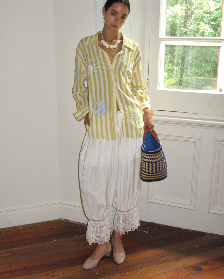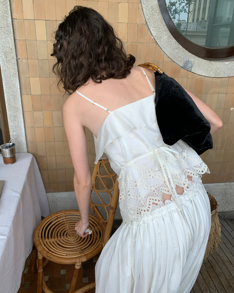 Silk Blended Lace Folded Pleated Eight-Part Pants