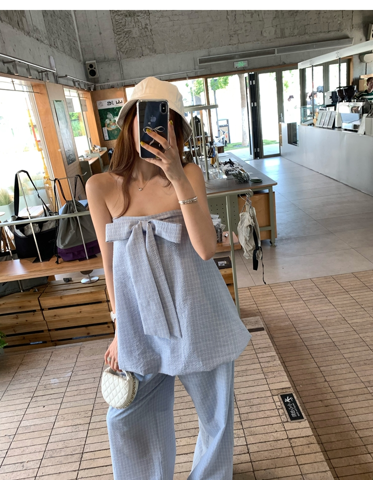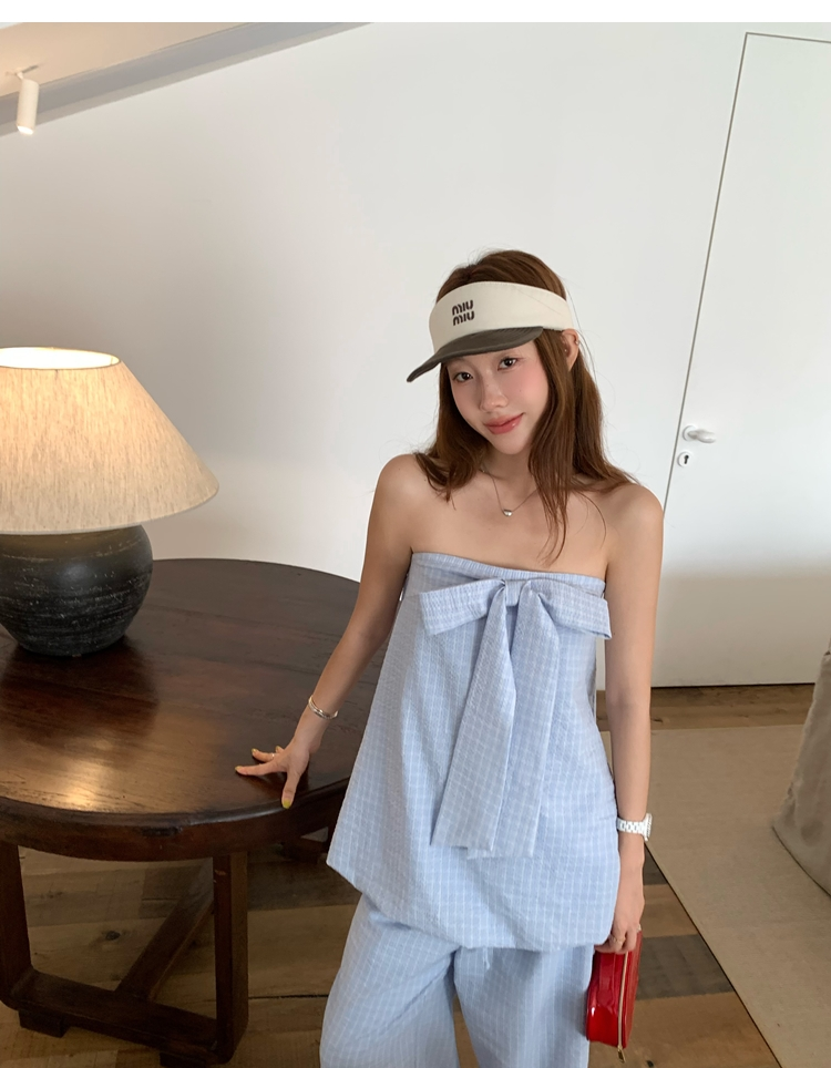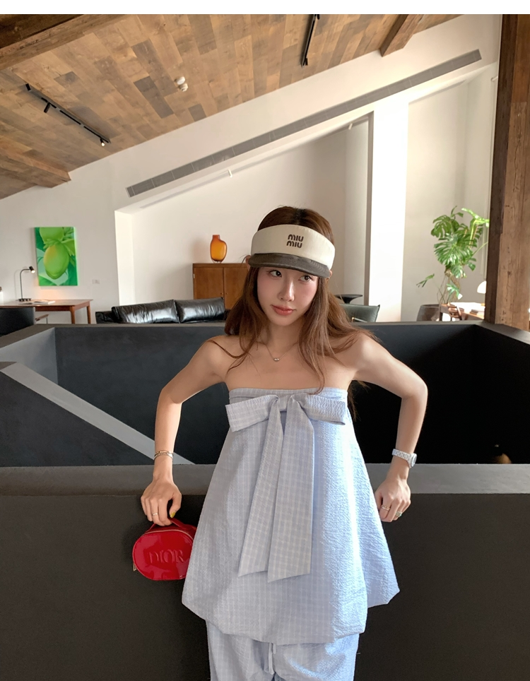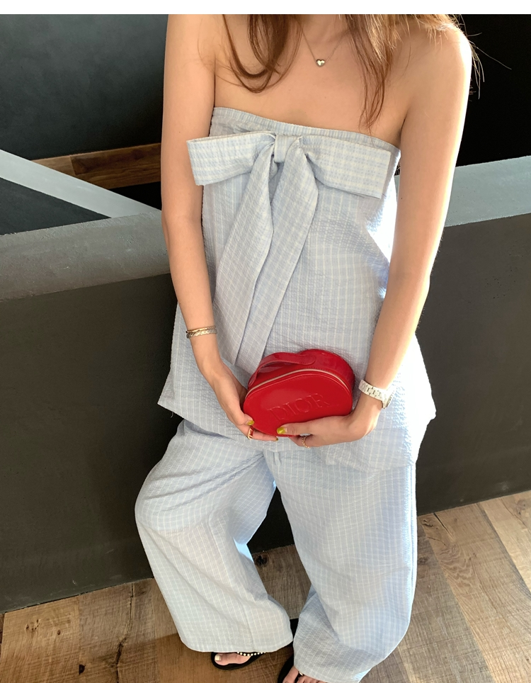 Sydney Dolphin Bay texture bow tube top bubble cotton plaid pants set