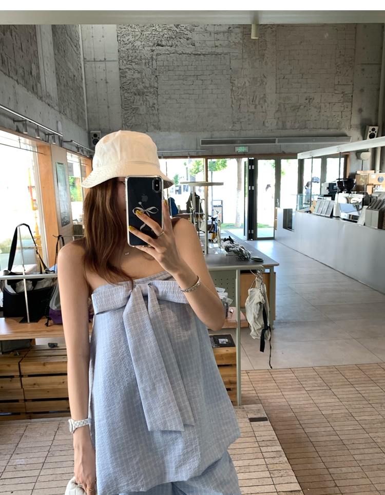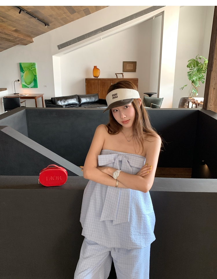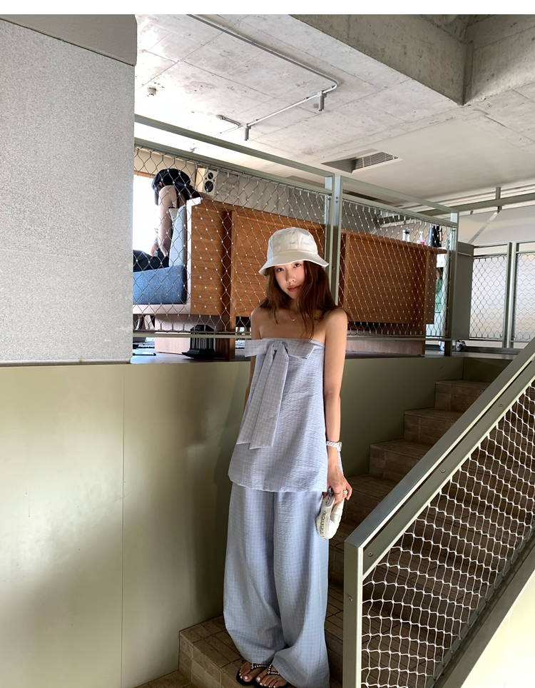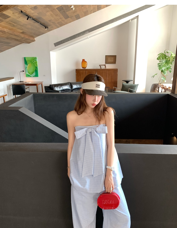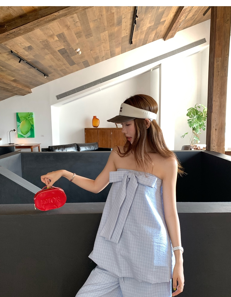 Sydney Dolphin Bay texture bow tube top bubble cotton plaid pants set
